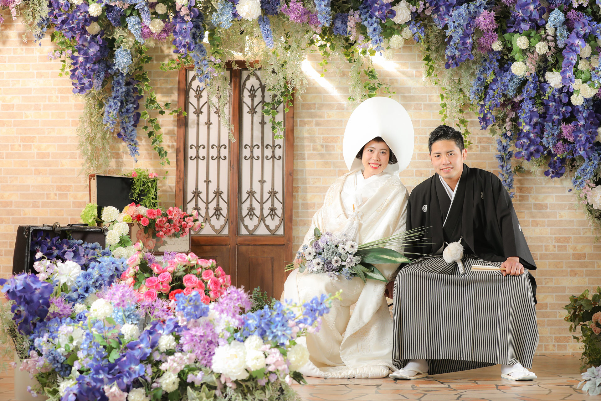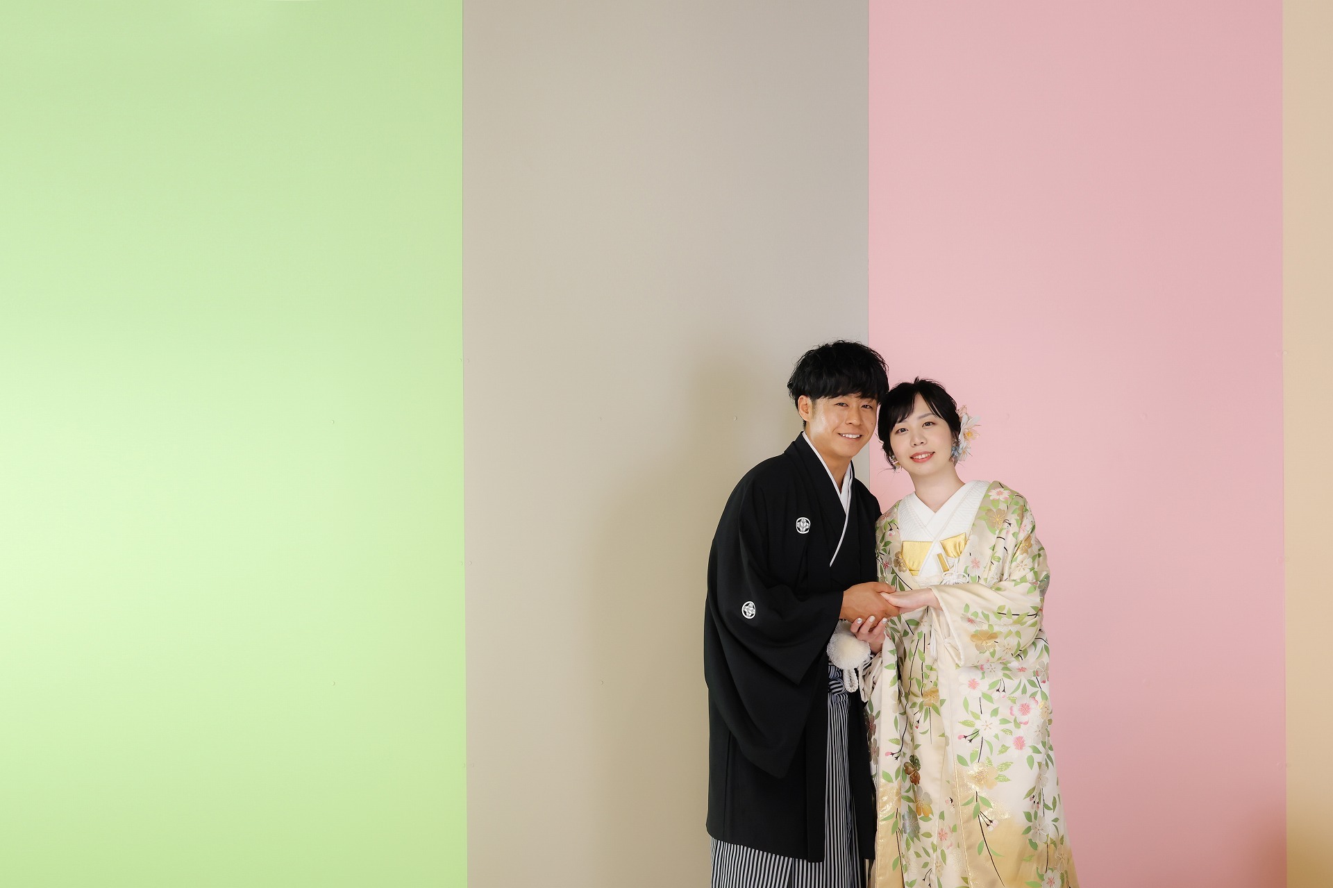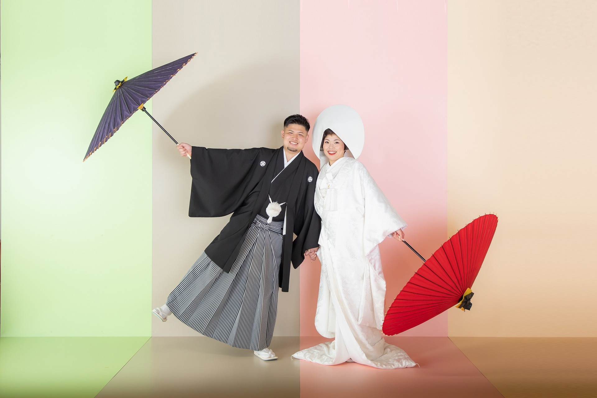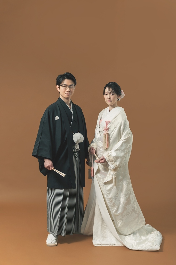 まだだれにも染まっていない心を表現する白無垢、あなた色に染まったことを表現した色打掛からウエディングドレスまで。