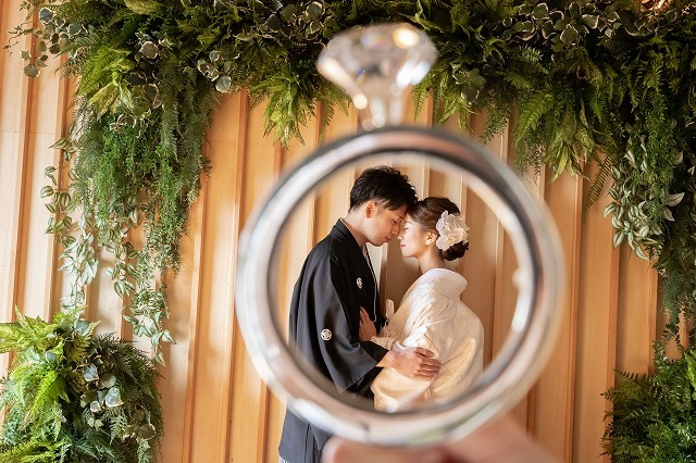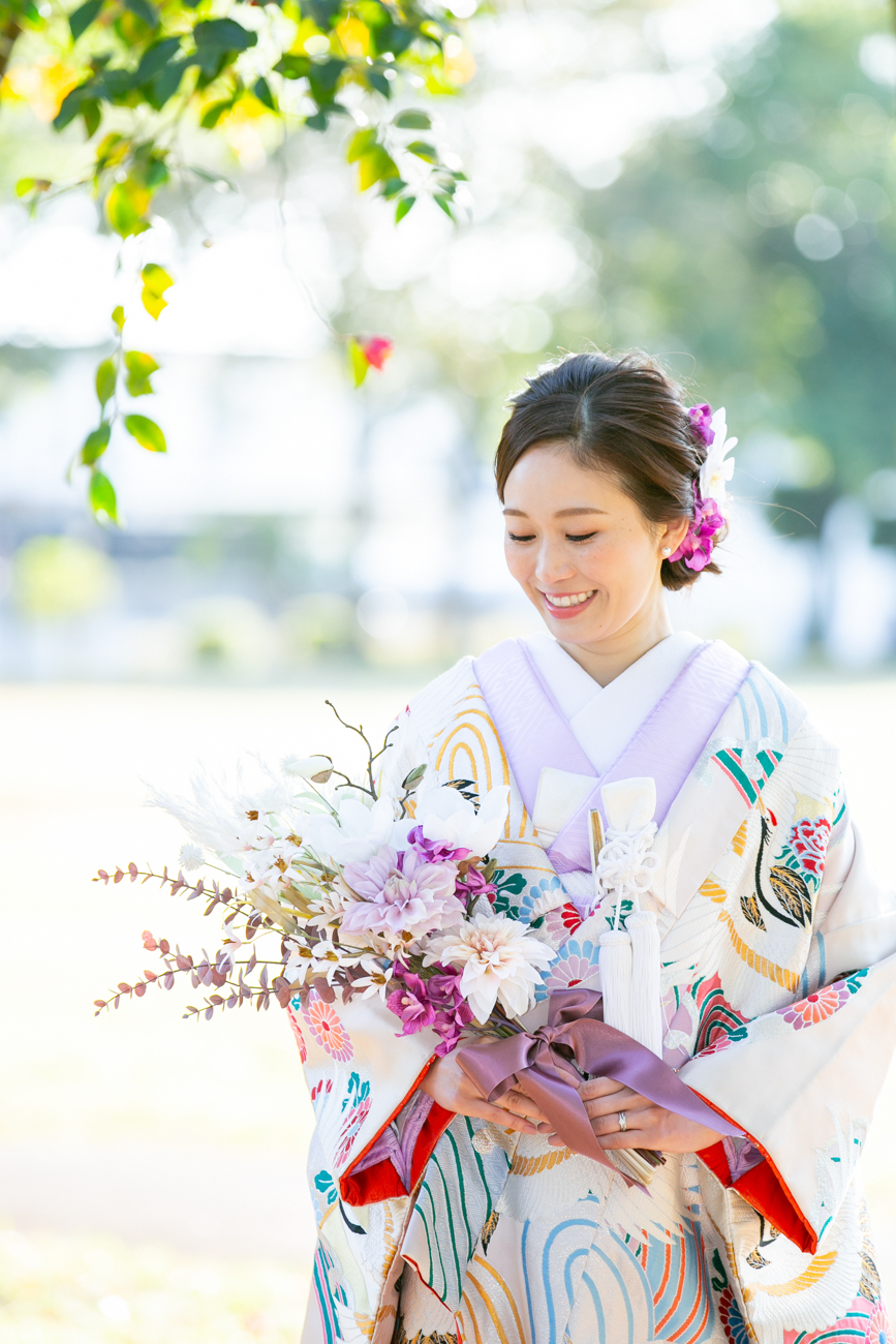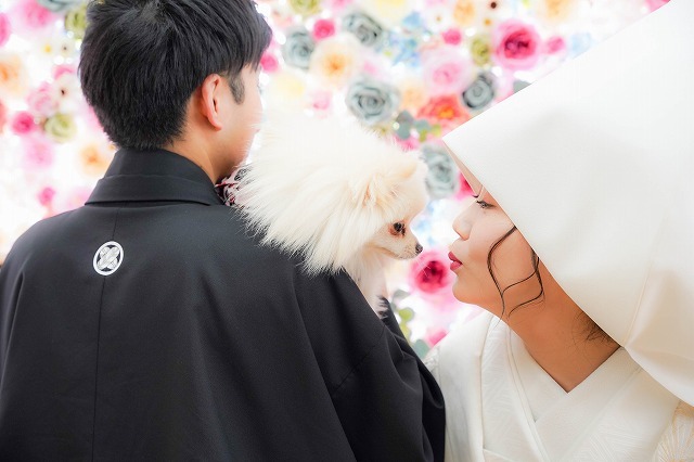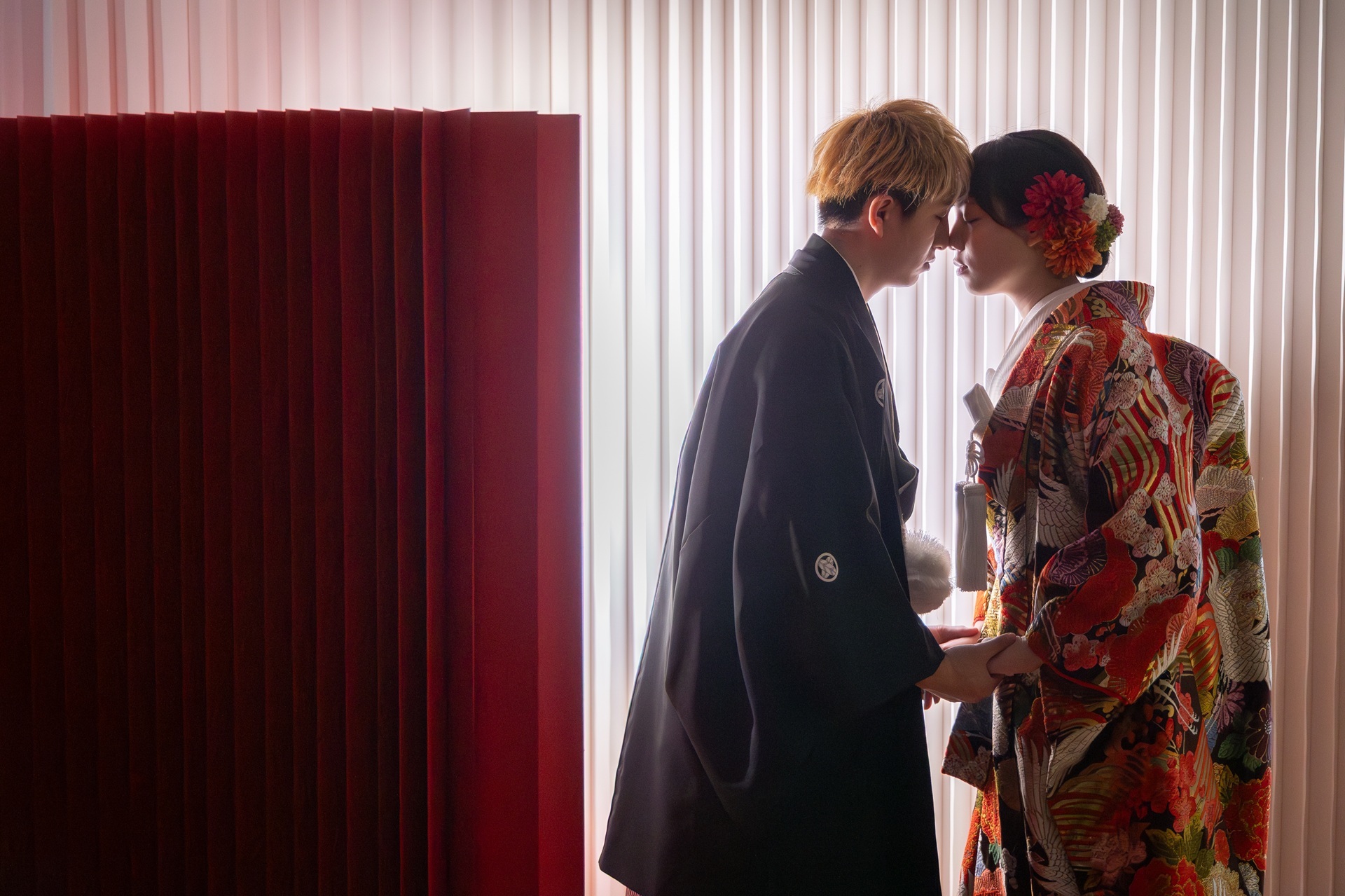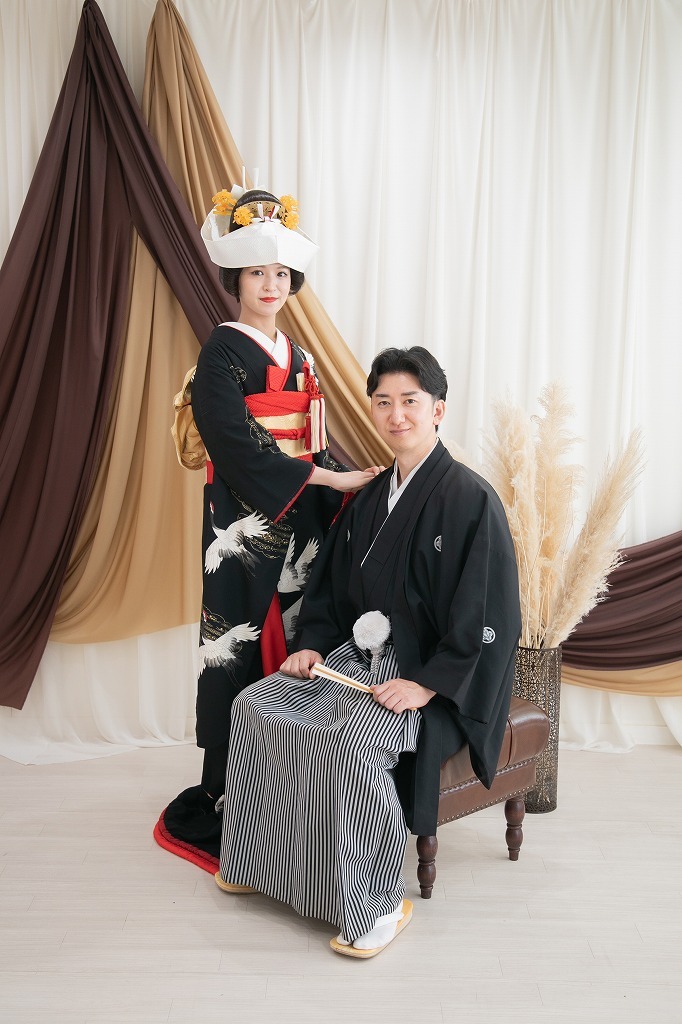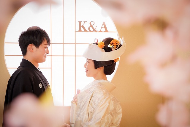まだだれにも染まっていない心を表現する白無垢、あなた色に染まったことを表現した色打掛からウエディングドレスまで。