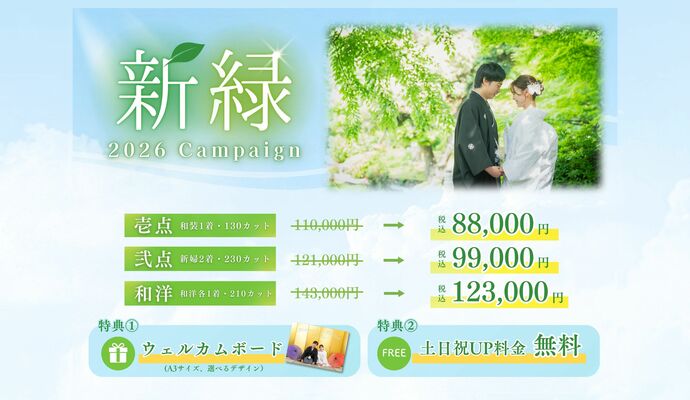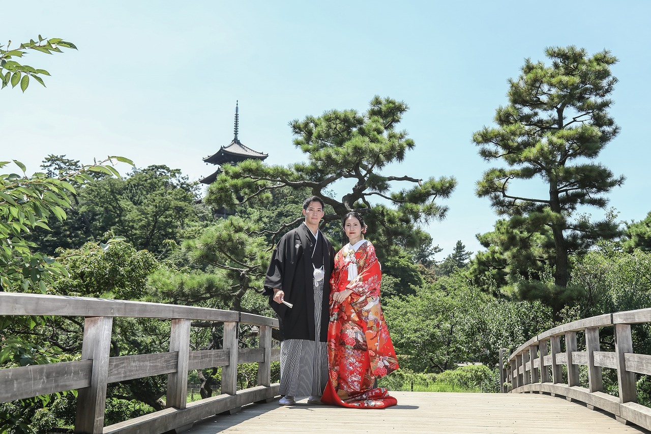 晴れやかな日にふさわしい、気品ある白無垢や色打掛などの婚礼衣裳。日本の文化を身に纏う、和装でのロケーション撮影なら「華雅苑」におまかせください。創業当初から明朗なプラン設定を貫き、年間平均1万組のカップルにお選びいただいています。
