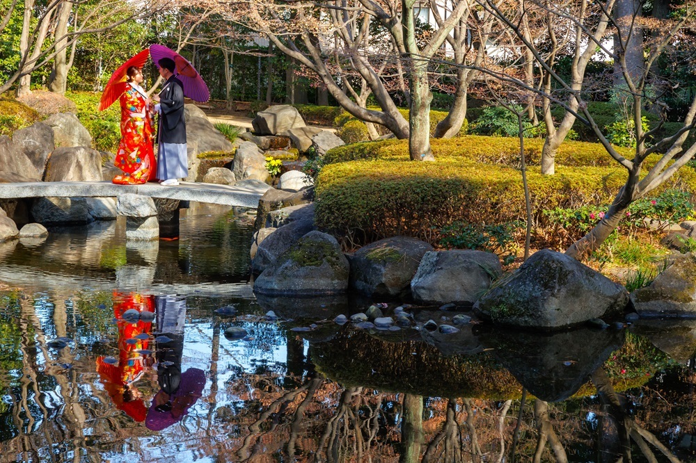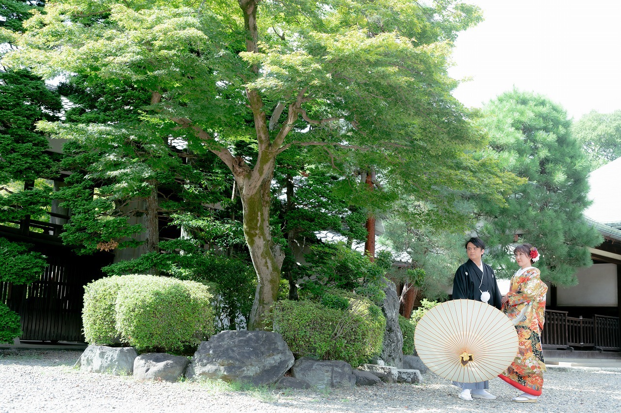 伝統を受け継ぐ建築物、緑が清々しい日本庭園、視界を染める鮮やかな紅葉、おふたりのイメージに沿ったロケーションをご提案します。