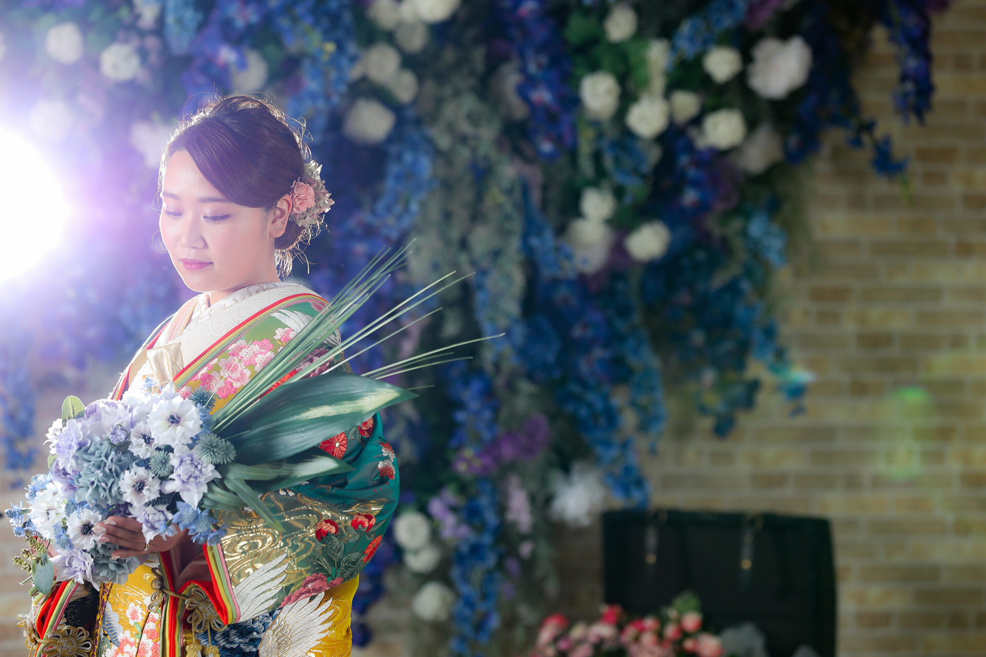まだだれにも染まっていない心を表現する白無垢、あなた色に染まったことを表現した色打掛からウエディングドレスまで。