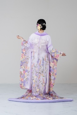 表裏全てが白一色で作られた着物のことで、打掛、帯、小物も白色で統一されている和装。