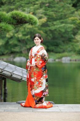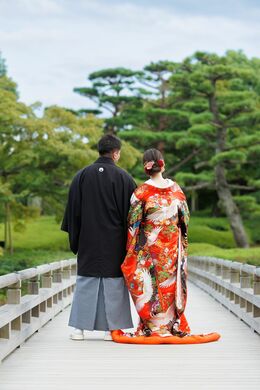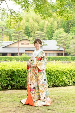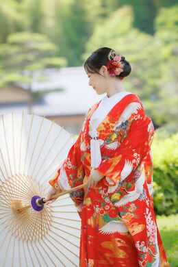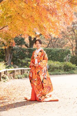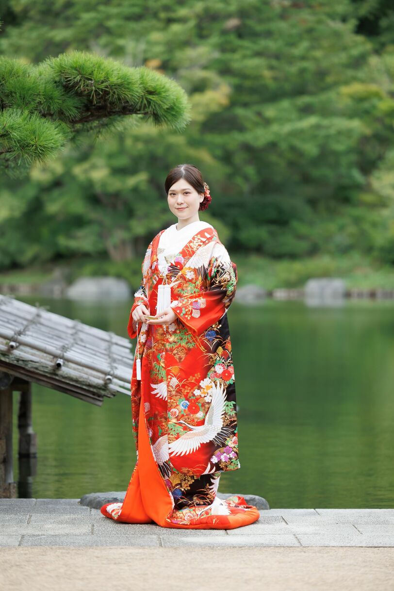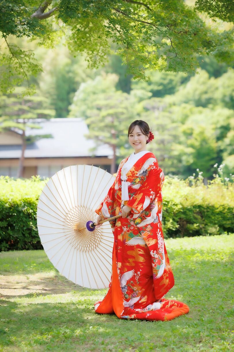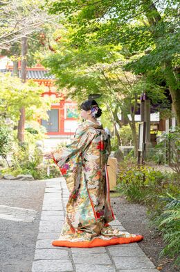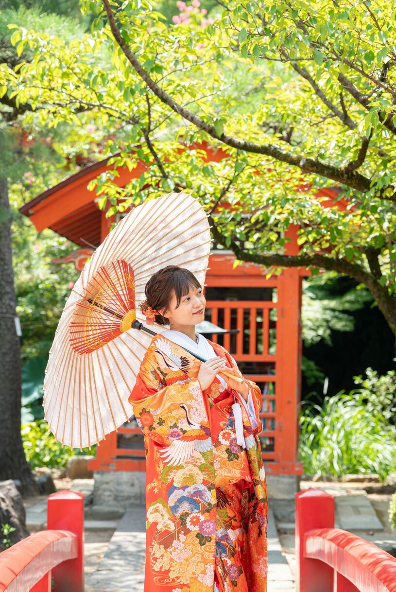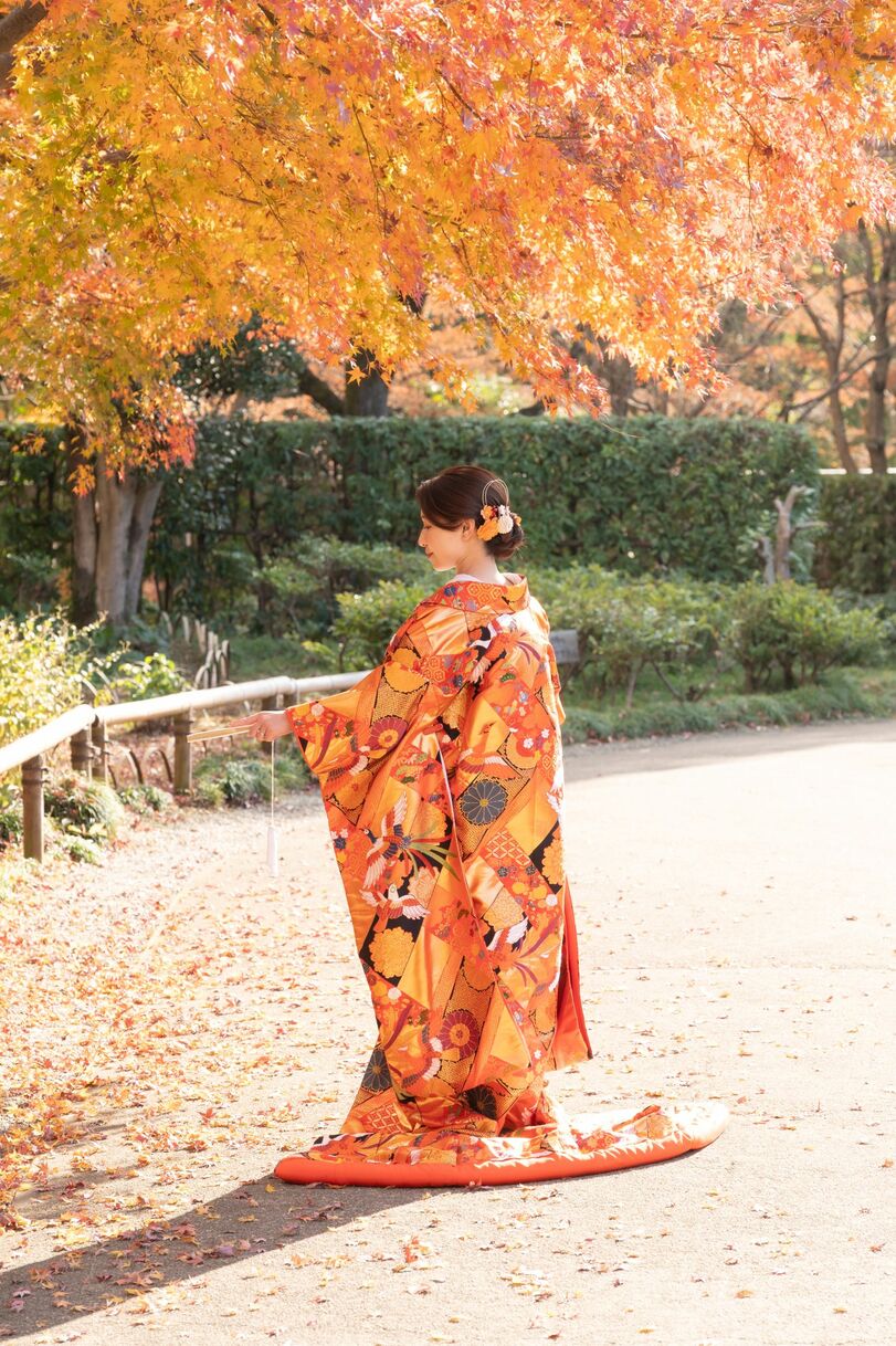 色打掛を着てのロケーションフォトは花々との相性が抜群です。