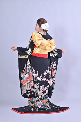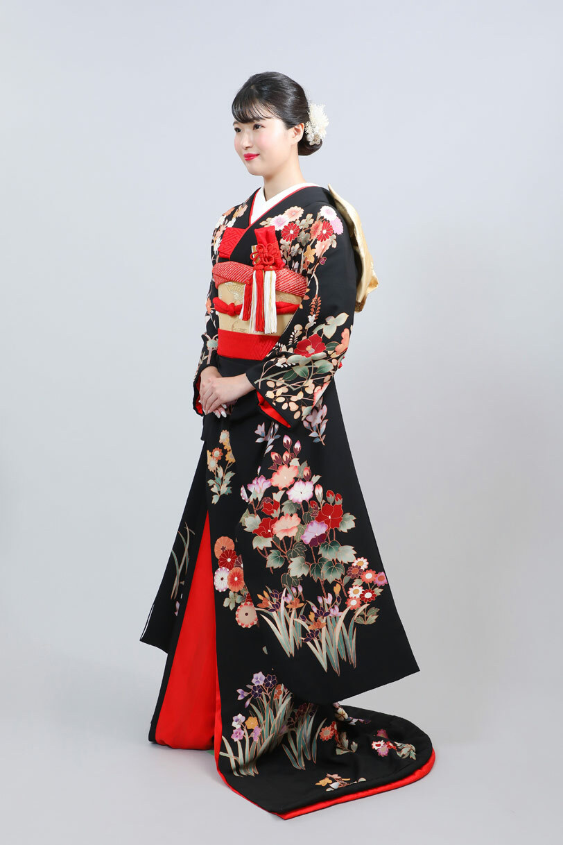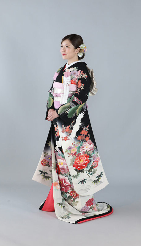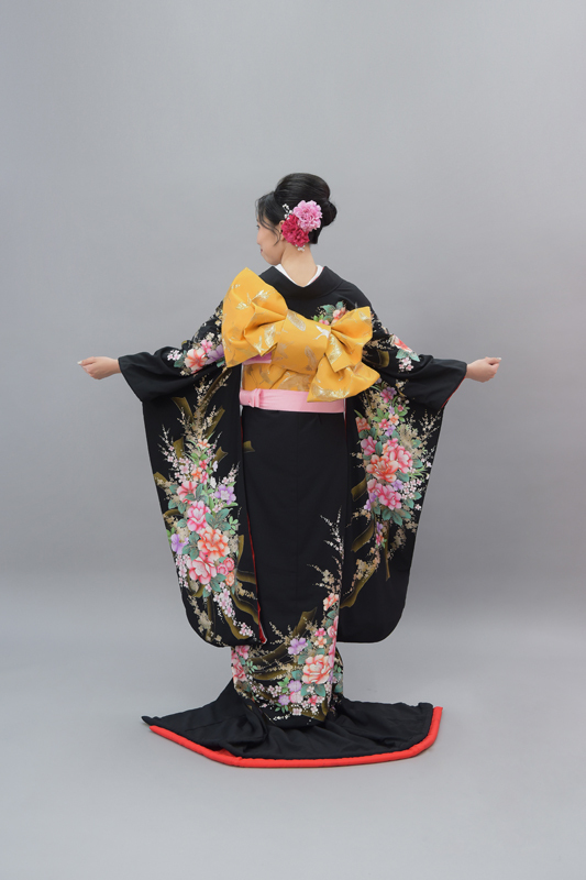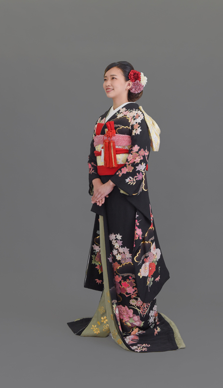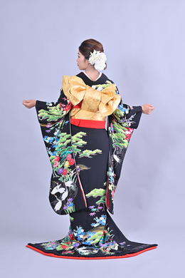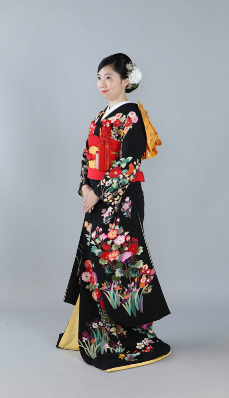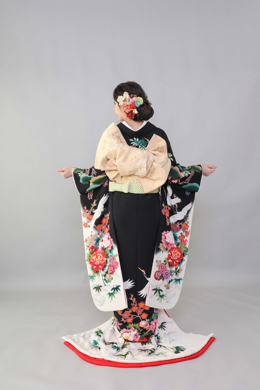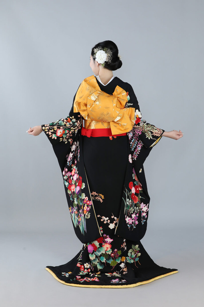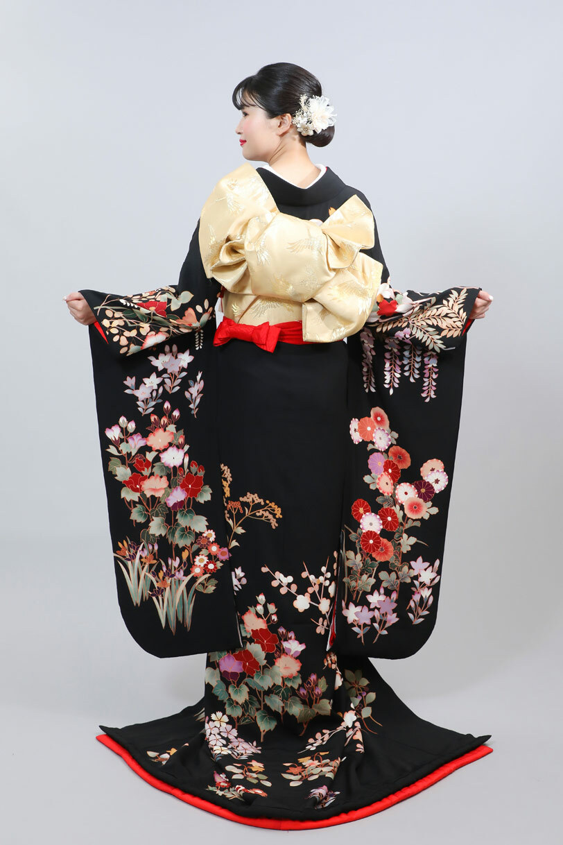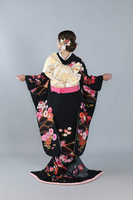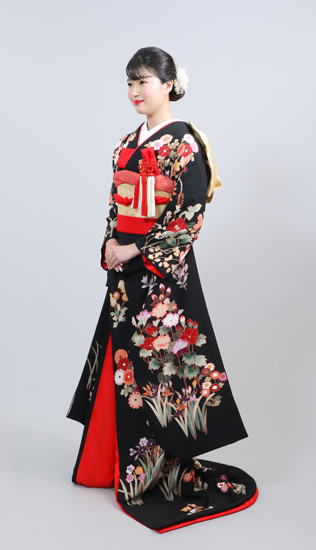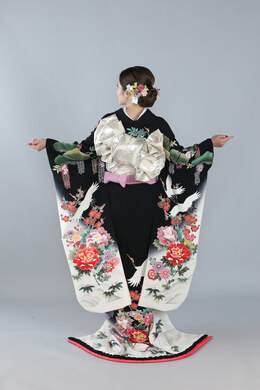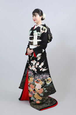 本文黒引振袖は昭和初期まで白無垢や色打掛よりも主流となっていました。
