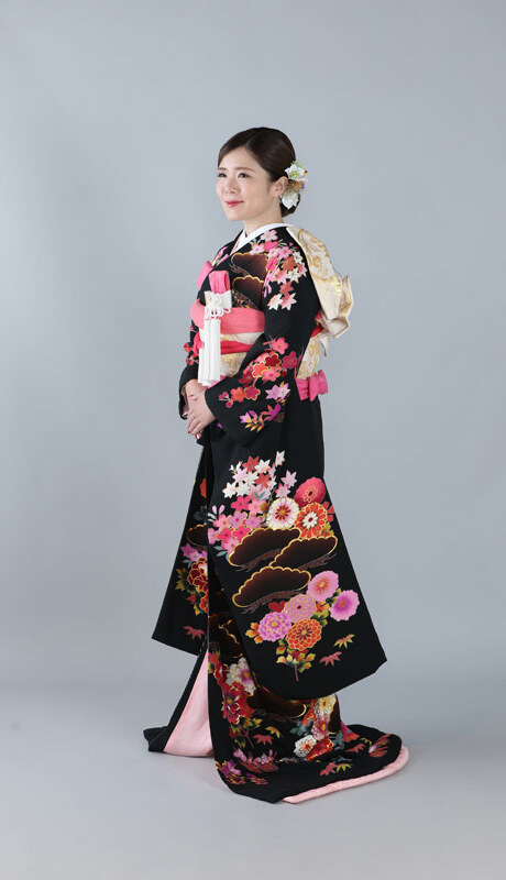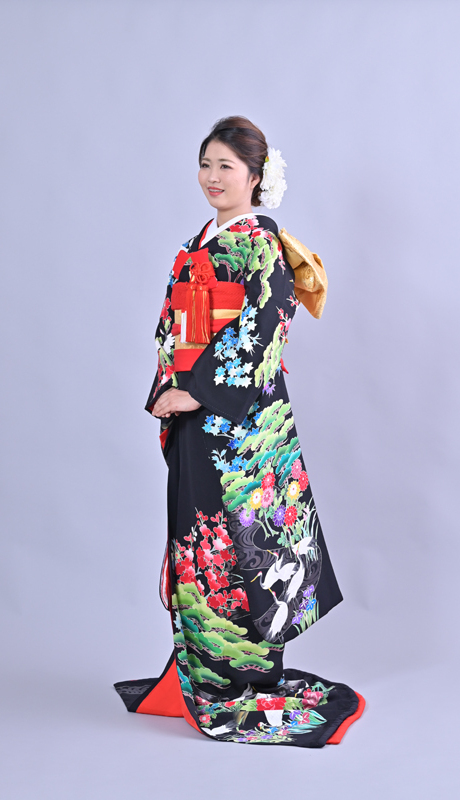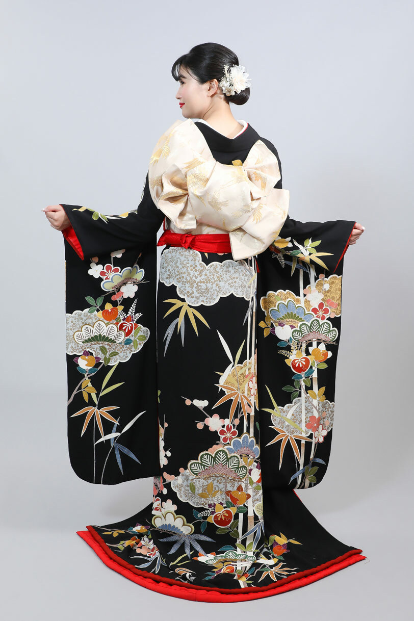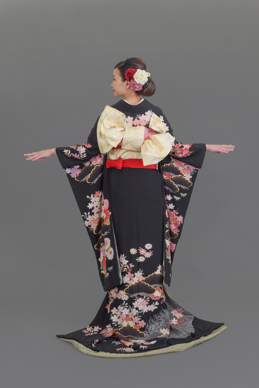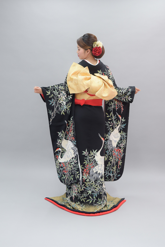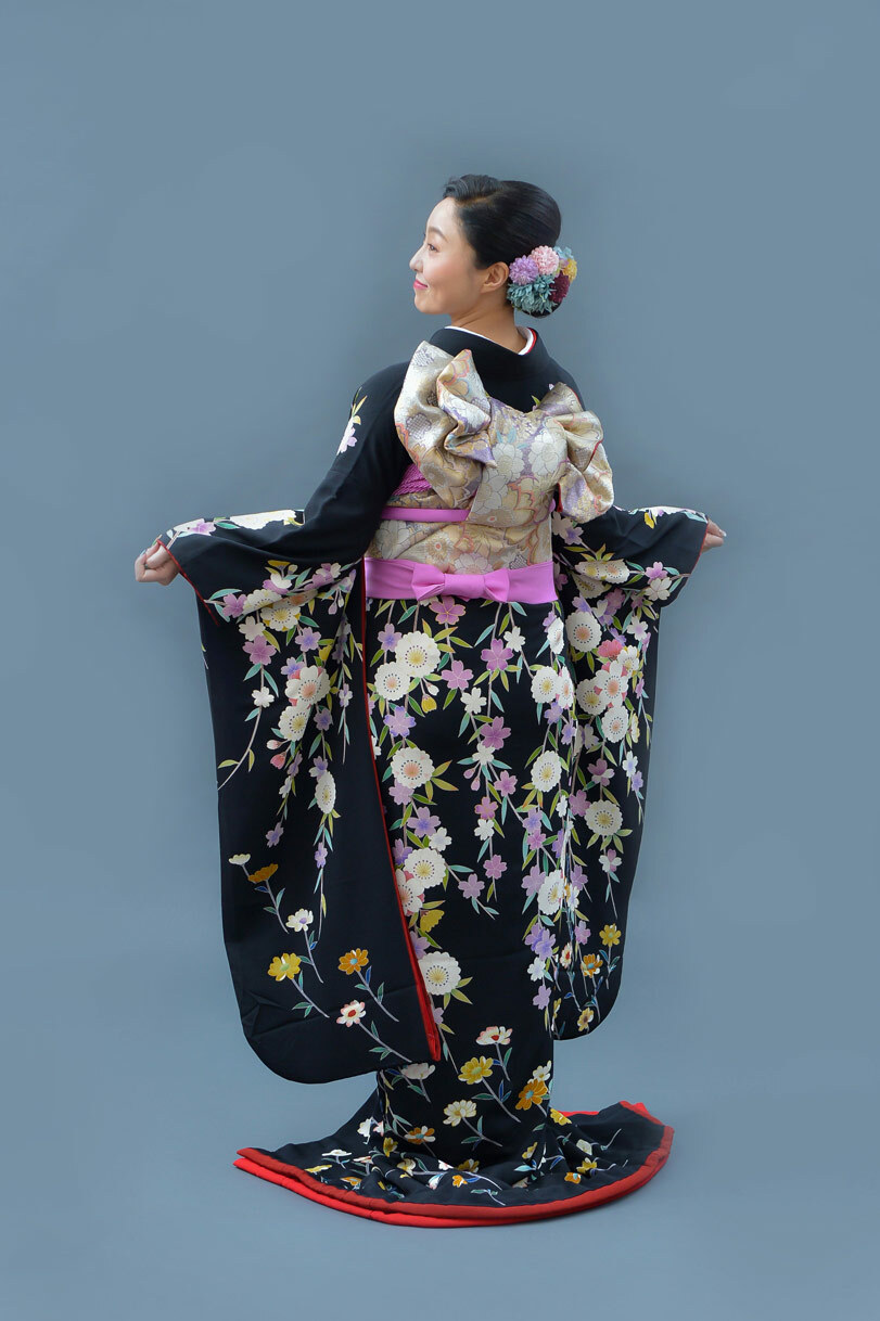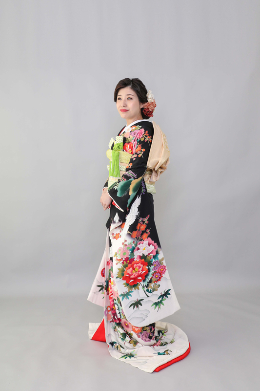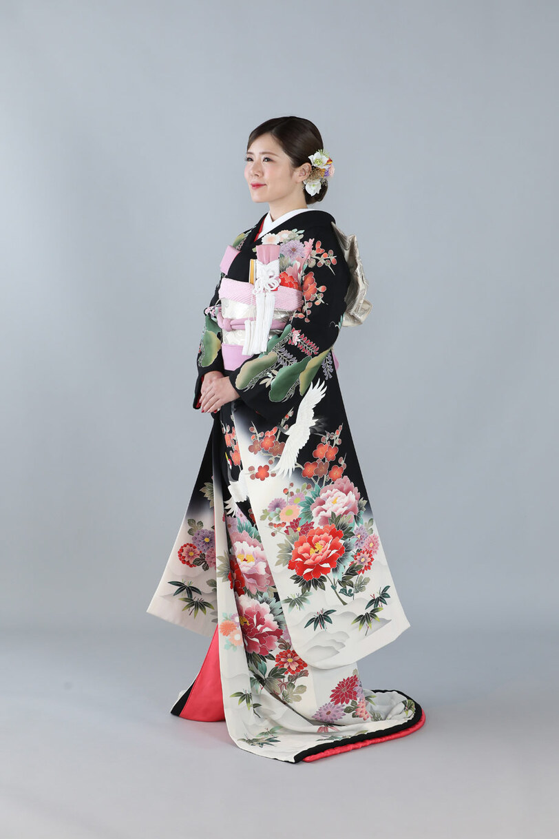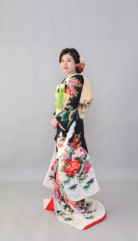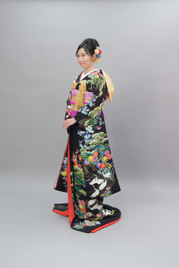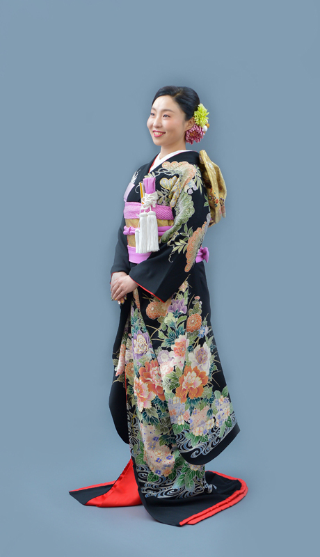 本文黒引振袖は昭和初期まで白無垢や色打掛よりも主流となっていました。