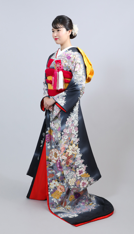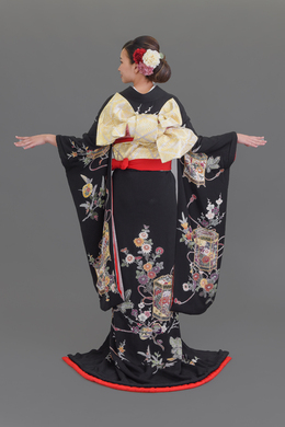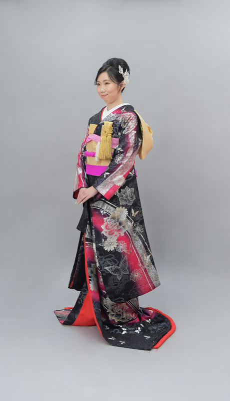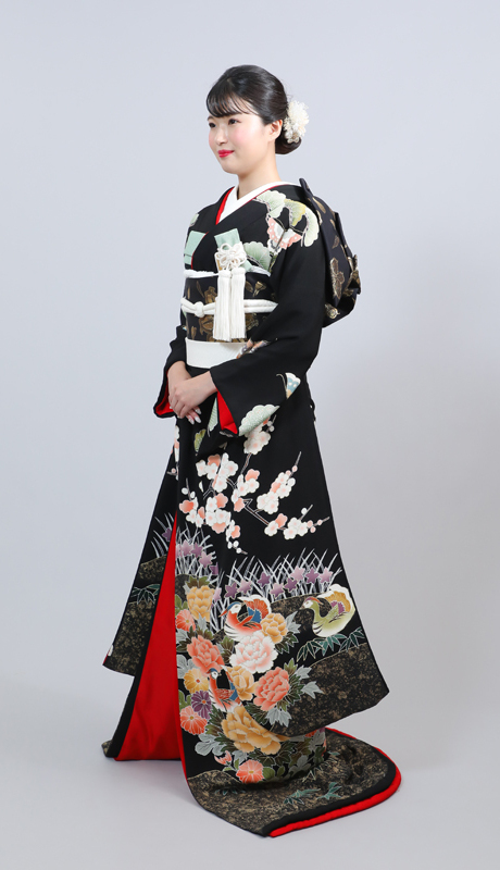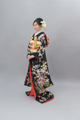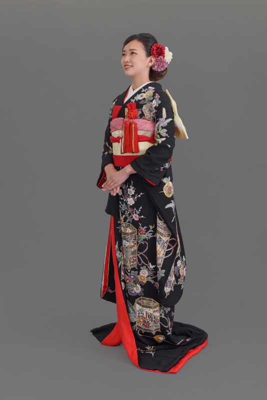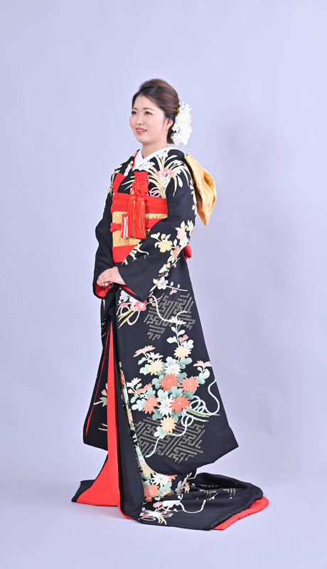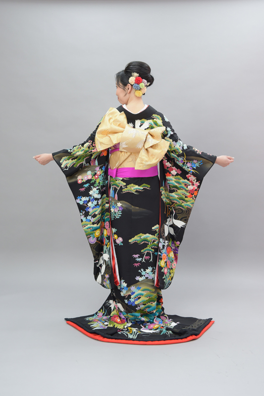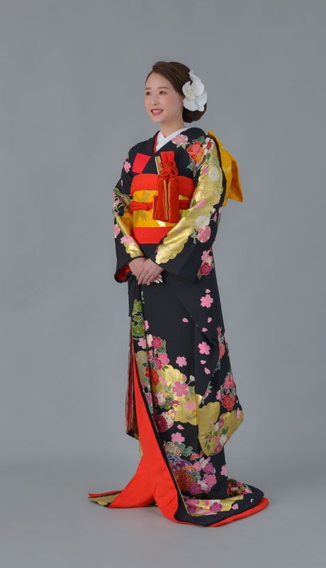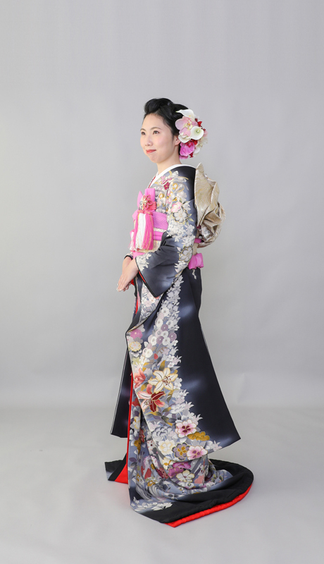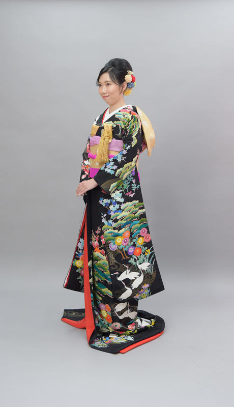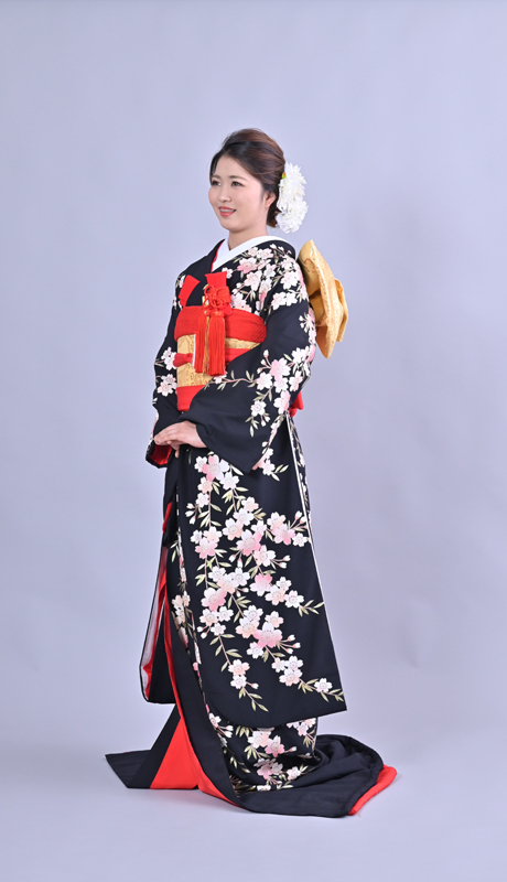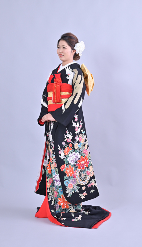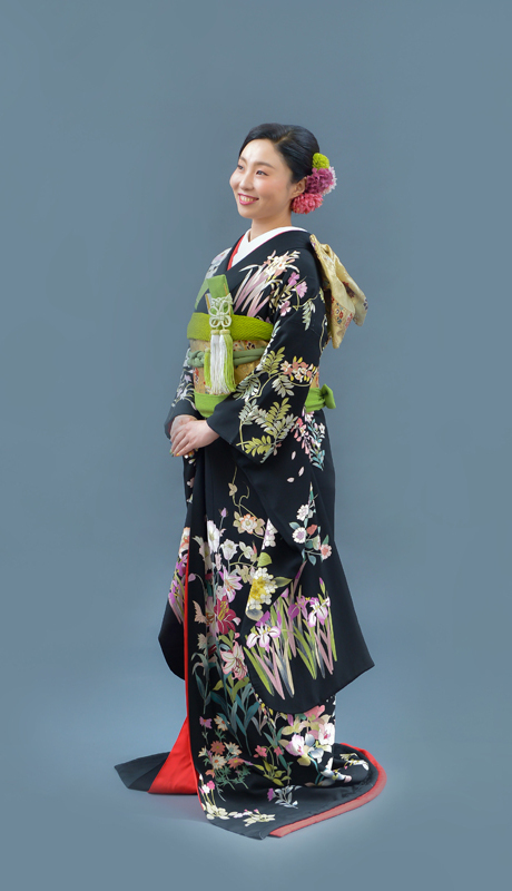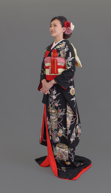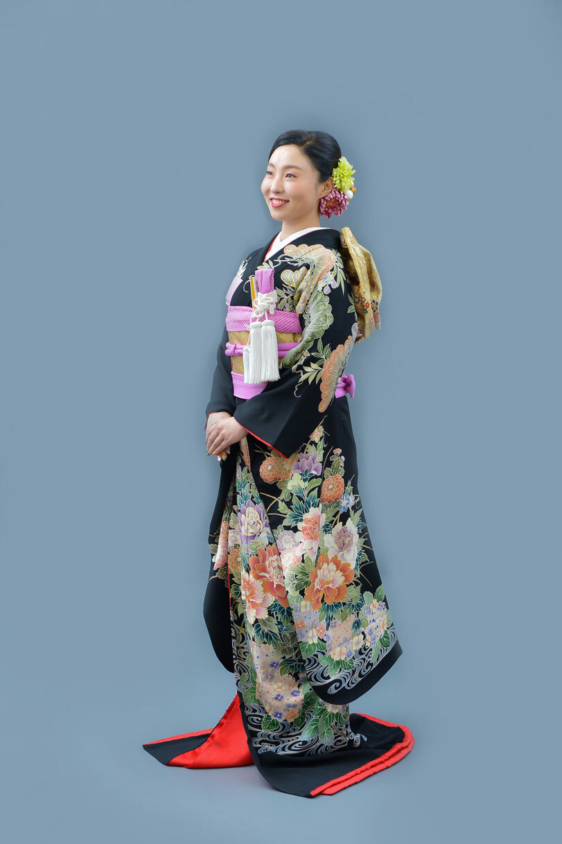 本文黒引振袖は昭和初期まで白無垢や色打掛よりも主流となっていました。