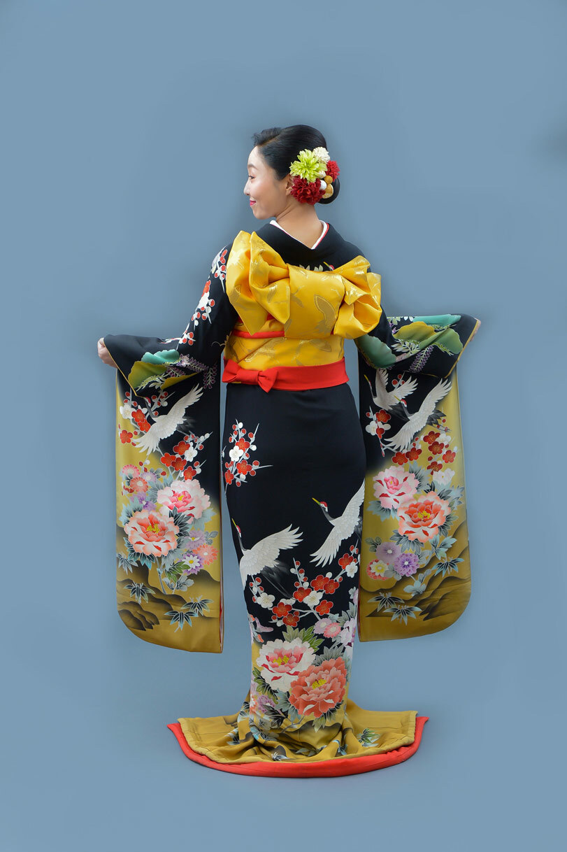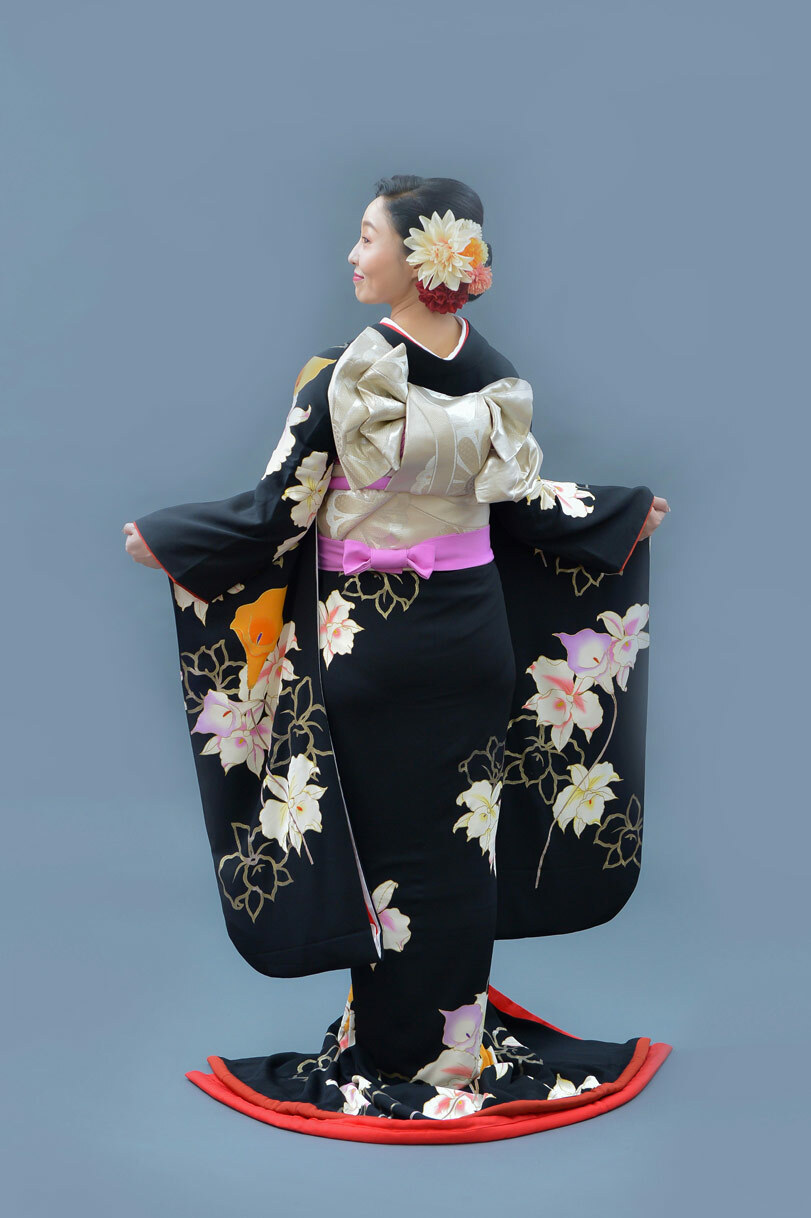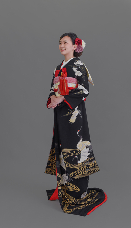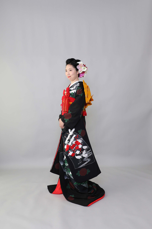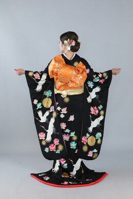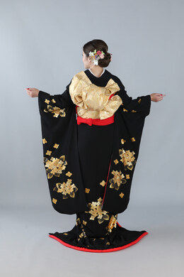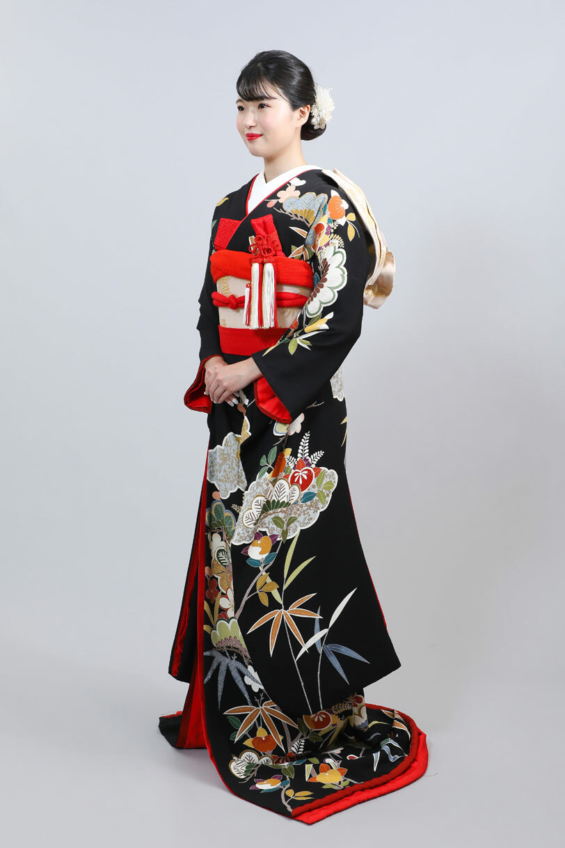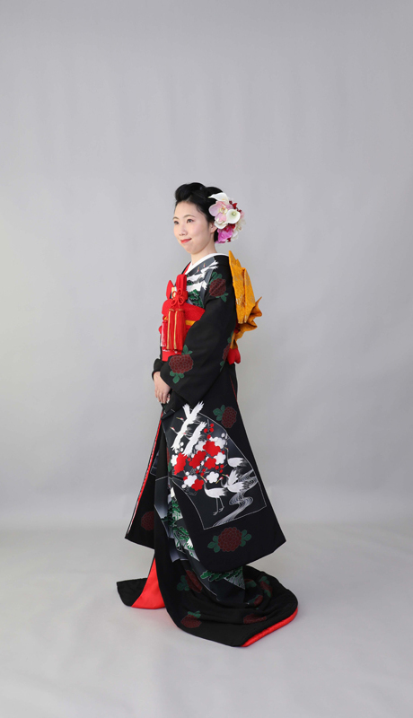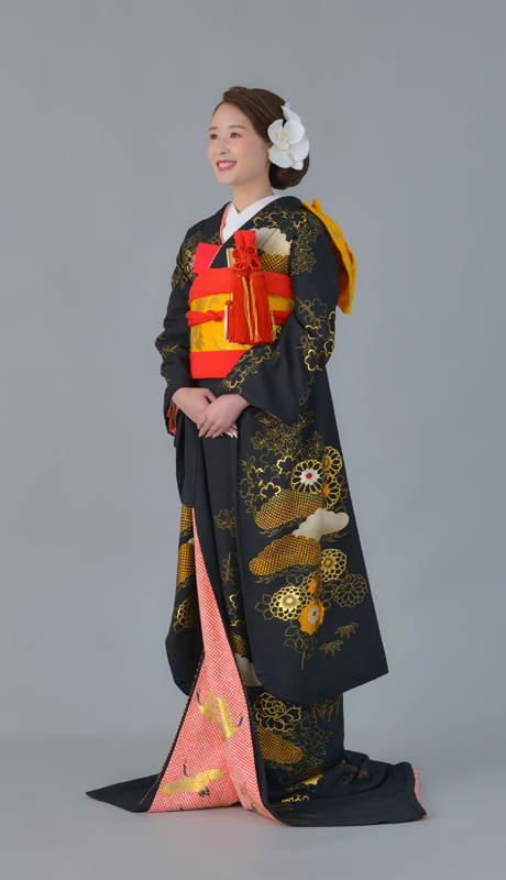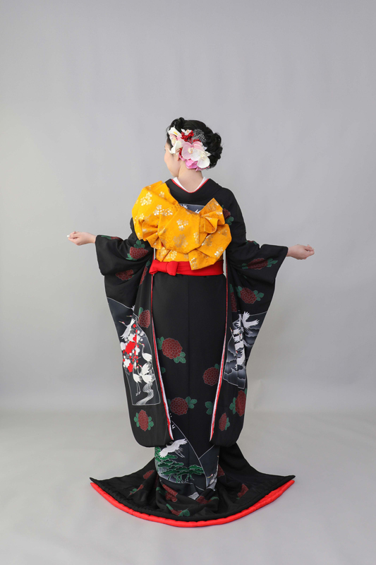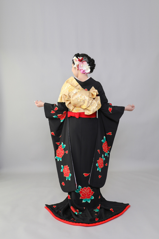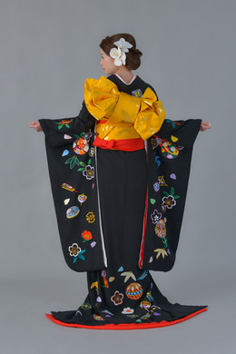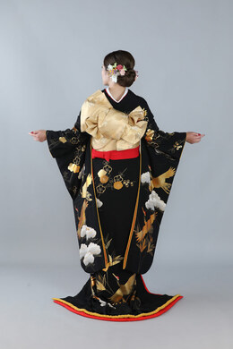本文黒引振袖は昭和初期まで白無垢や色打掛よりも主流となっていました。