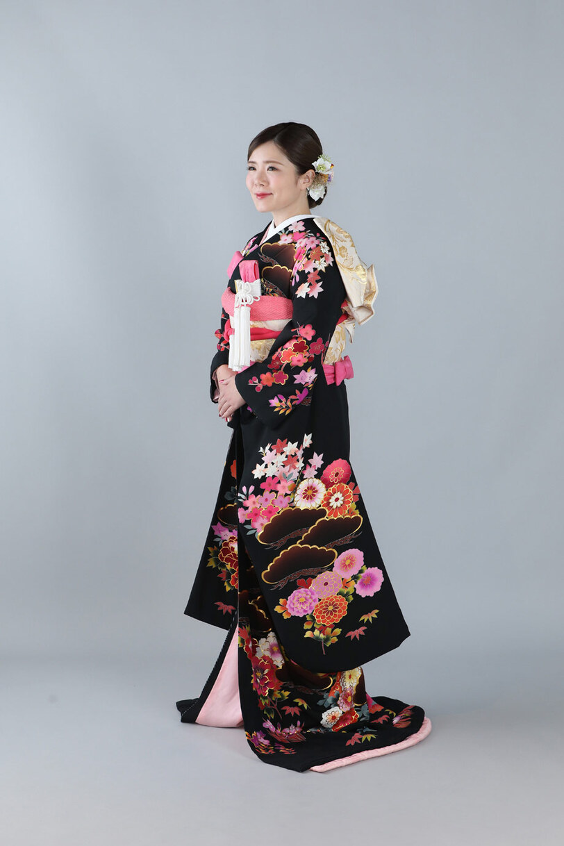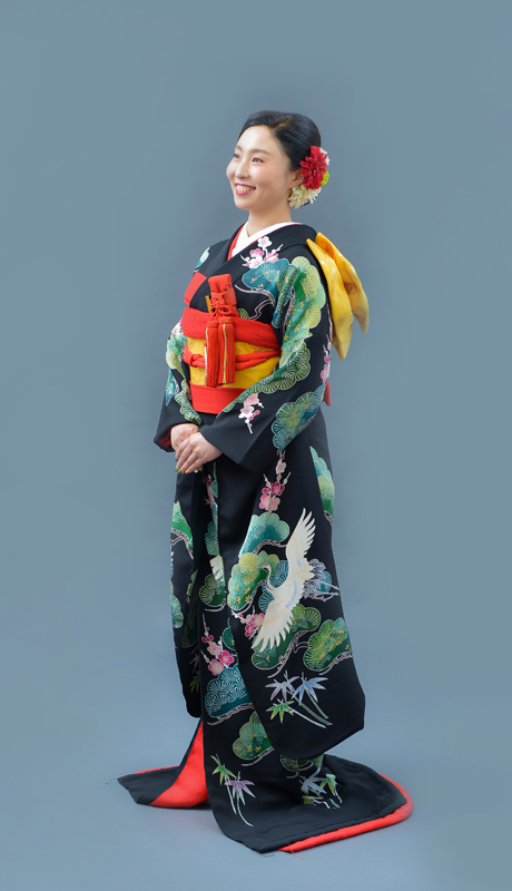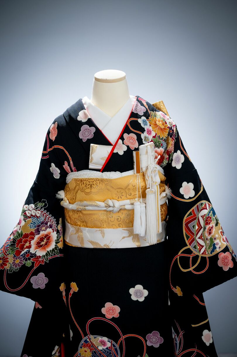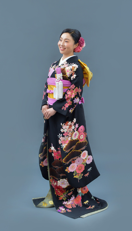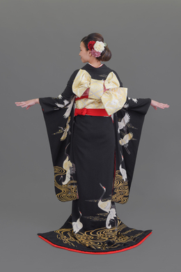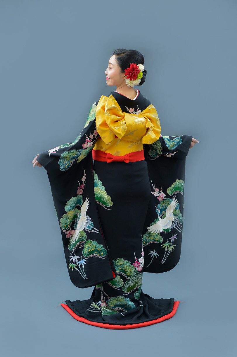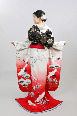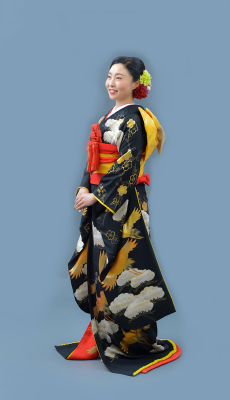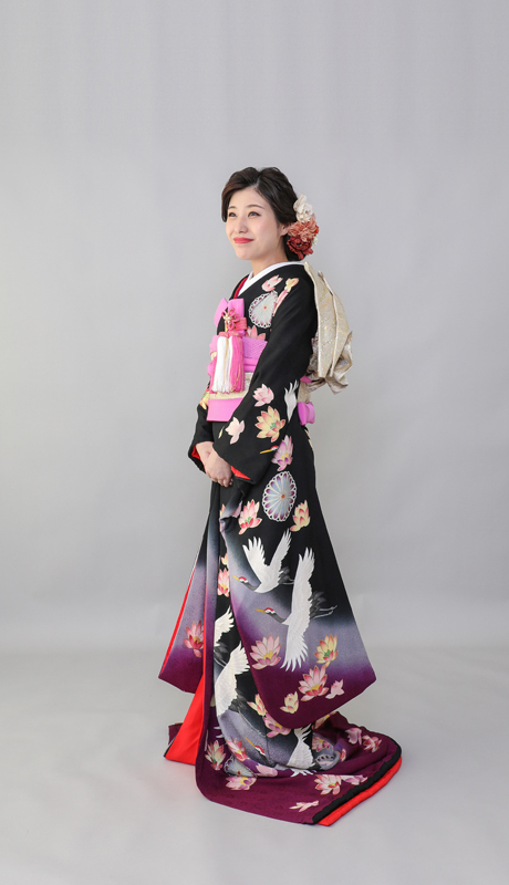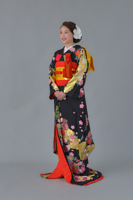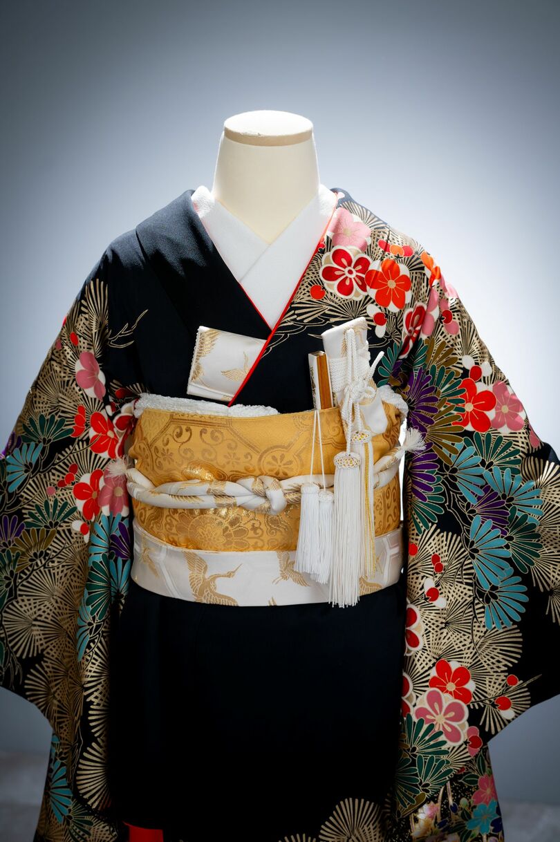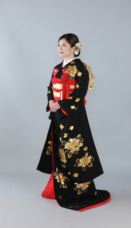 本文黒引振袖は昭和初期まで白無垢や色打掛よりも主流となっていました。