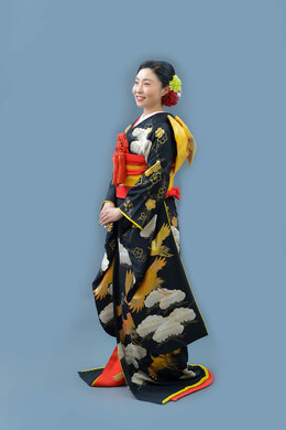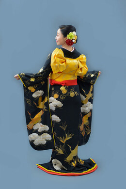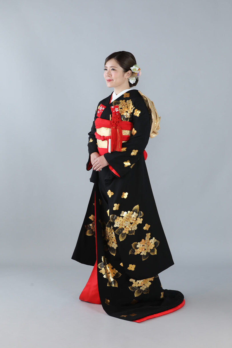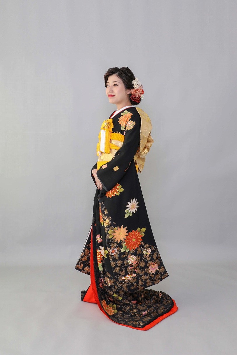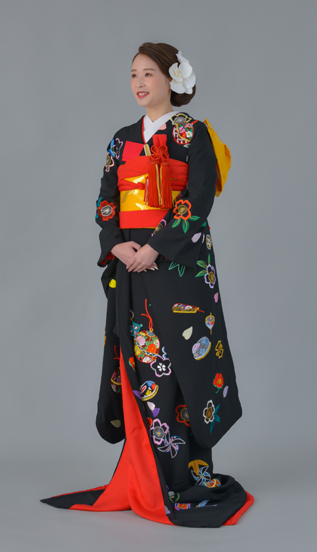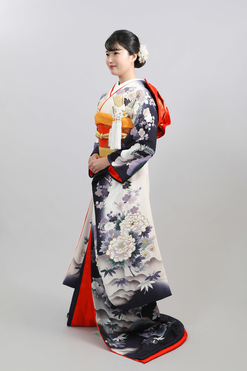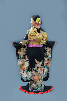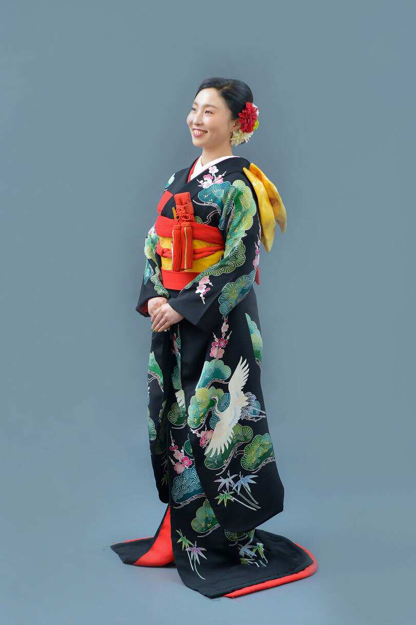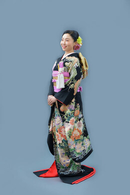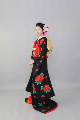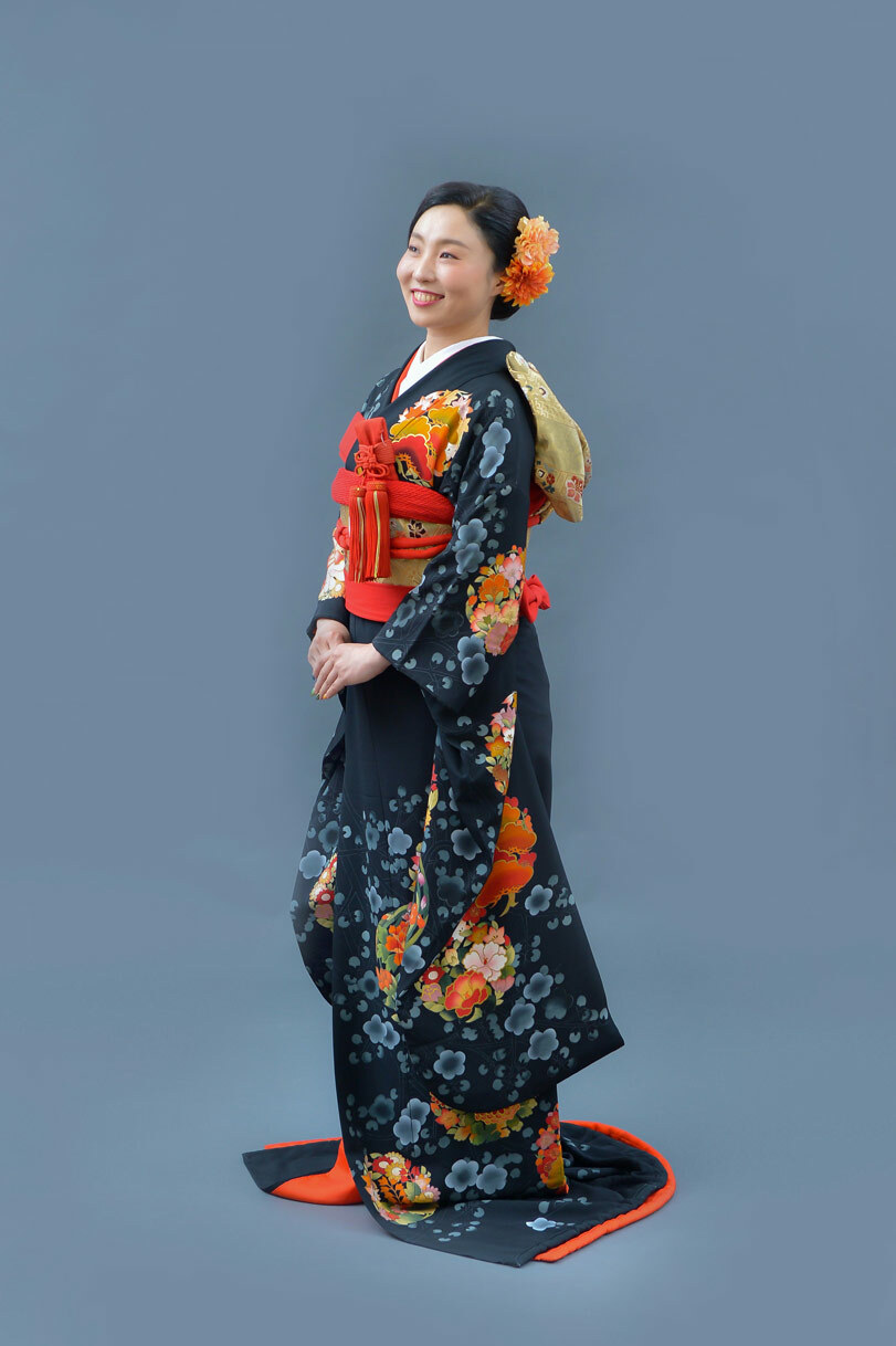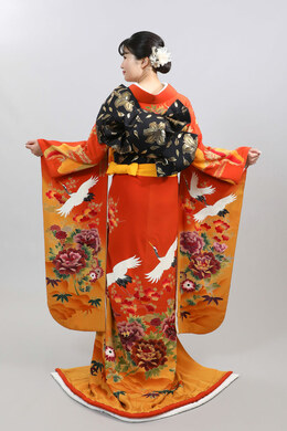 本文黒引振袖は昭和初期まで白無垢や色打掛よりも主流となっていました。