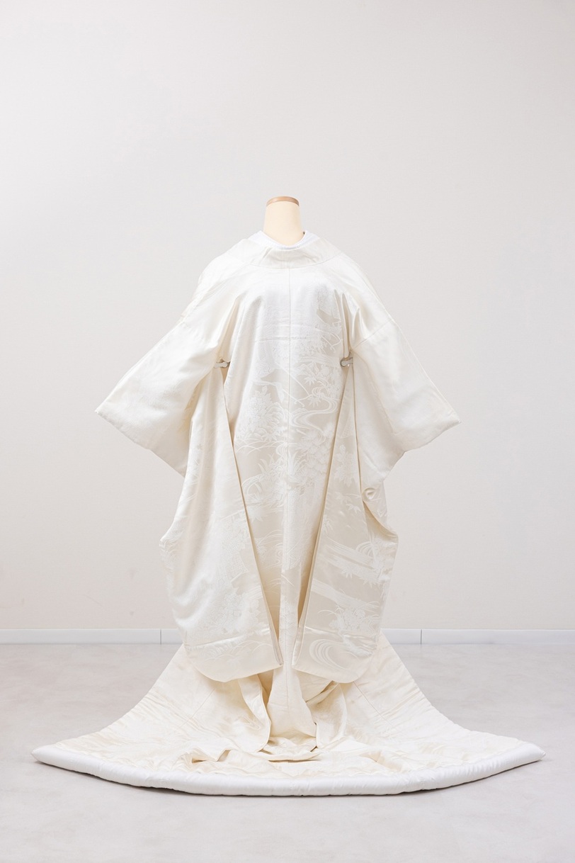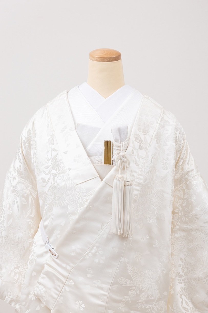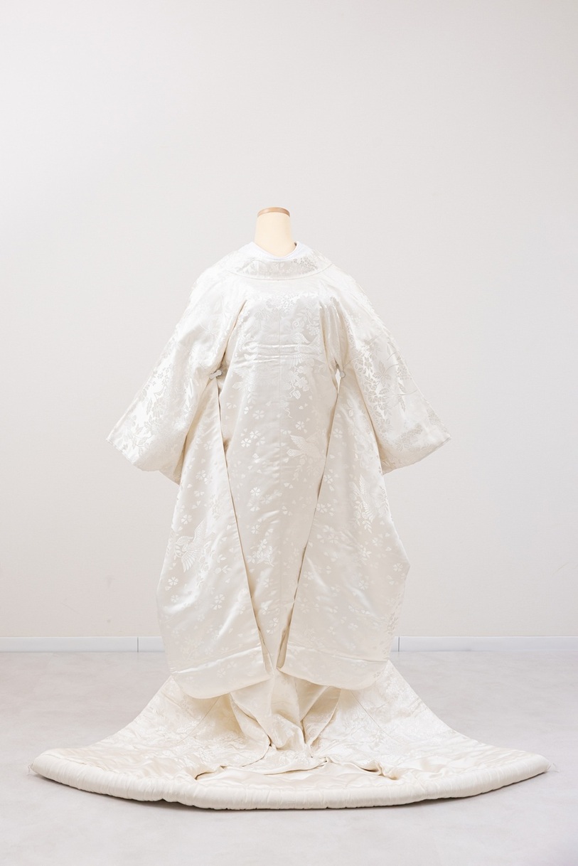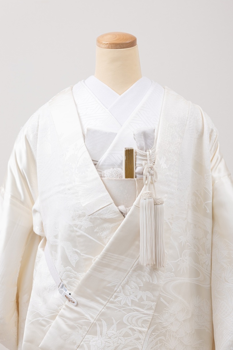表裏全てが白一色で作られた着物のことで、打掛、帯、小物も白色で統一されている和装。