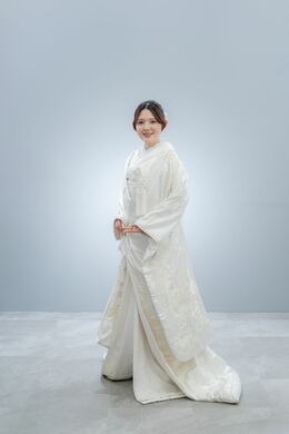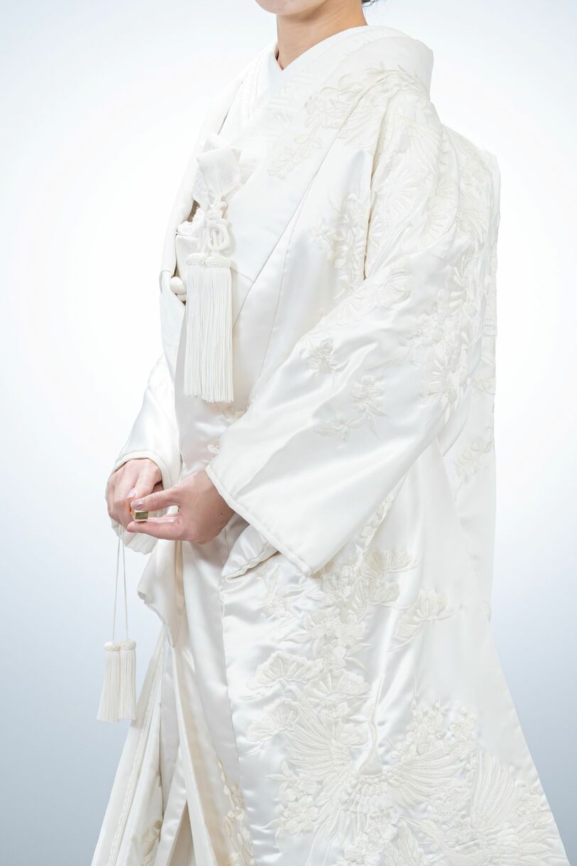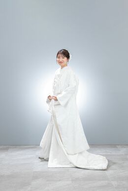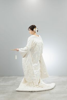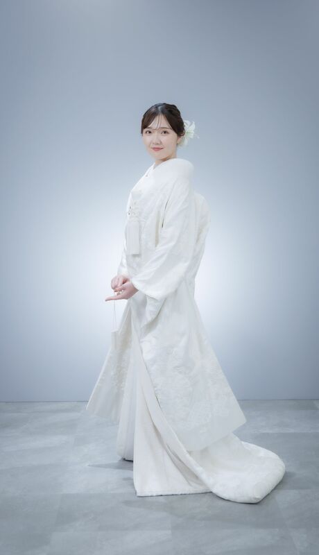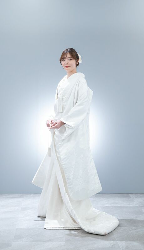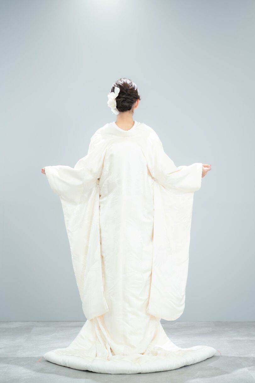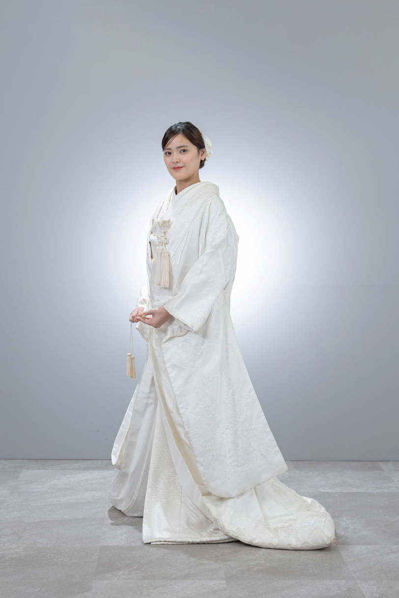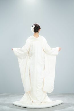 表裏全てが白一色で作られた着物のことで、打掛、帯、小物も白色で統一されている和装。