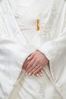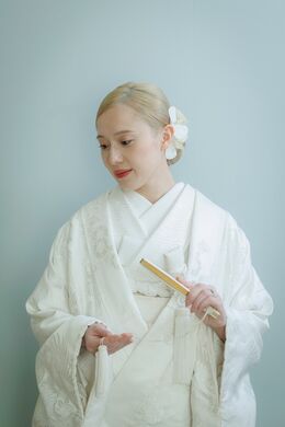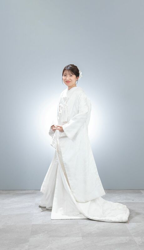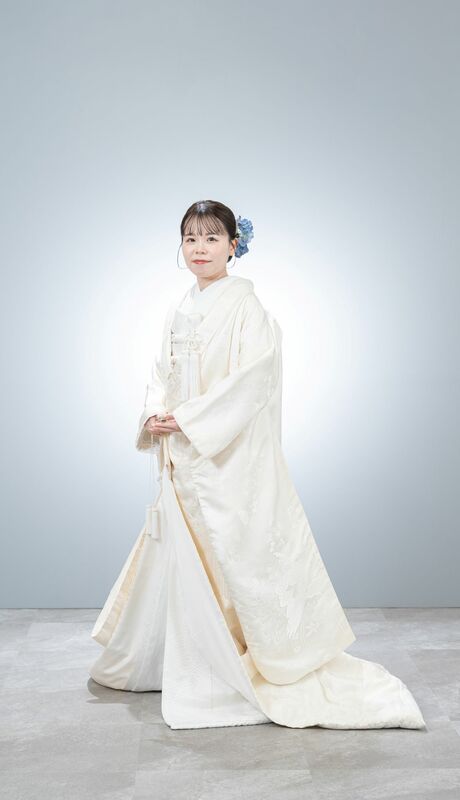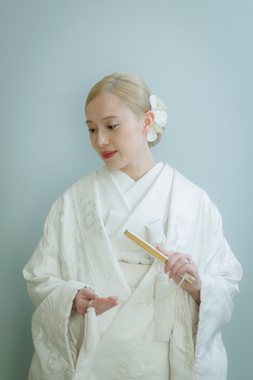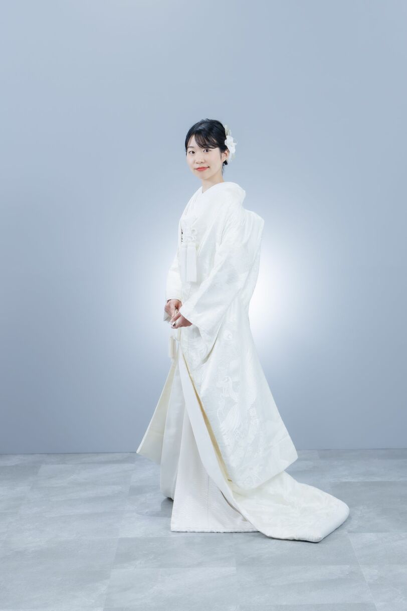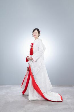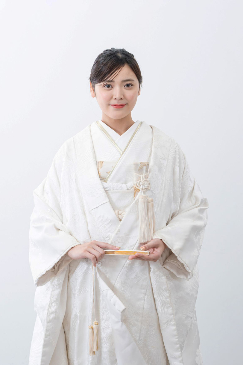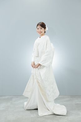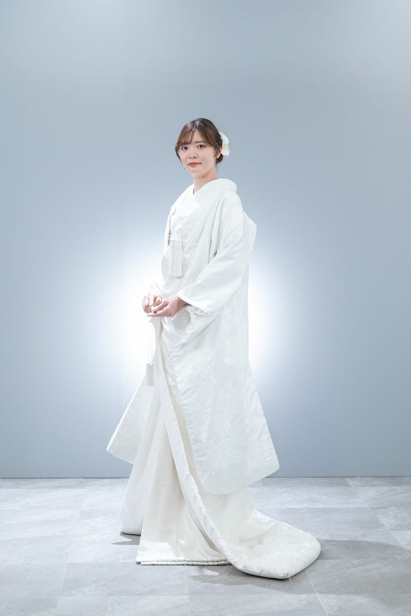 表裏全てが白一色で作られた着物のことで、打掛、帯、小物も白色で統一されている和装。