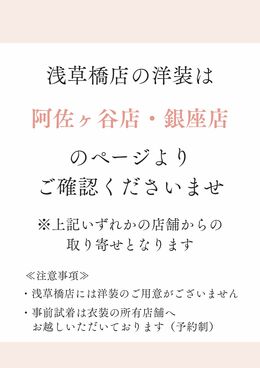 ※クリーニングなどにより衣裳が店舗にない場合がございます。ご容赦くださいませ。 -