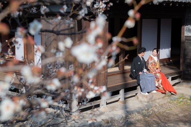 梅の時期の人気ロケーション場所(妙本寺の紅梅・白梅)