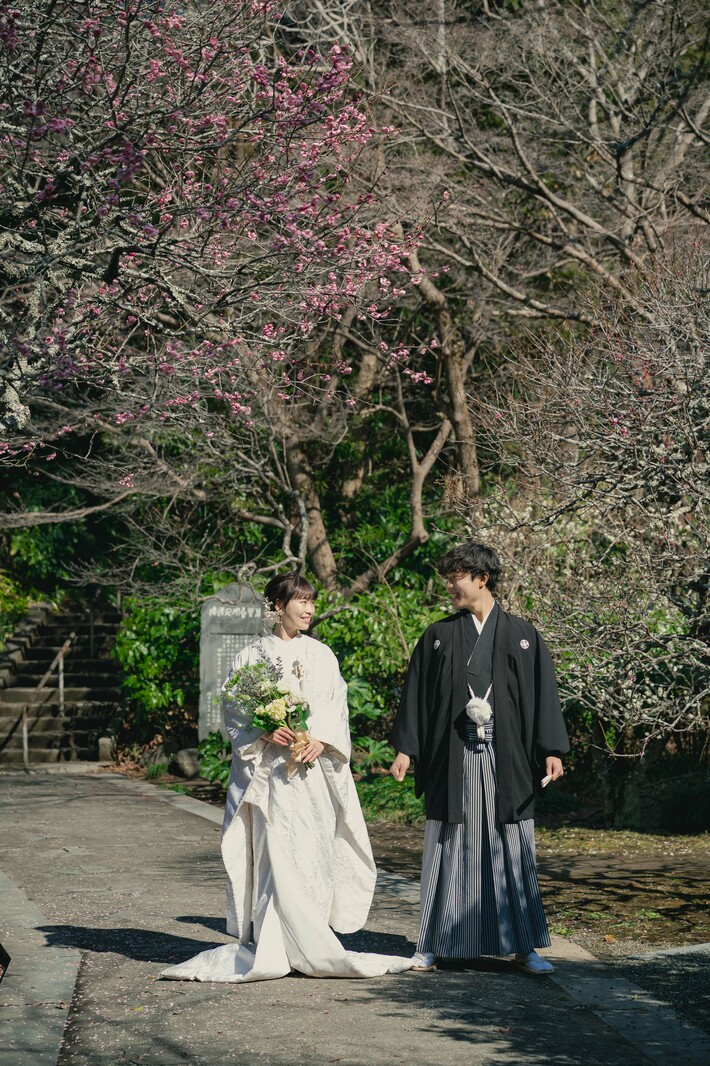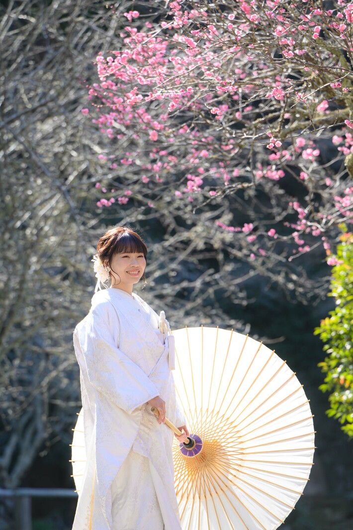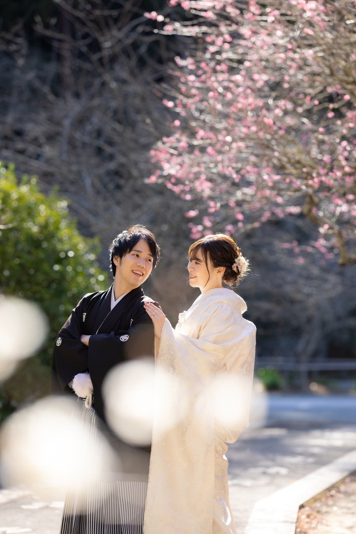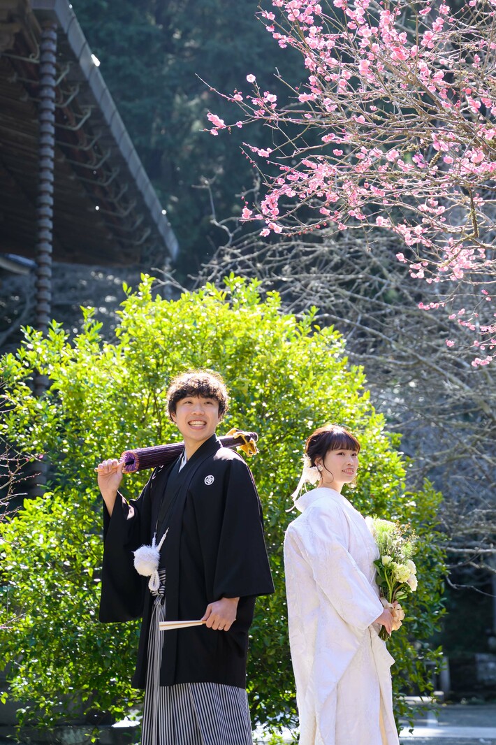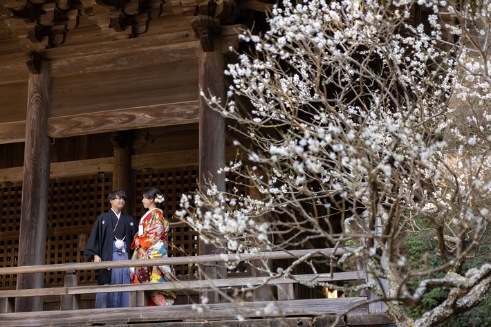 梅の時期の人気ロケーション場所(妙本寺の紅梅・白梅)