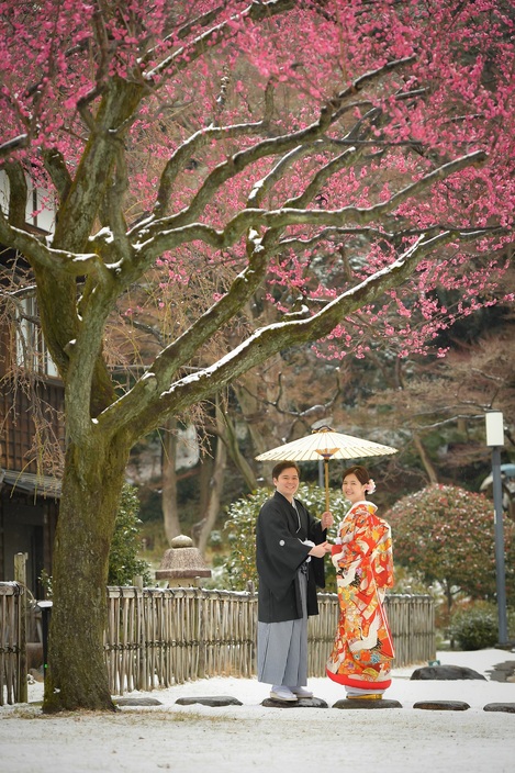 1月は黄色い梅の『蝋梅』、『白梅』、2月からは『紅梅』が咲く