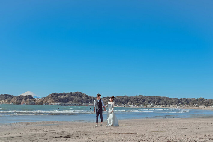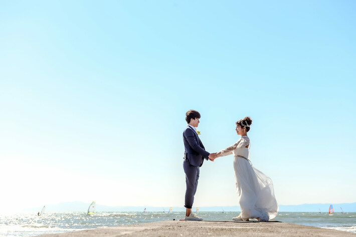 砂浜や波打ち際・桟橋など、多彩なロケーションを完備しており、お二人の希望や雰囲気に合わせた一枚を撮影できます。