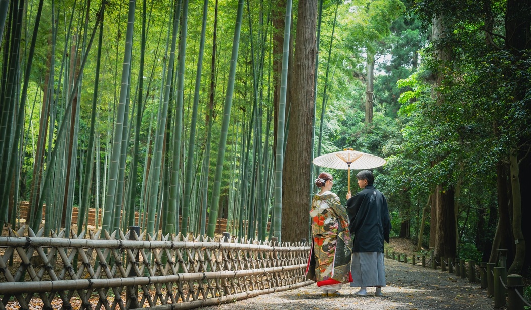 厳選された質の高い着物が揃っており、神社でのロケーション撮影を希望するカップルに最適です。