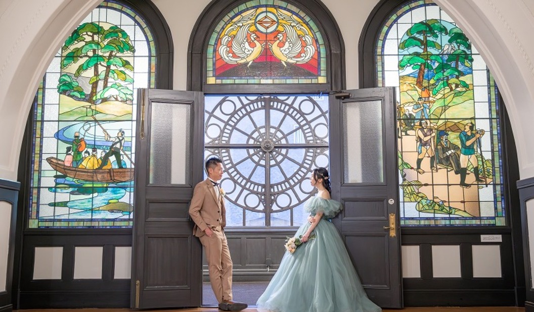 クラシカルで豪華な歴史的レストランの空間を貸し切った撮影は、異国情緒あふれる横浜ならではの非日常を演出します。