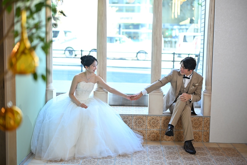 横浜駅からすぐの好立地にあり、自由度の高いオリジナルプランやこだわりの出張撮影で、おふたりらしさを追求できます。