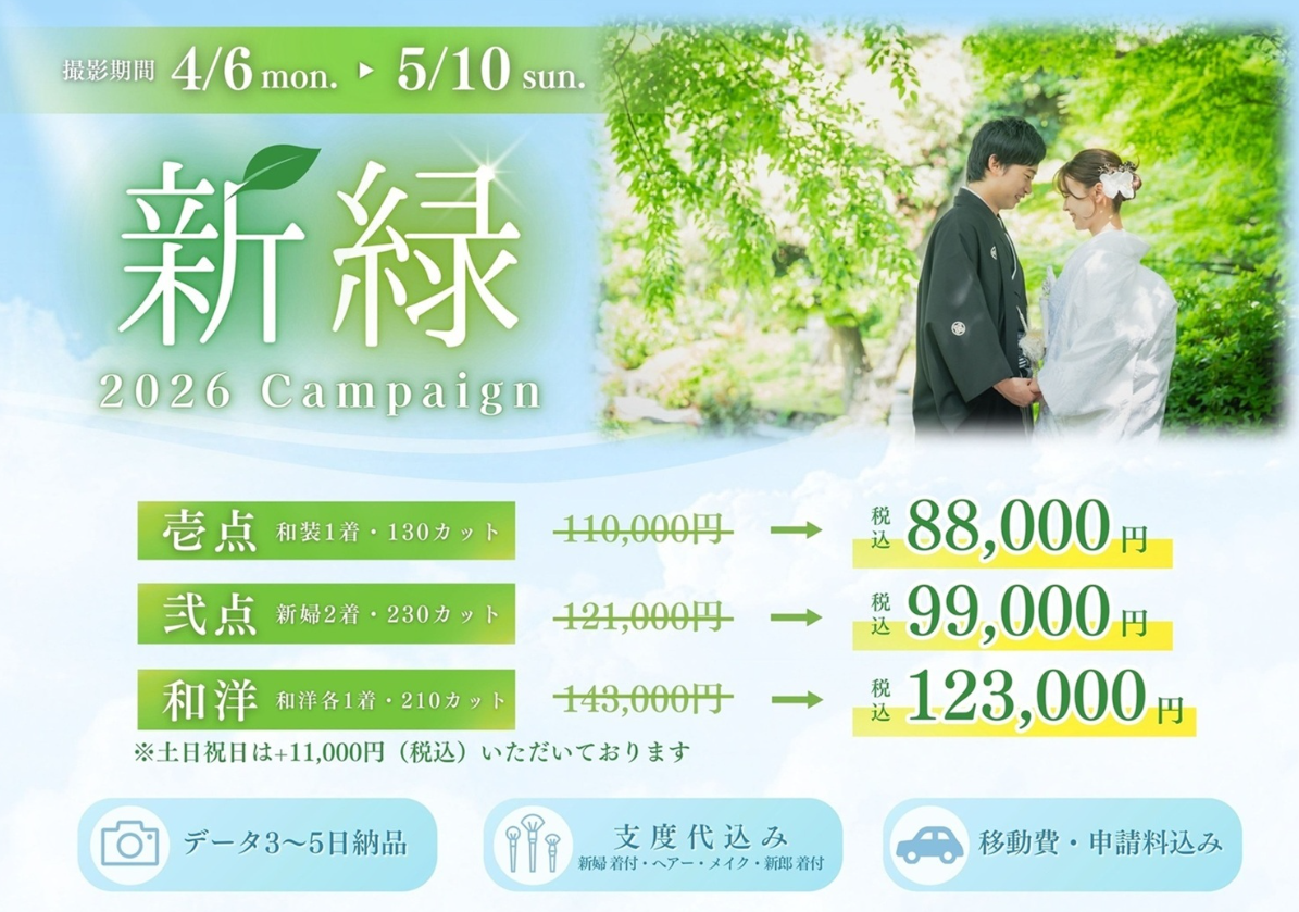 「自分たちの希望の場所で撮れるかな?」と迷われている方は、ぜひお早めにキャンペーン詳細をチェックしてみてください。