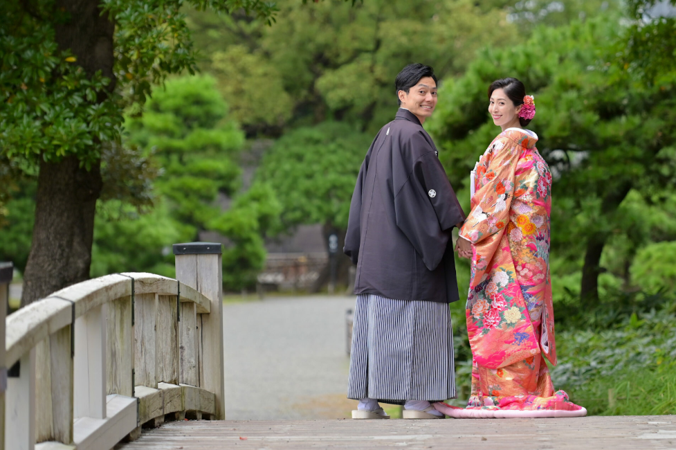 和装に強い老舗として伝統的な立ち姿から、庭園の緑やチャペルでの洋装撮影まで、流行に左右されない王道のフォトを残せます。