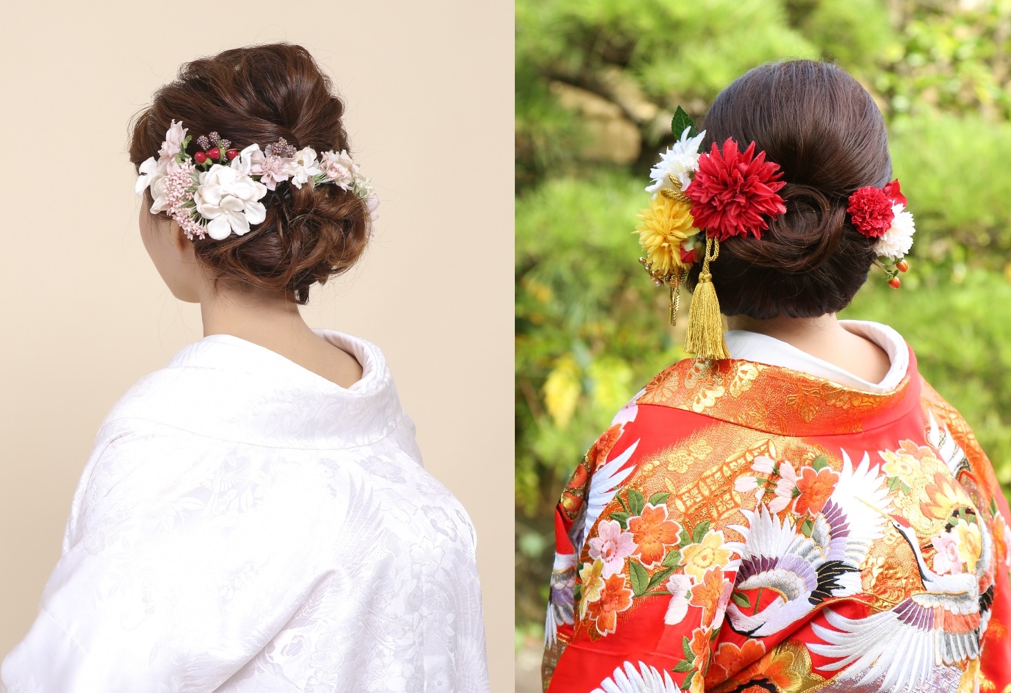 一般的に、髪飾りはフォトスタジオで用意していることが多いです。主に造花をつけることが多く、人気なのはピンポンマムやダリア、胡蝶蘭です。花の種類だけでなく、さまざまな色の造花がありますので、どの色打掛や黒引振袖にも合わせることができます。もちろん、持参した髪飾りをつけることも出来ますので、希望する場合は予約しているフォトスタジオに一度確認してみましょう。