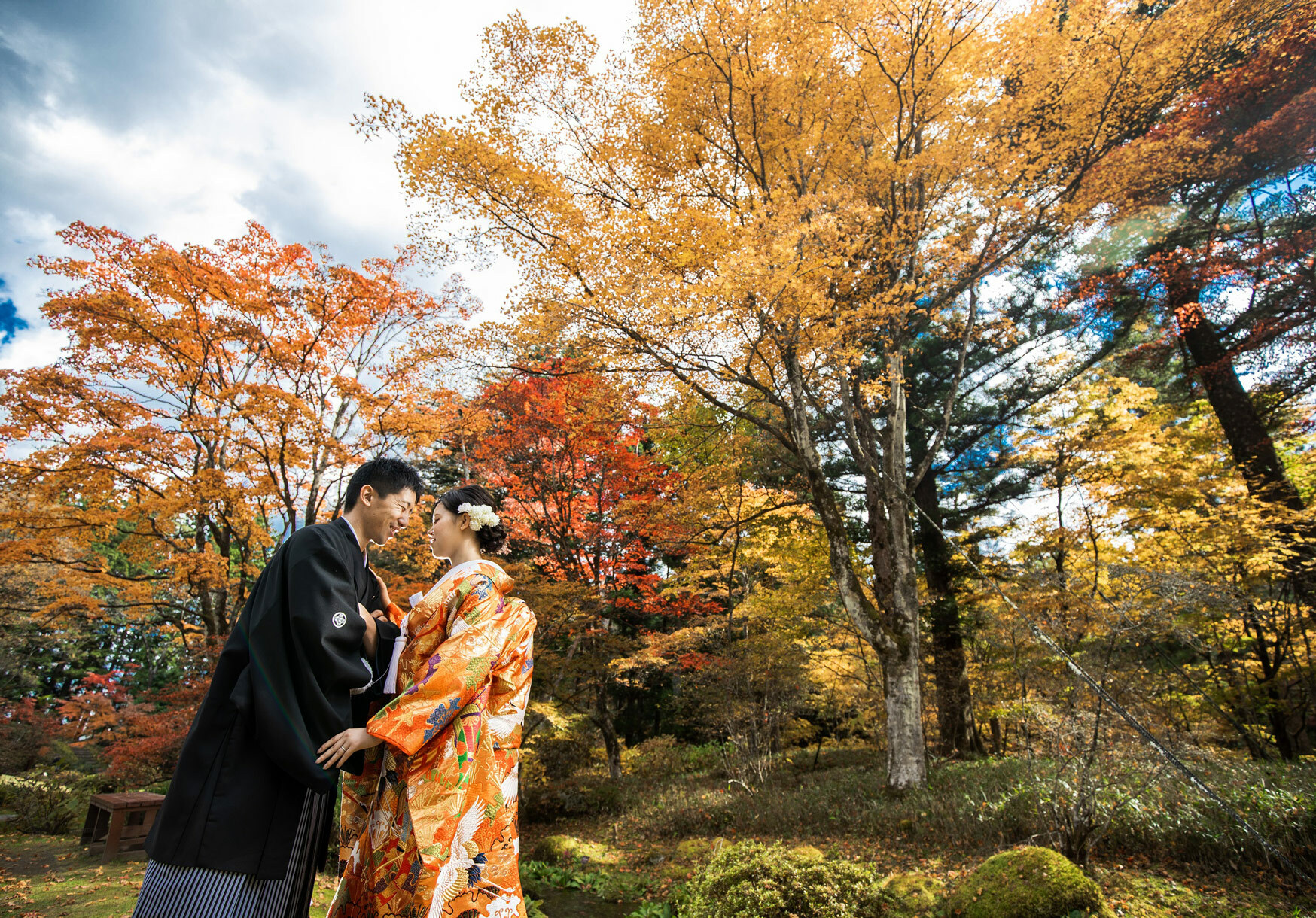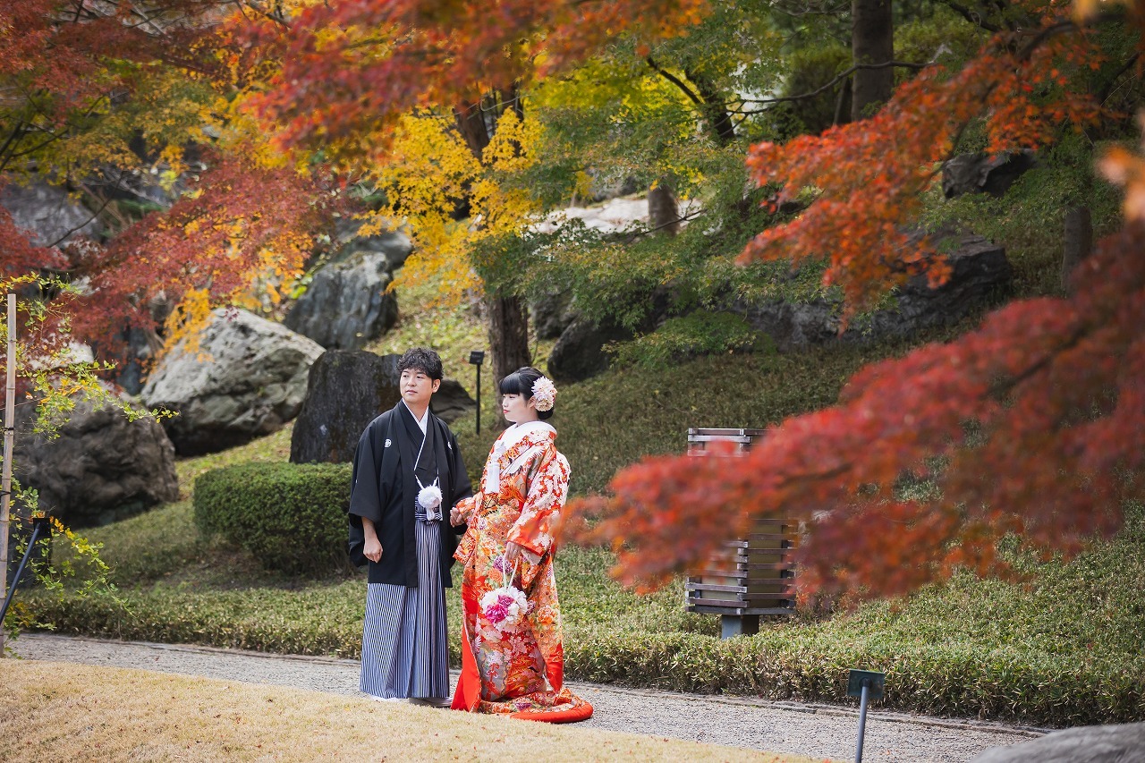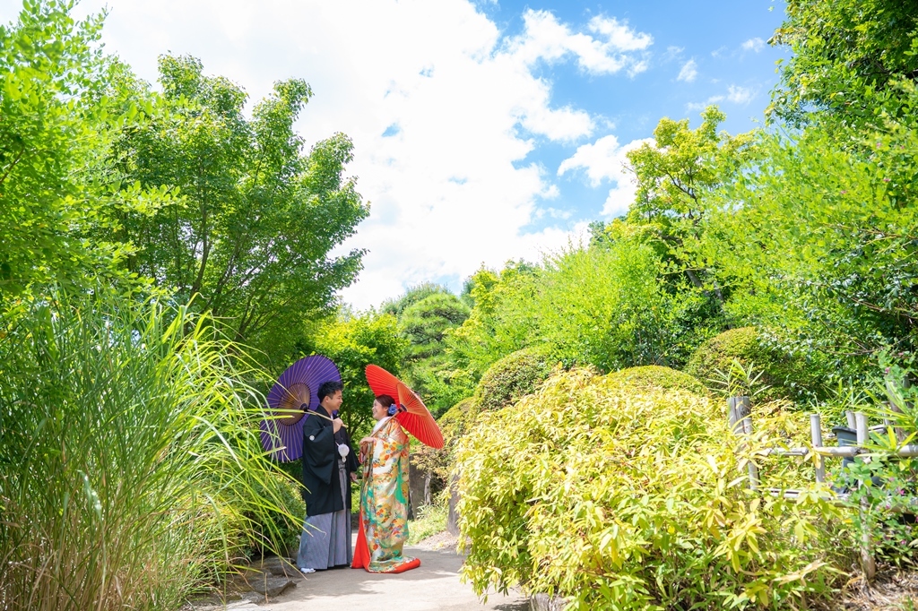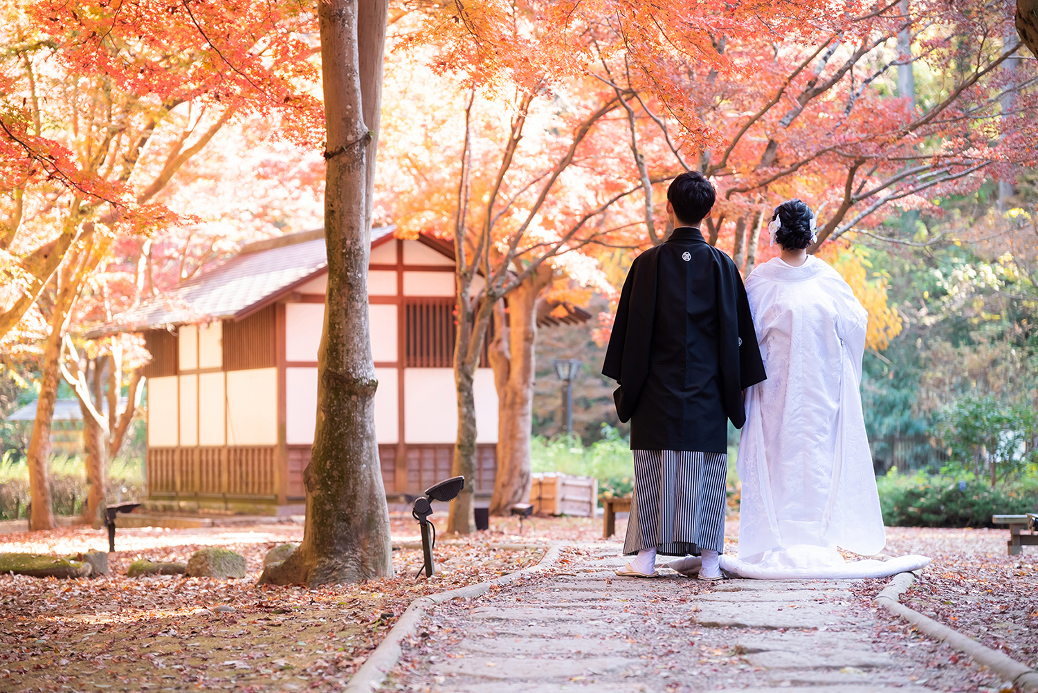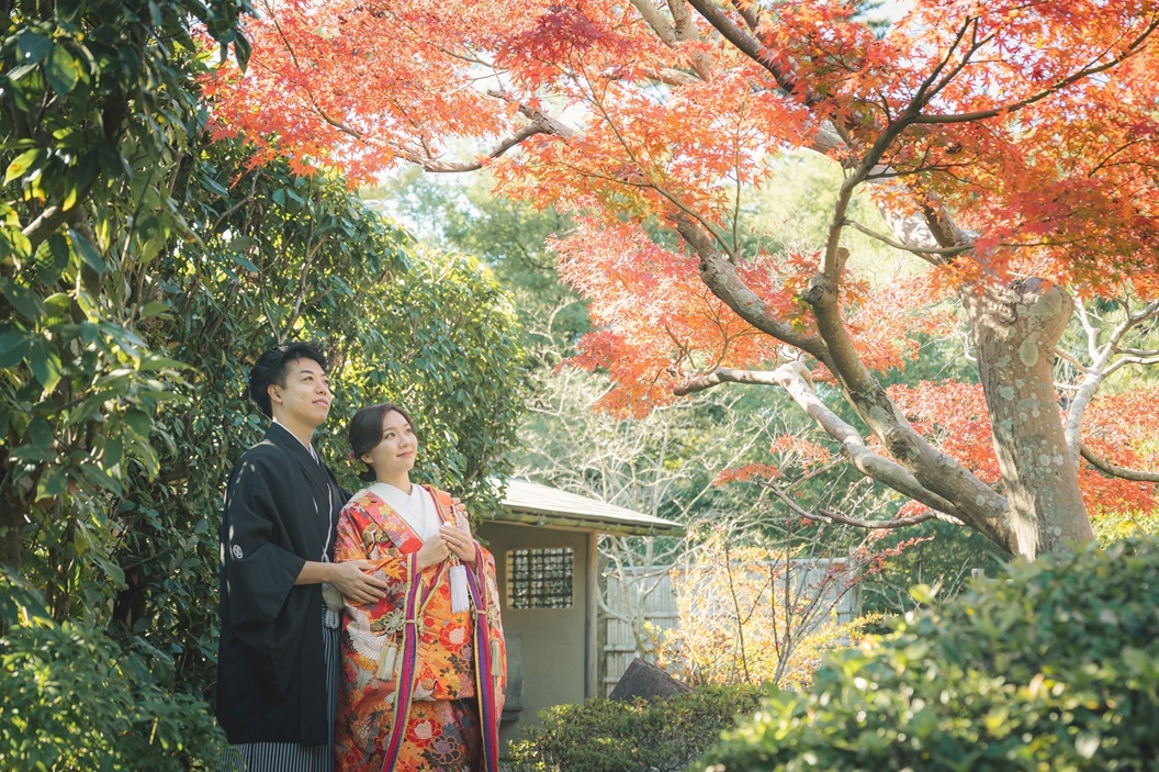 新緑から紅葉まで和室も完備。オールシーズンで撮影が可能、園内の移動も少なくストレスレスな撮影ができます。1着プランがお勧め!