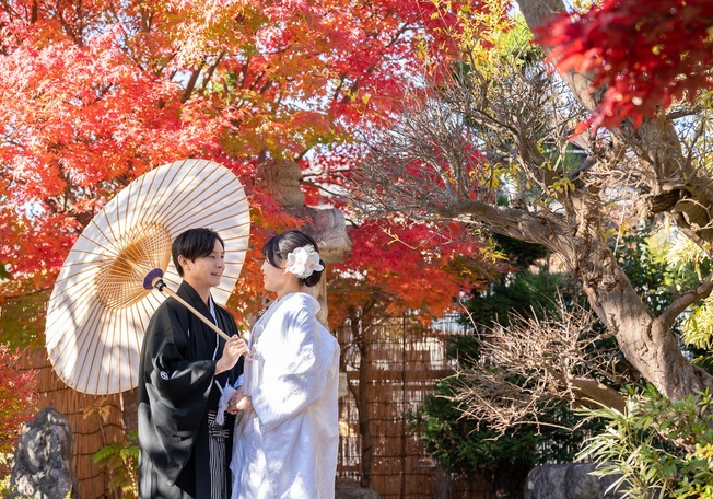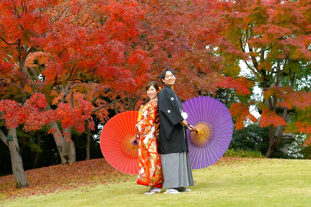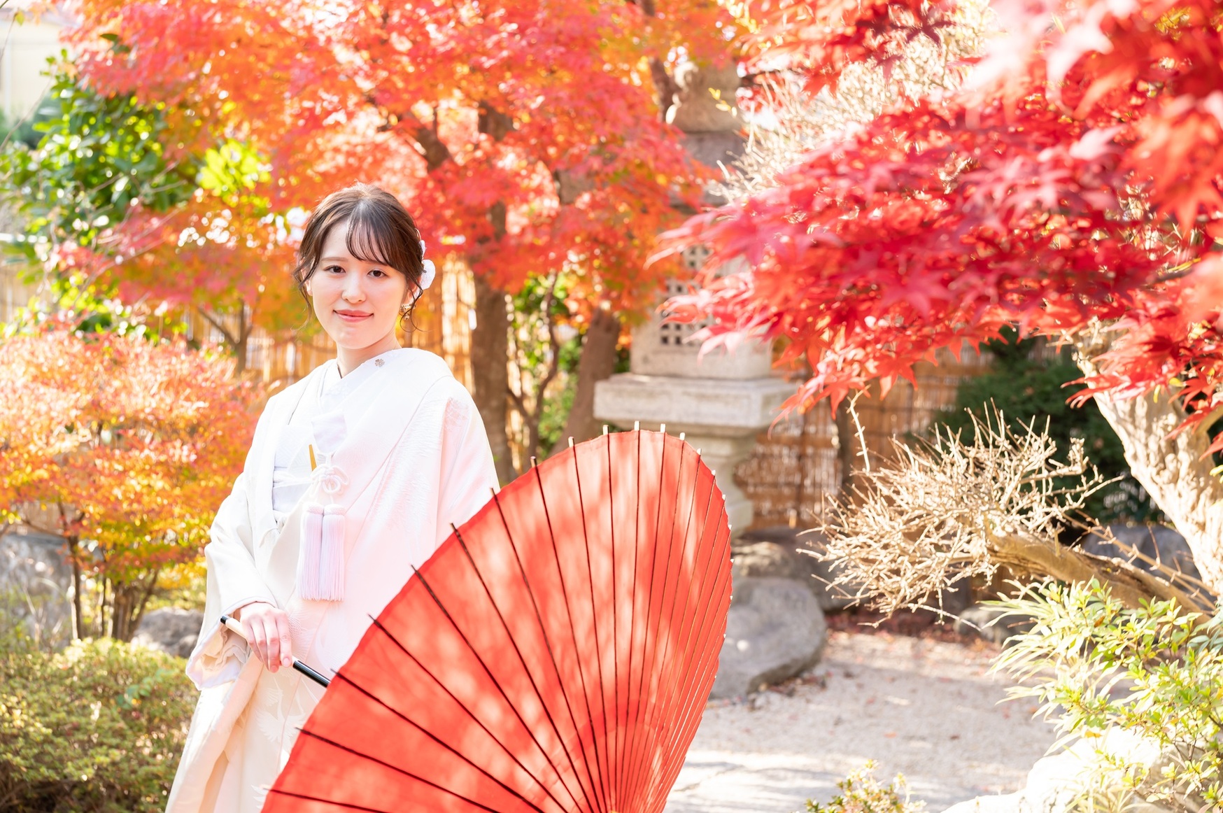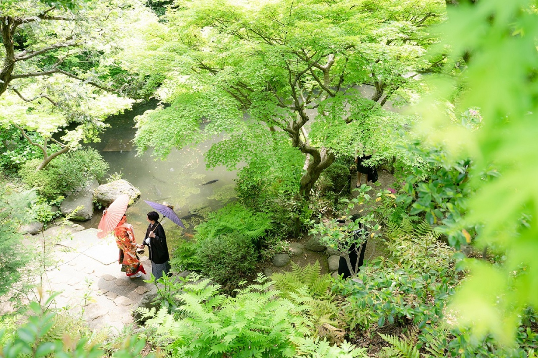 新緑から紅葉まで和室も完備。オールシーズンで撮影が可能、園内の移動も少なくストレスレスな撮影ができます。1着プランがお勧め!
