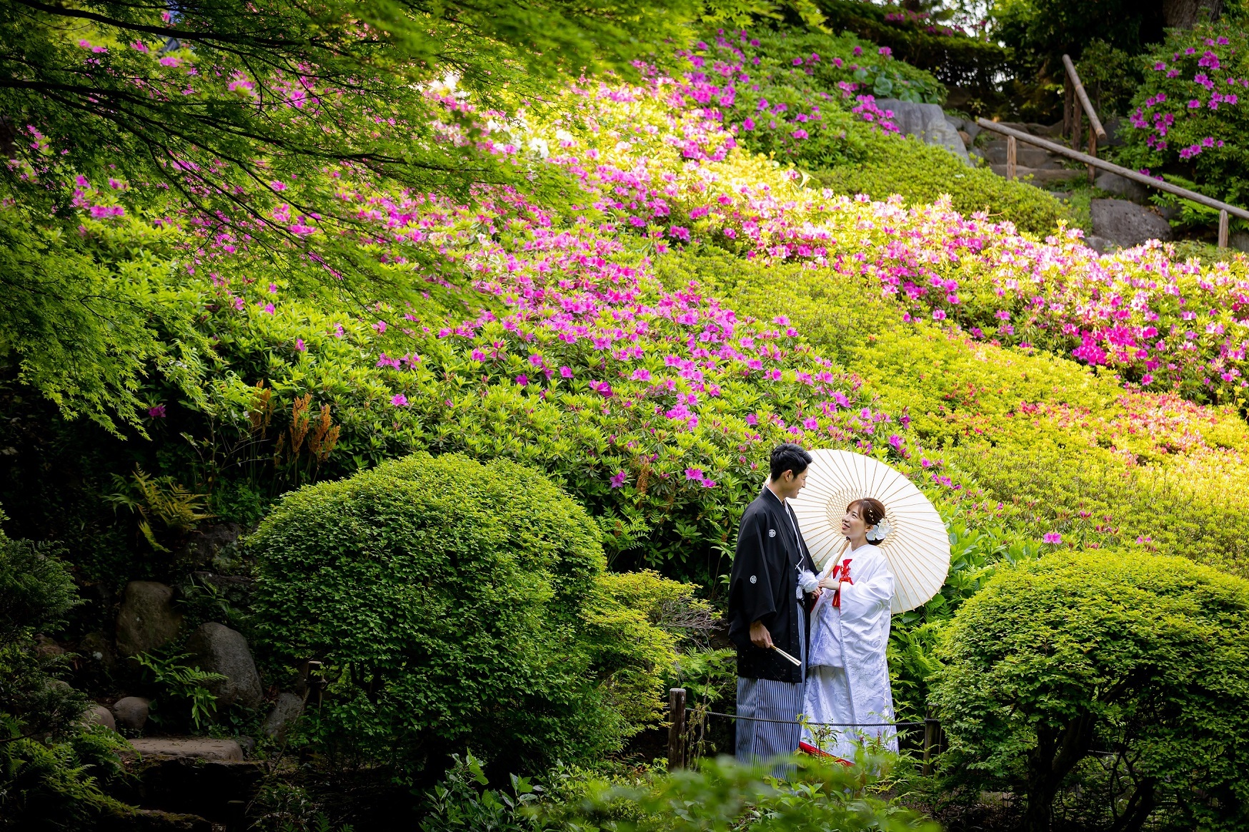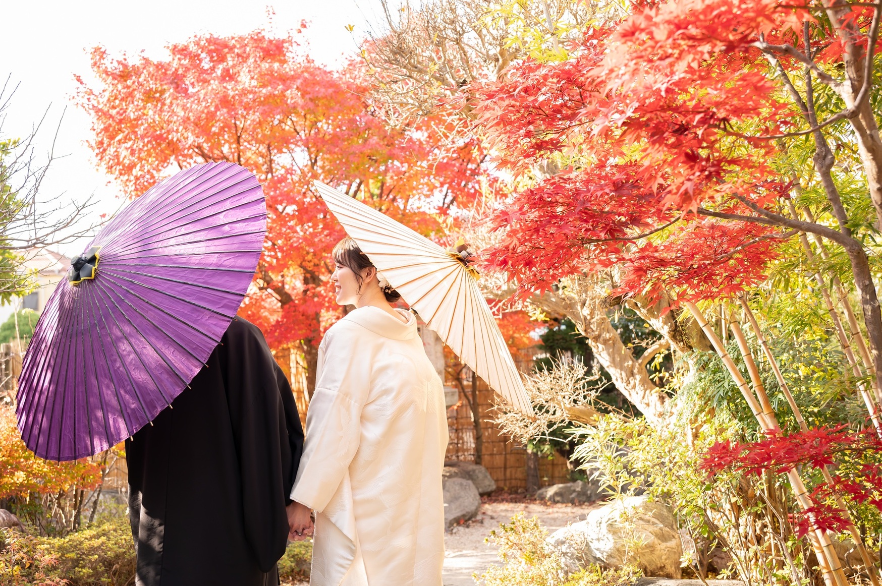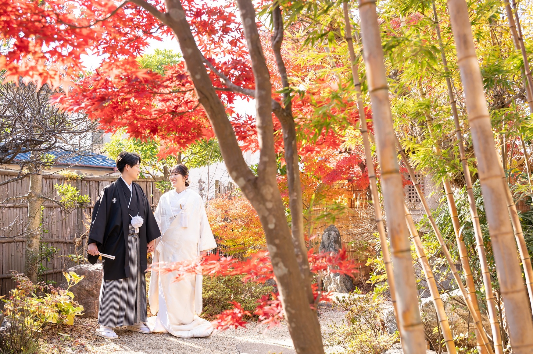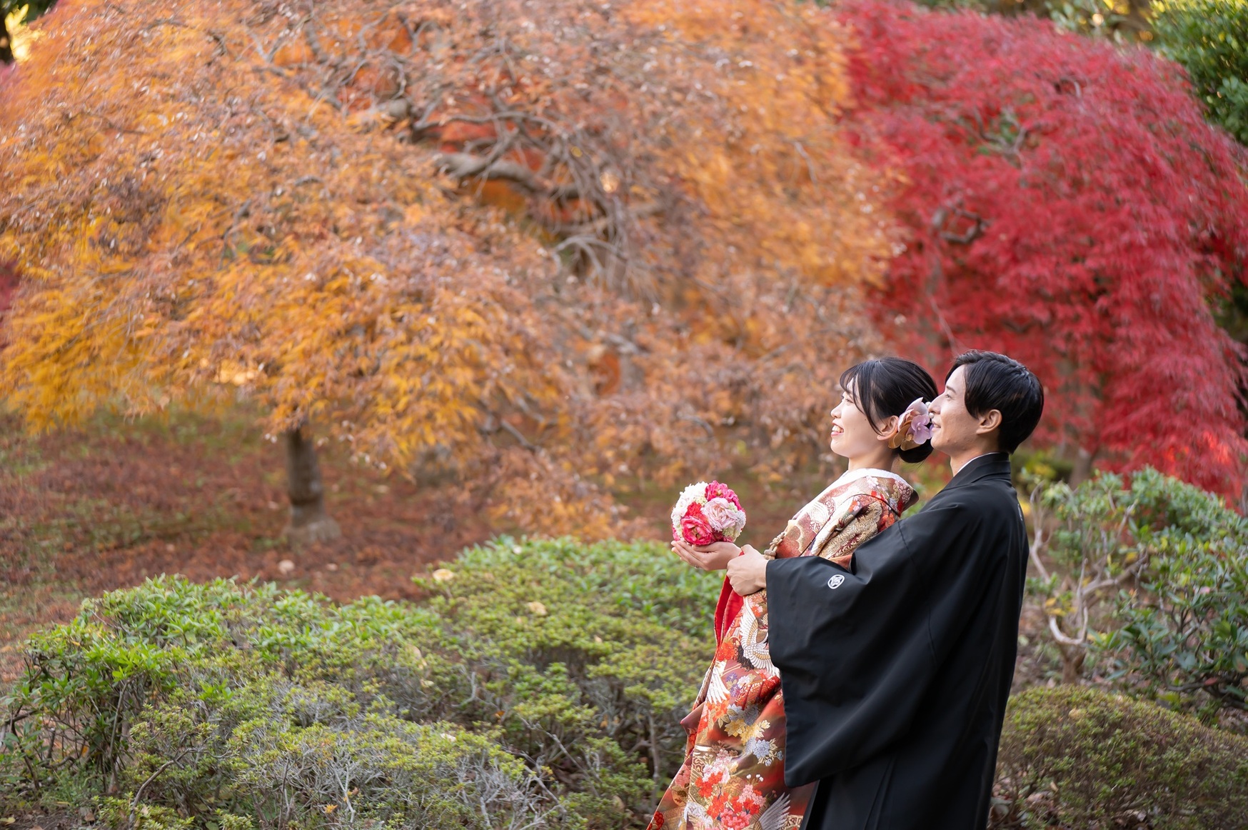 新緑から紅葉まで和室も完備。オールシーズンで撮影が可能、園内の移動も少なくストレスレスな撮影ができます。1着プランがお勧め!