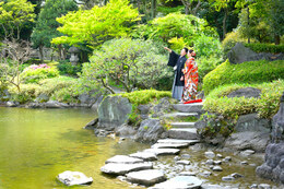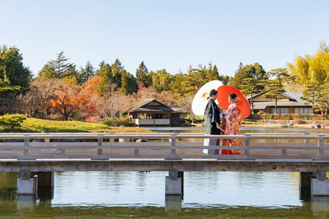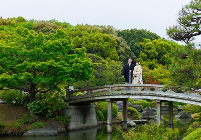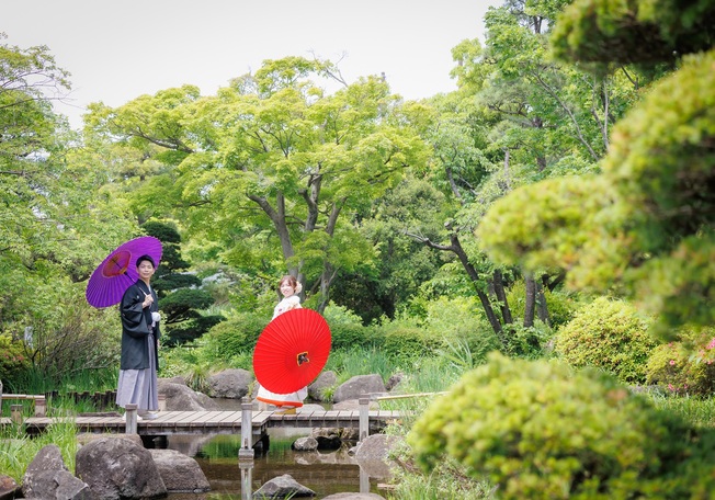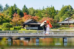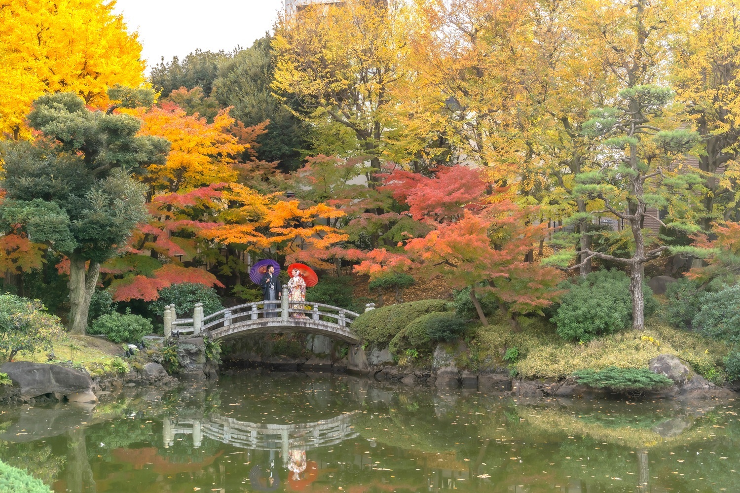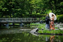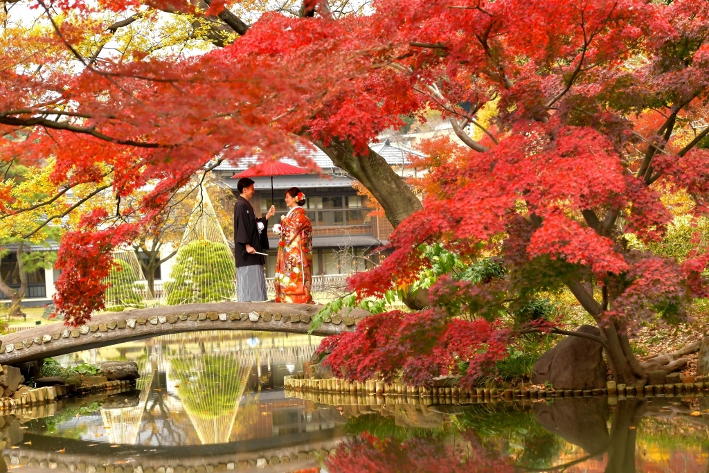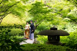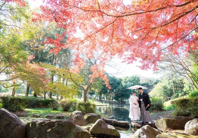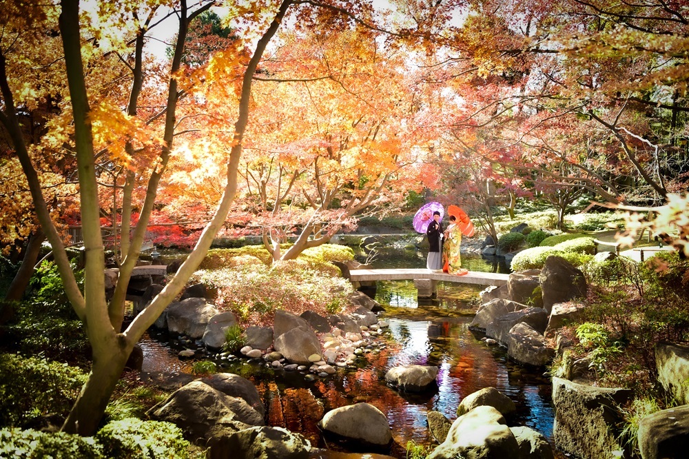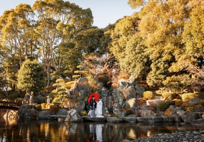 日本庭園では静寂の中で伝統美を堪能しながら撮影が可能です!自然の事ですので撮影時期によって、桜・新緑・紅葉の時期は確実ではありません