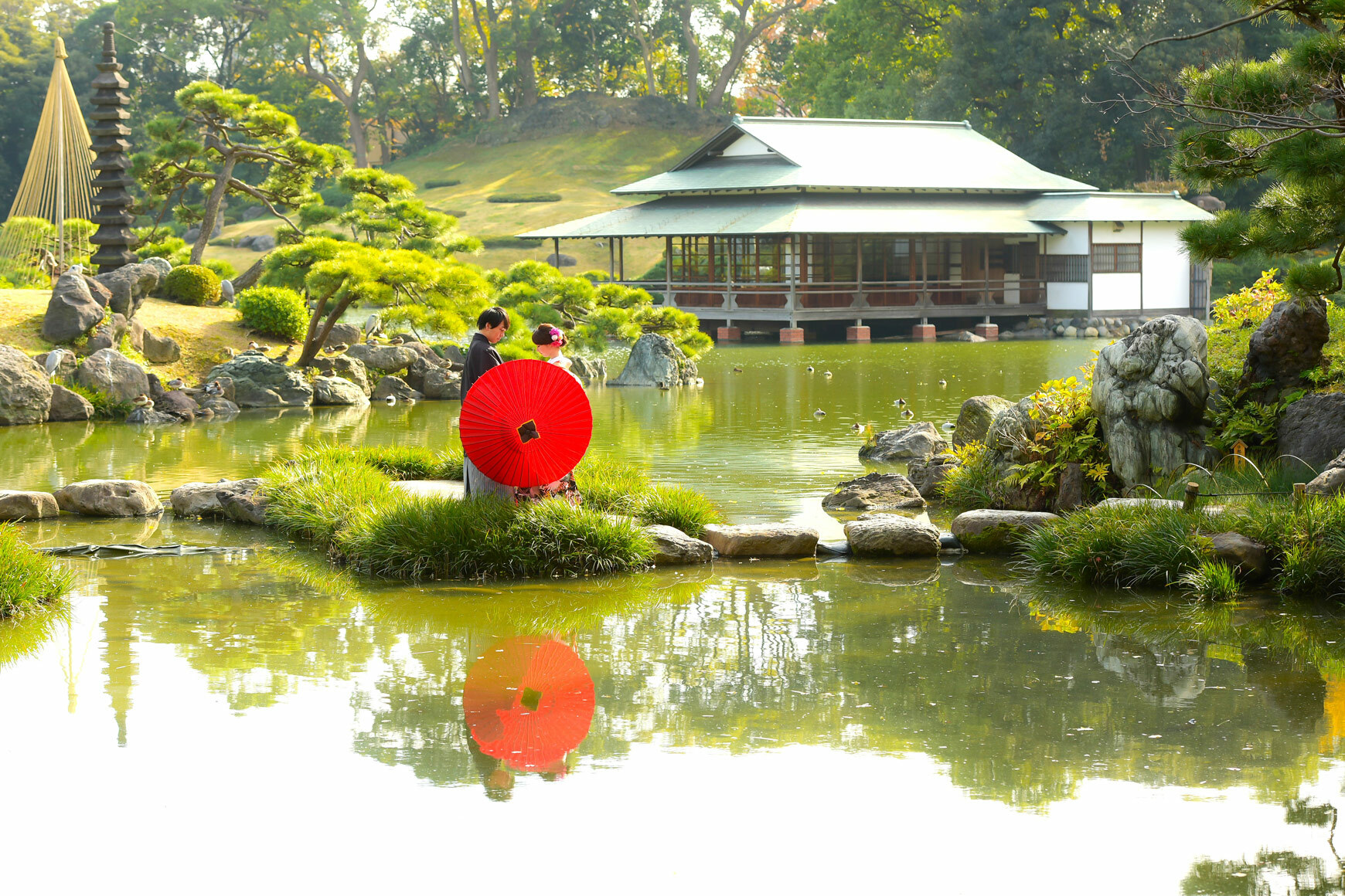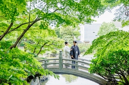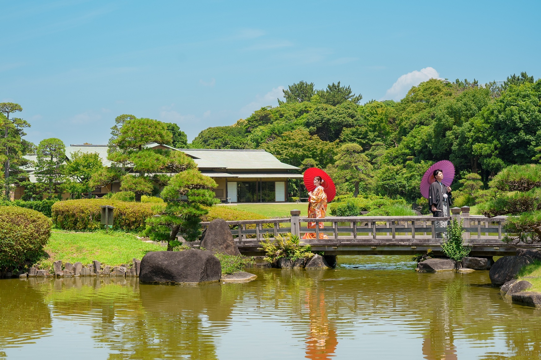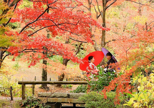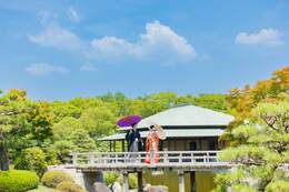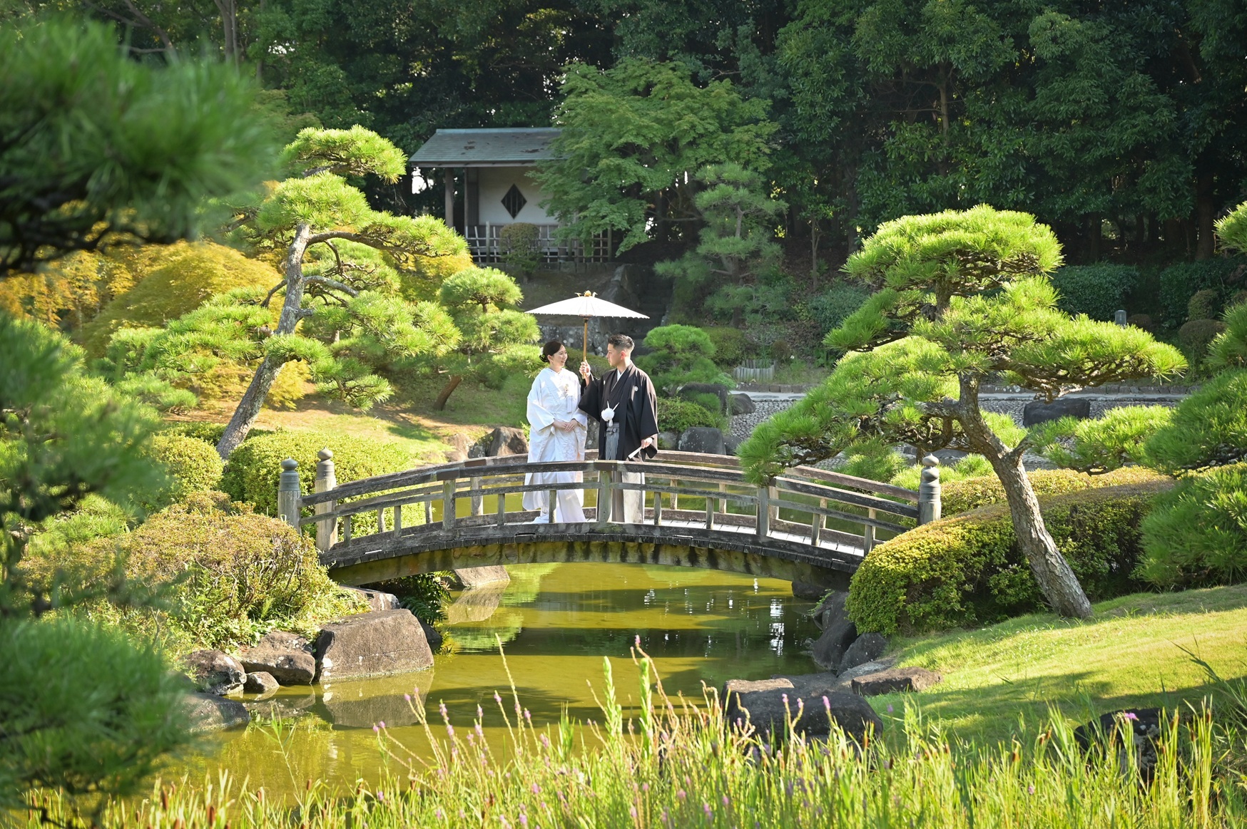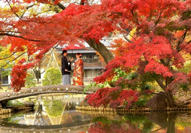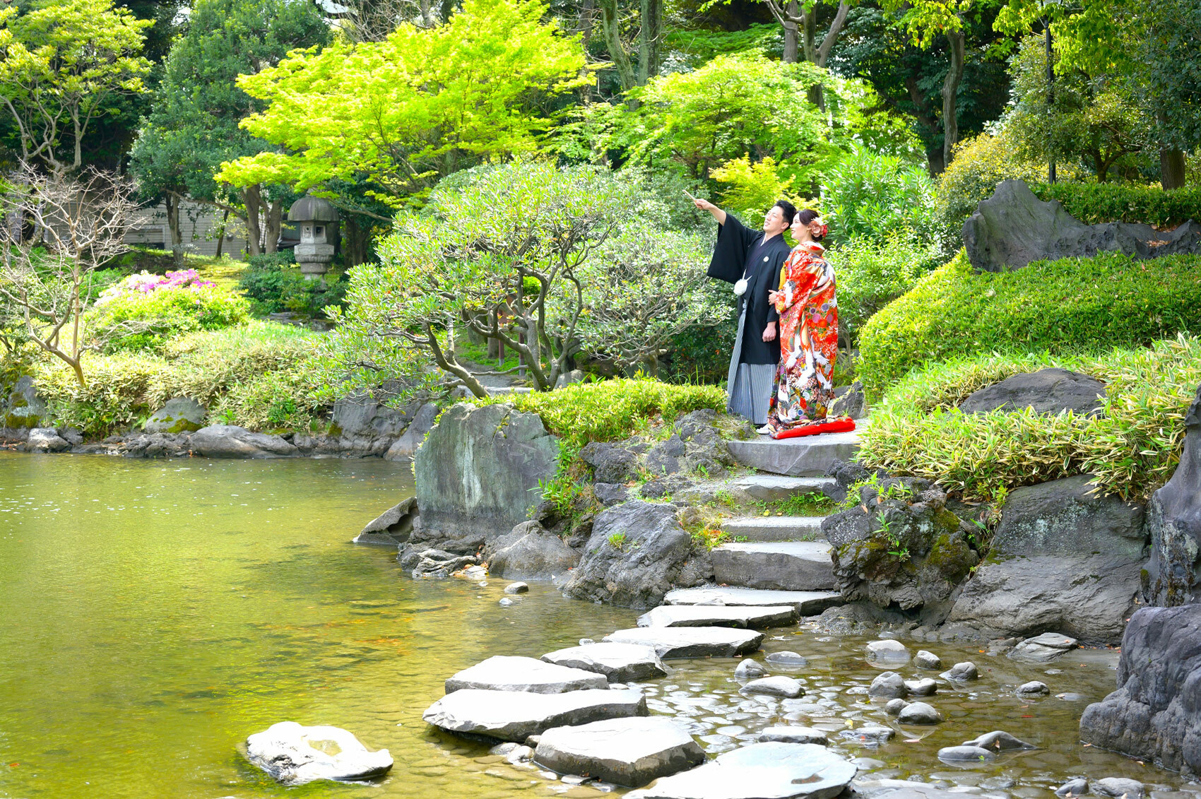 日本庭園では静寂の中で伝統美を堪能しながら撮影が可能です!自然の事ですので撮影時期によって、桜・新緑・紅葉の時期は確実ではありません