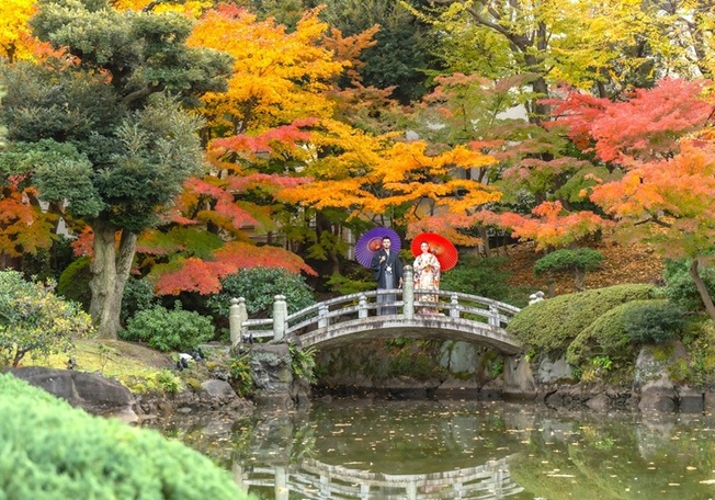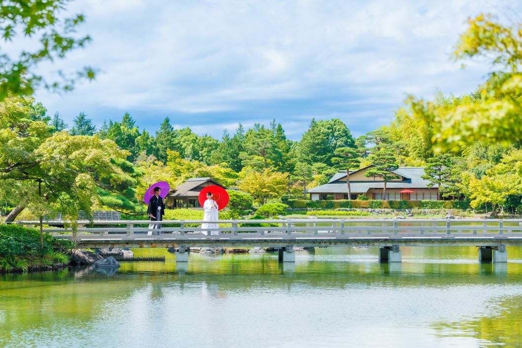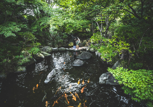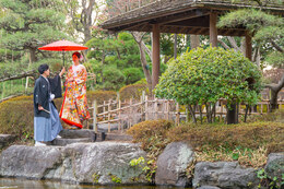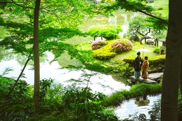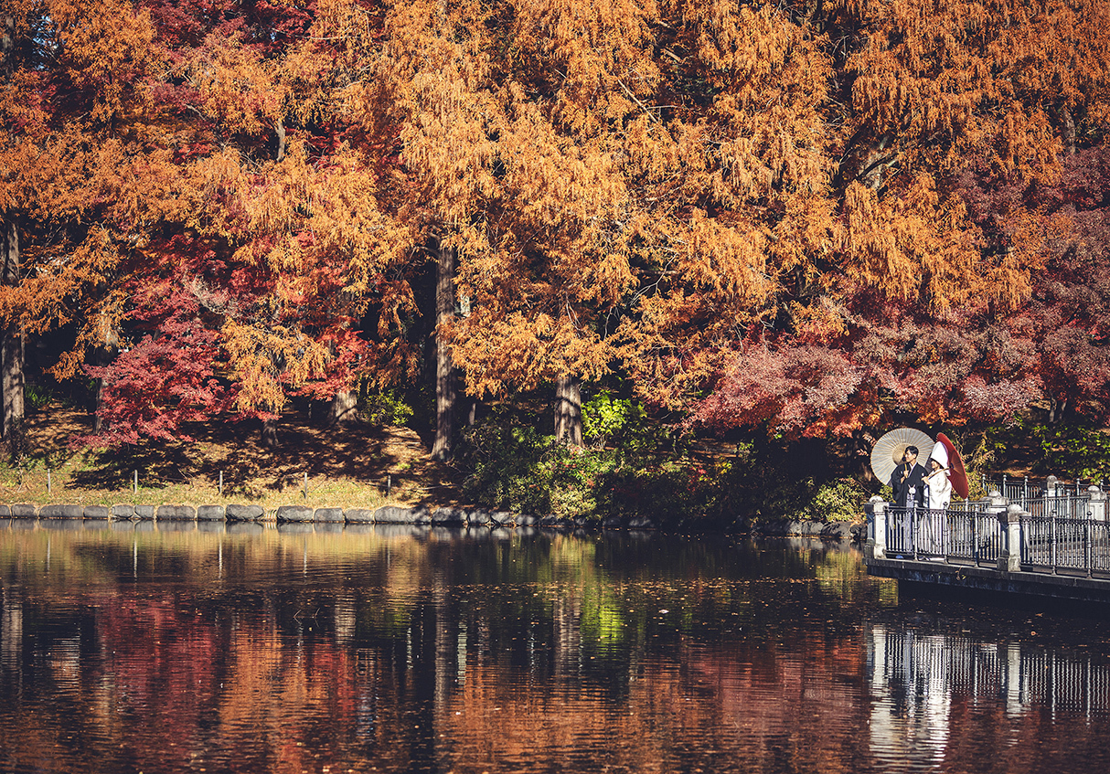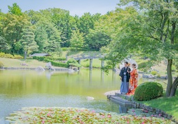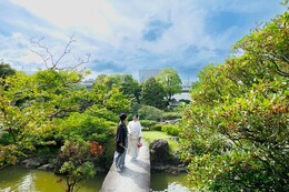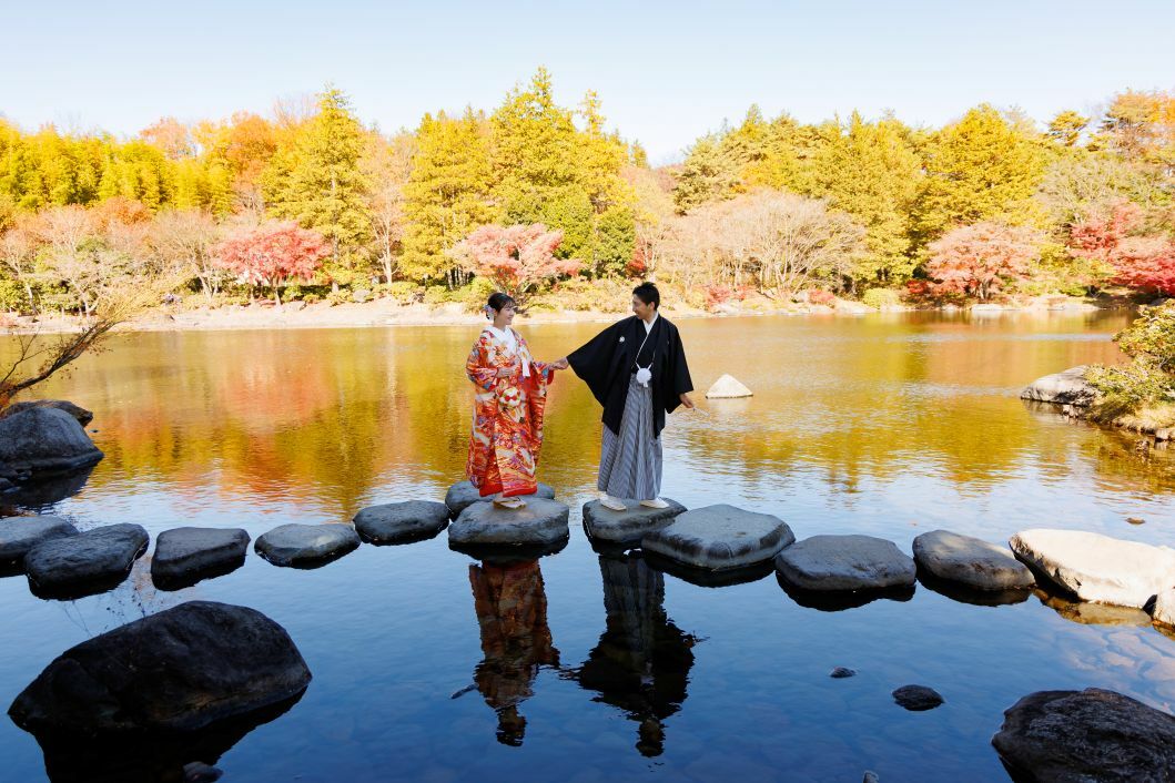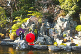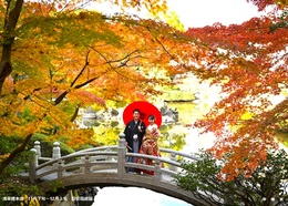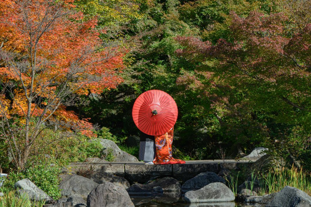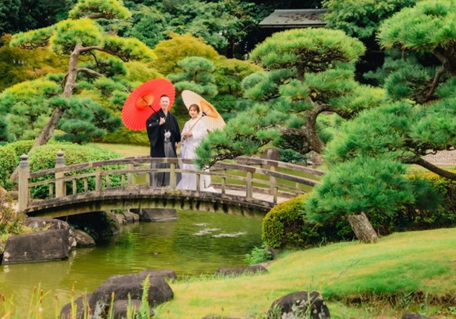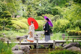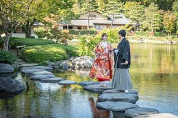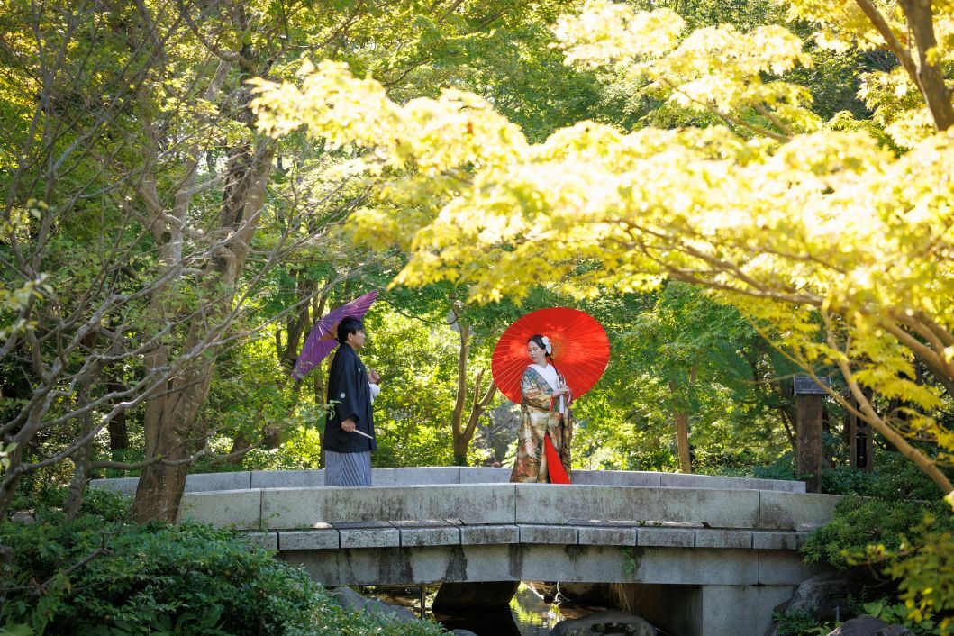 日本庭園では静寂の中で伝統美を堪能しながら撮影が可能です!自然の事ですので撮影時期によって、桜・新緑・紅葉の時期は確実ではありません