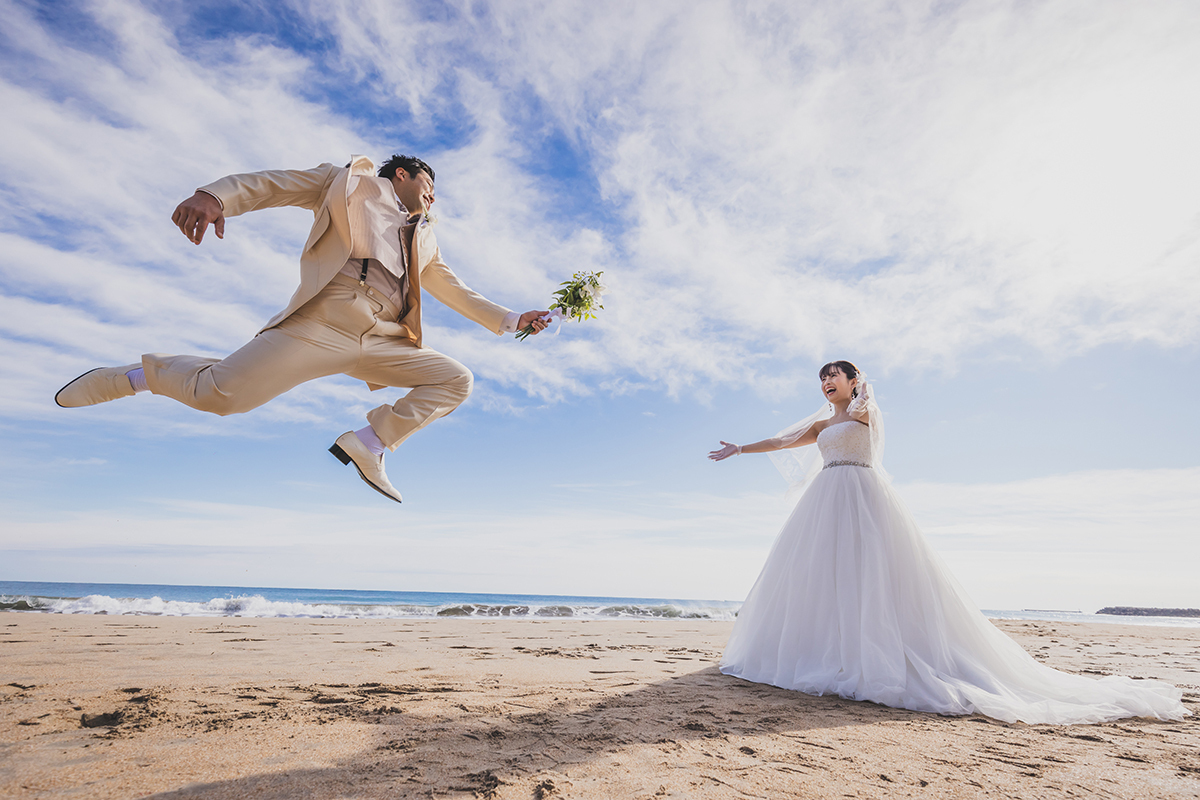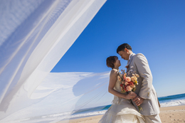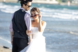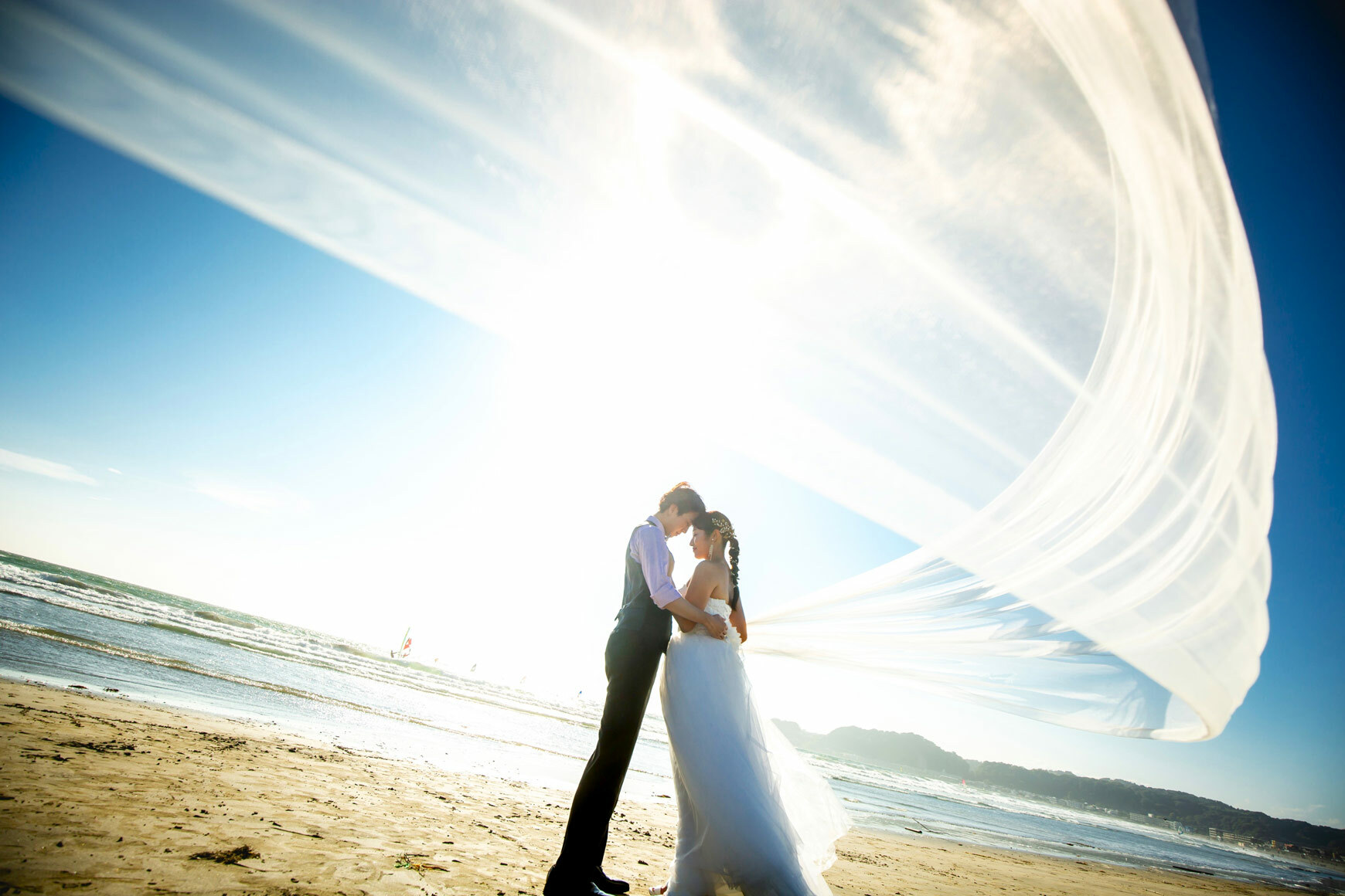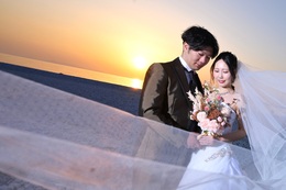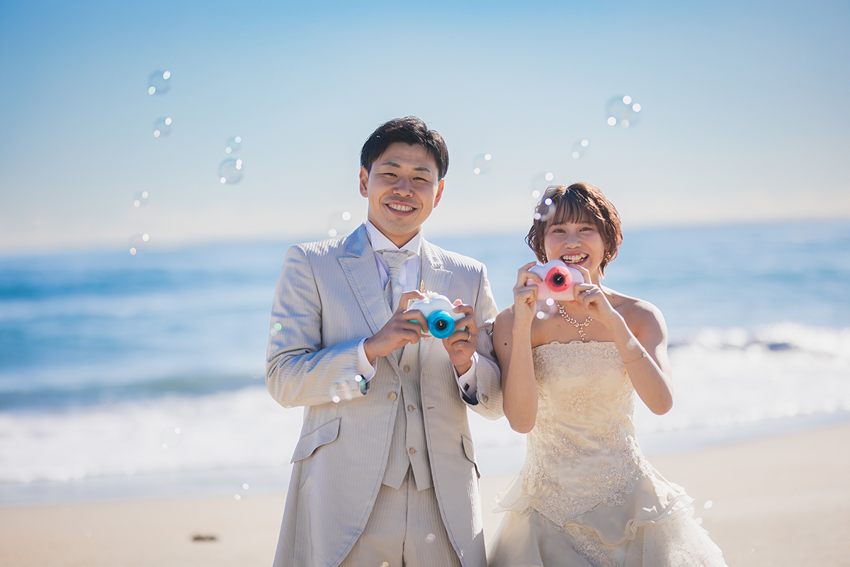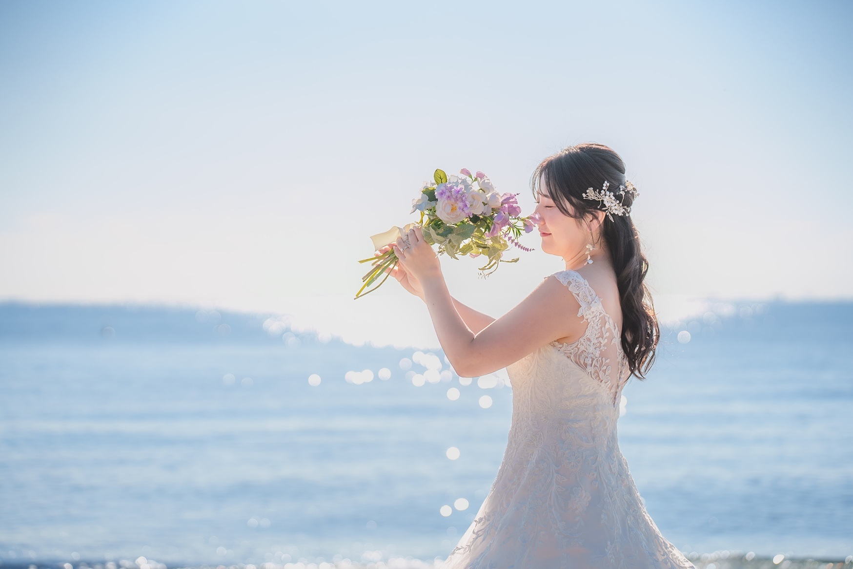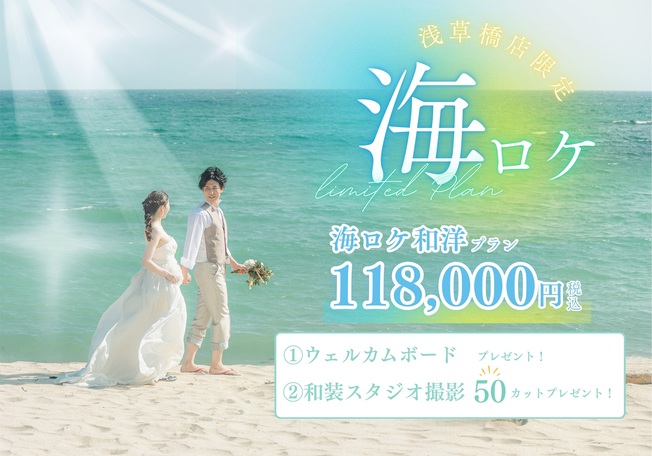 海ロケ和洋弐点プランは、和装がスタジオ撮影・洋装が海ロケでの撮影です。