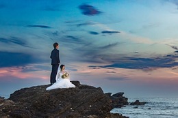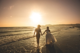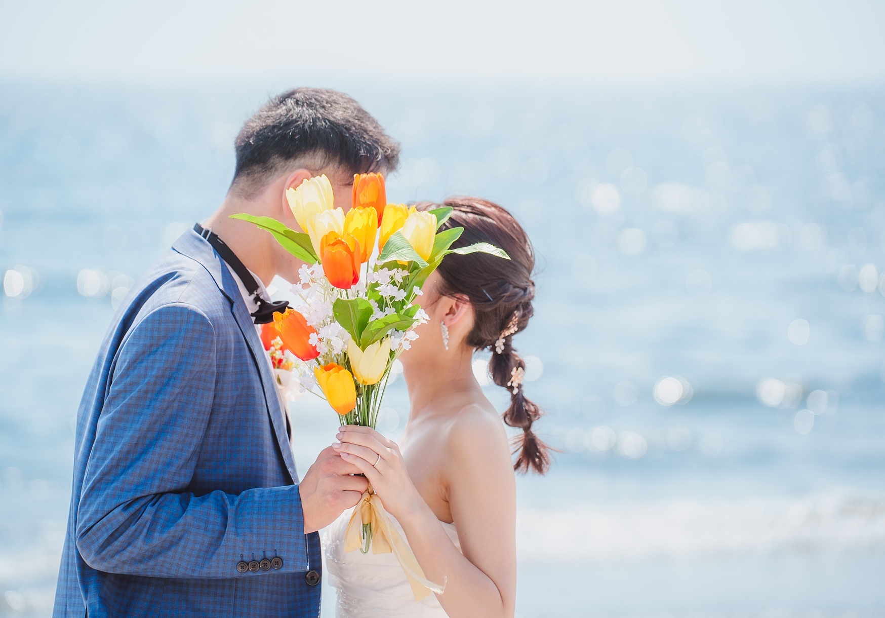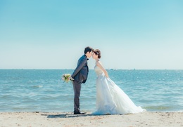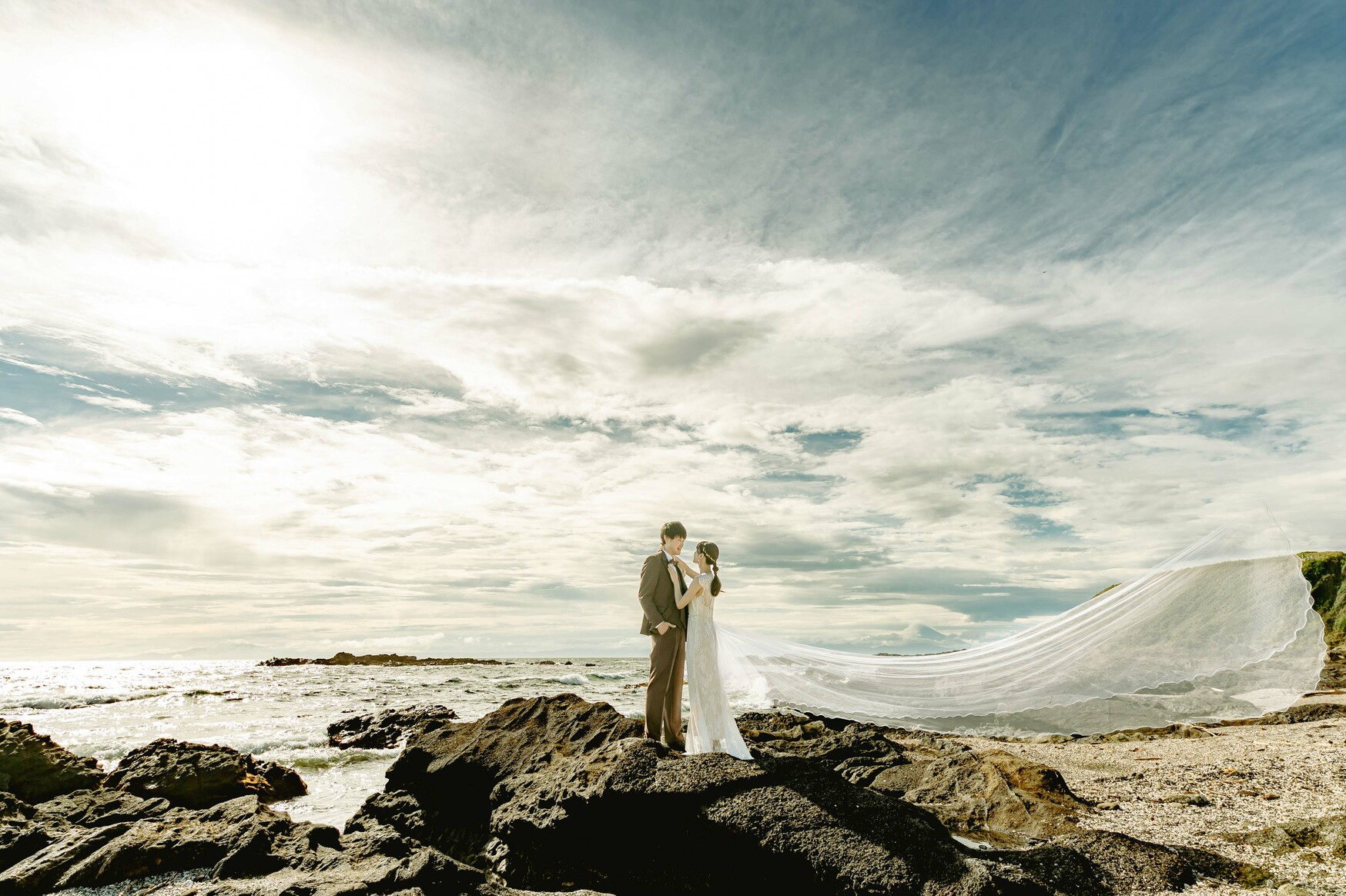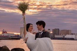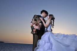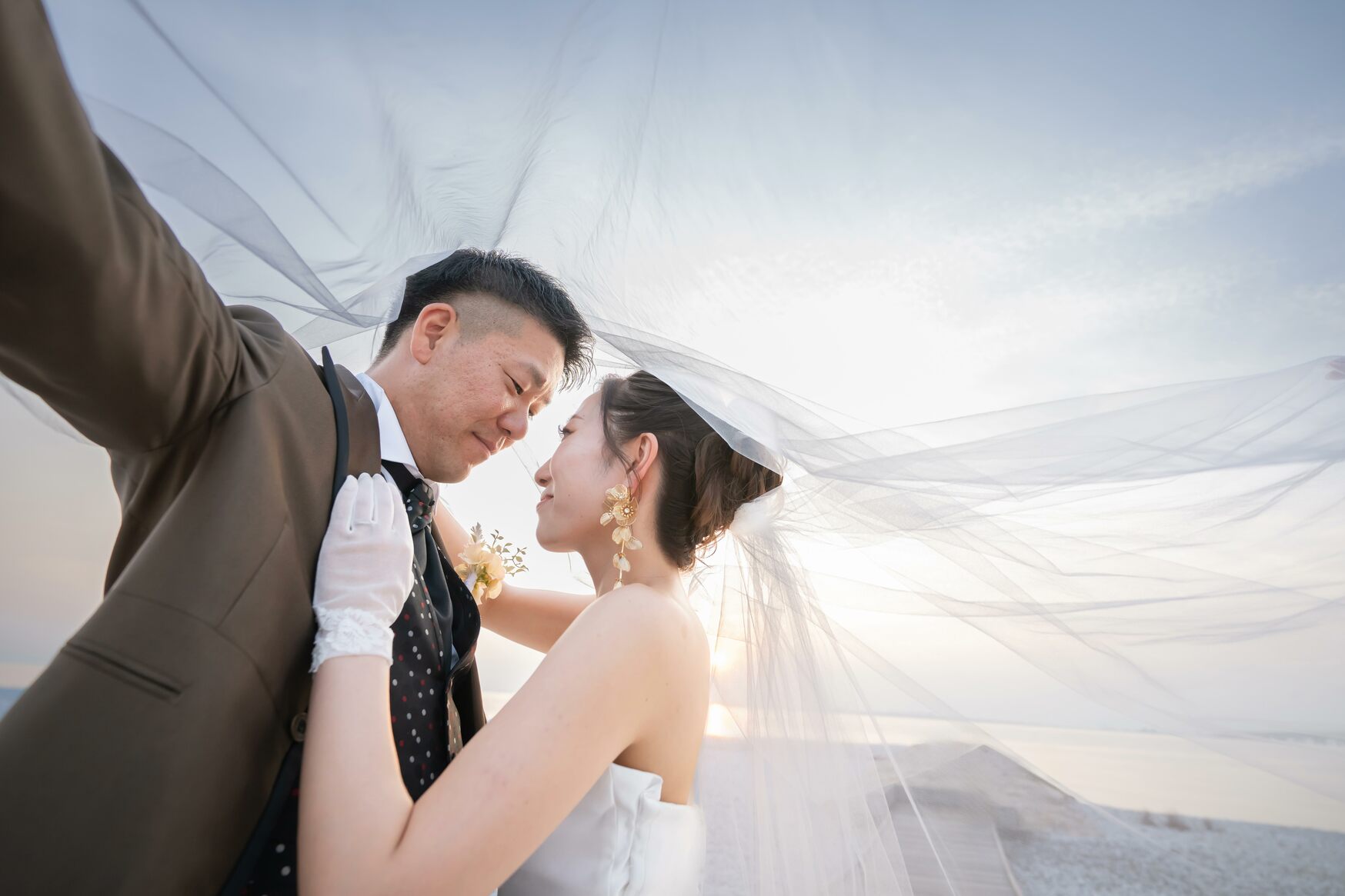 海ロケ和洋弐点プランは、和装がスタジオ撮影・洋装が海ロケでの撮影です。