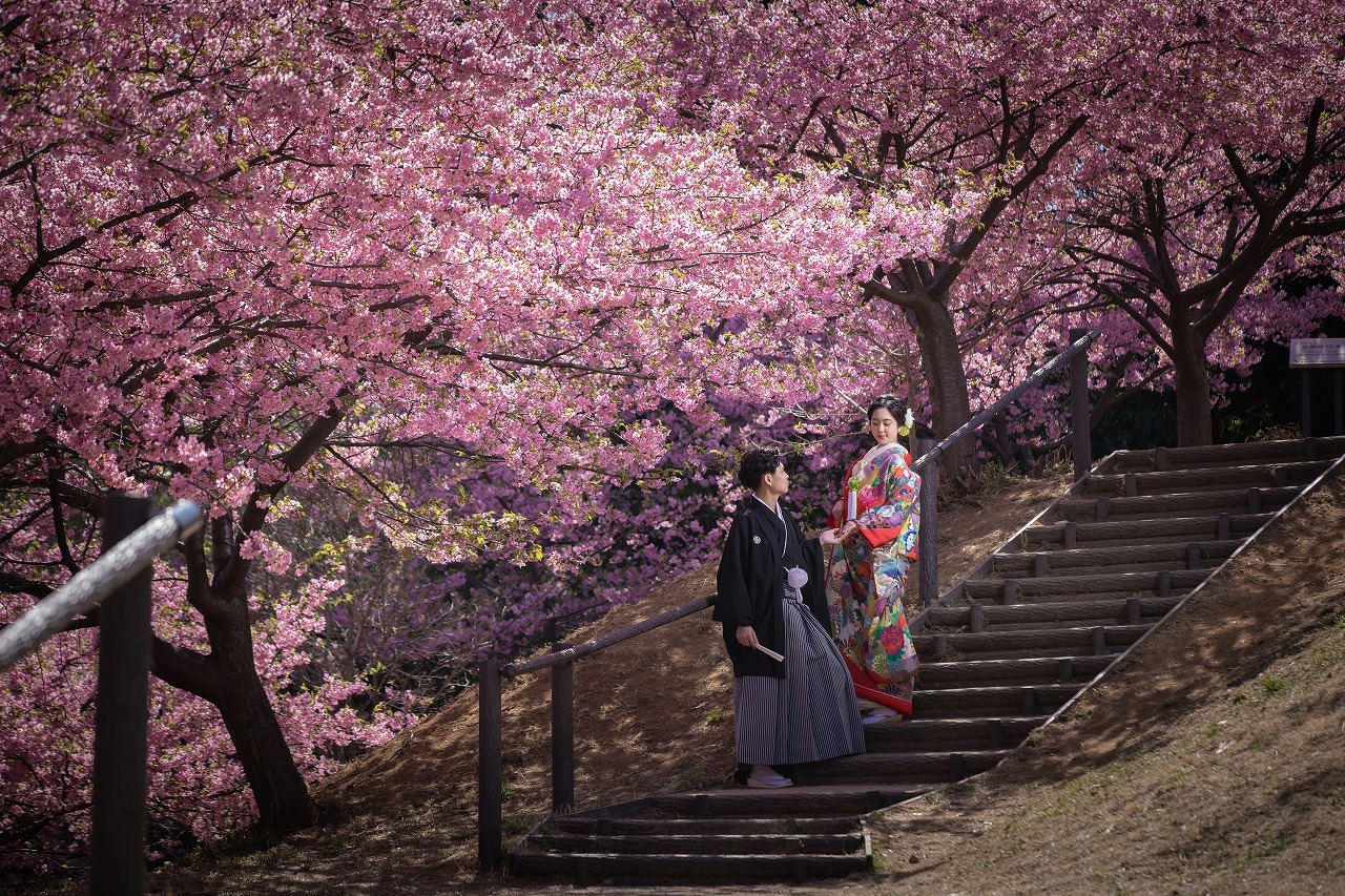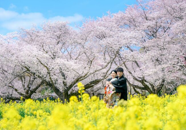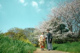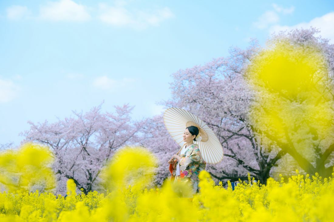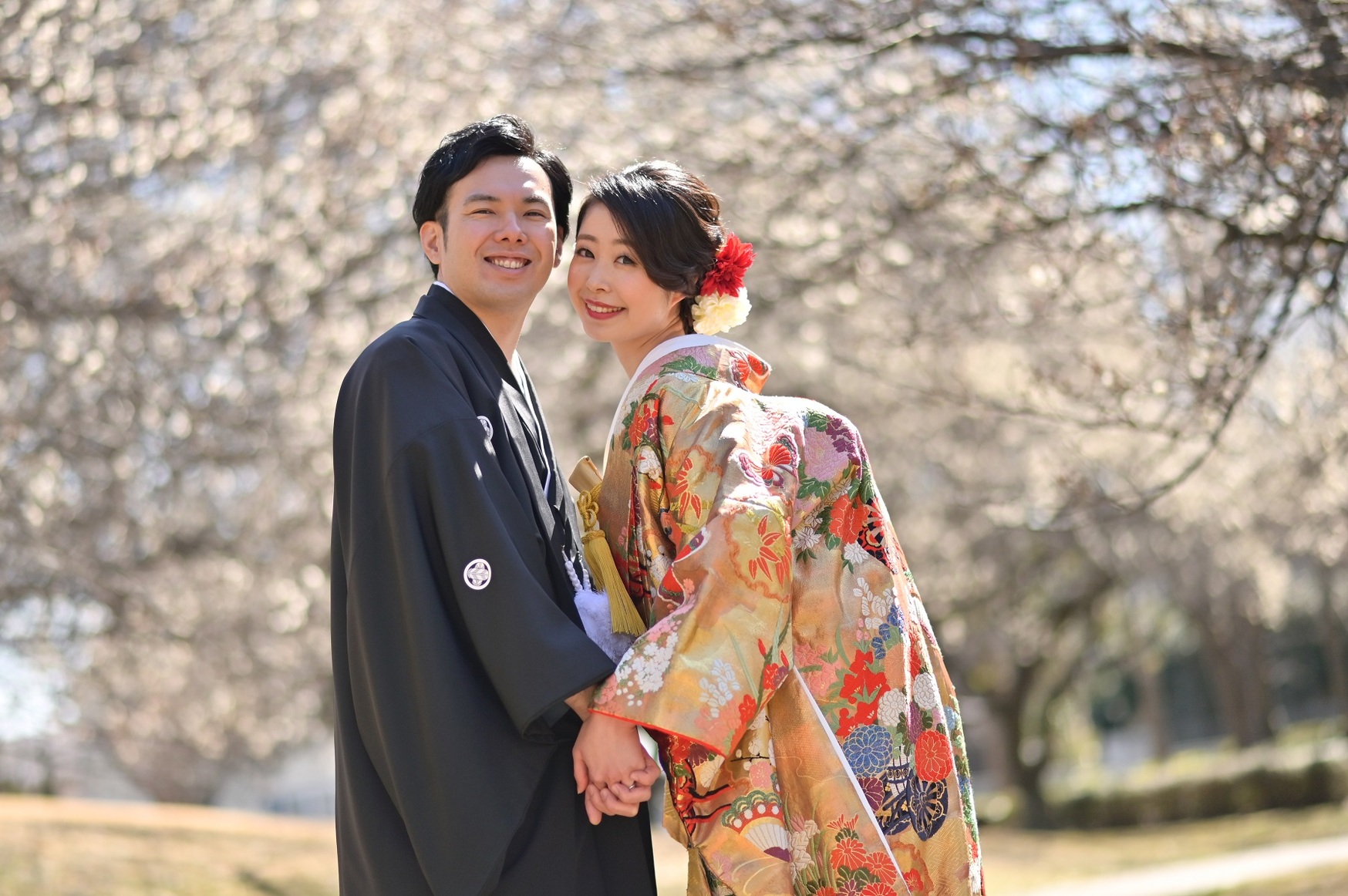 和装前撮りは開放感あふれるロケーション撮影が大人気(2022年3月は10日が満開✿)