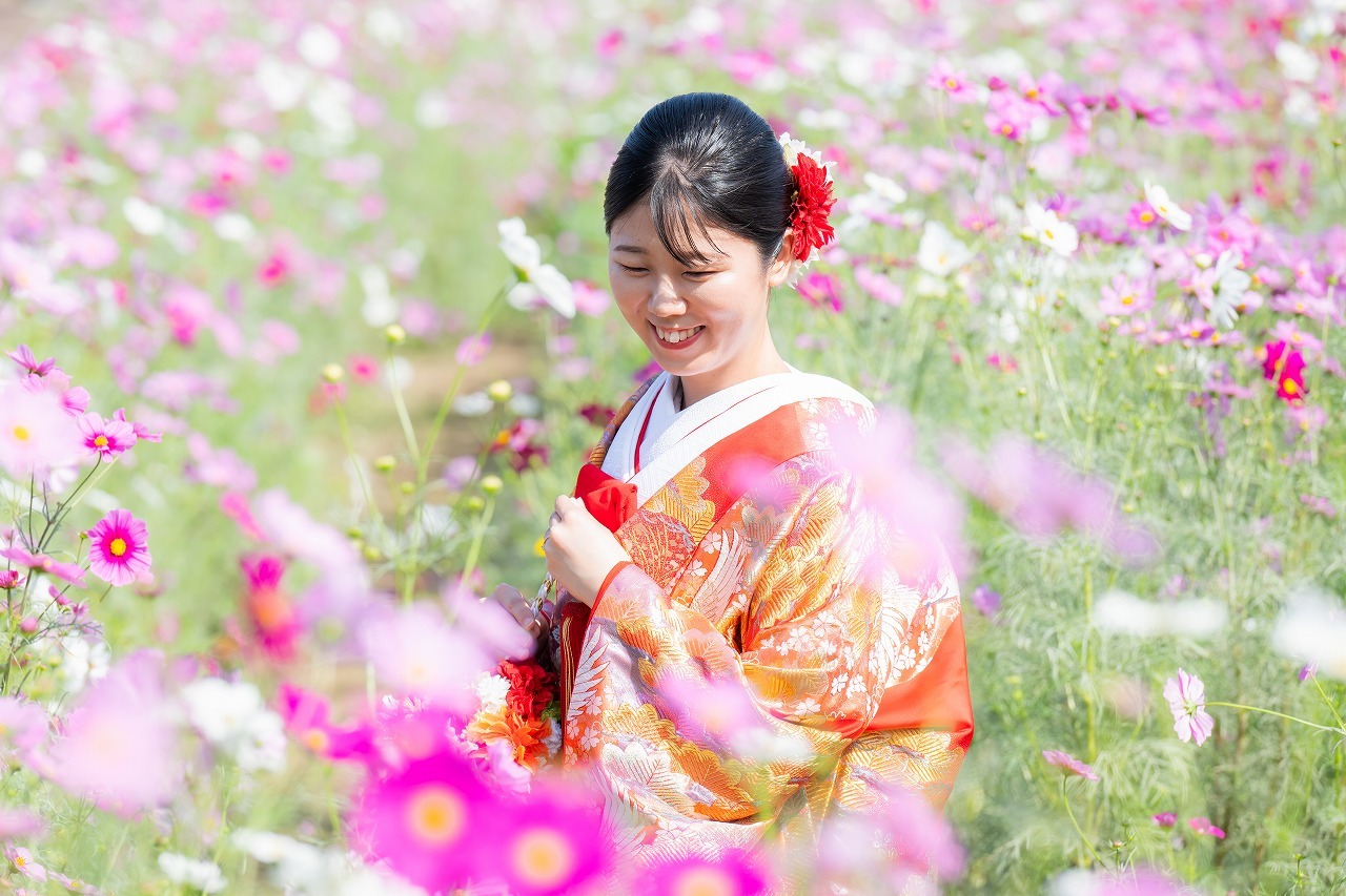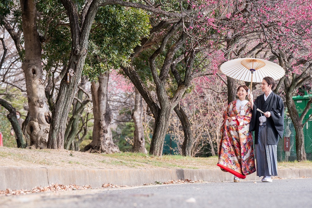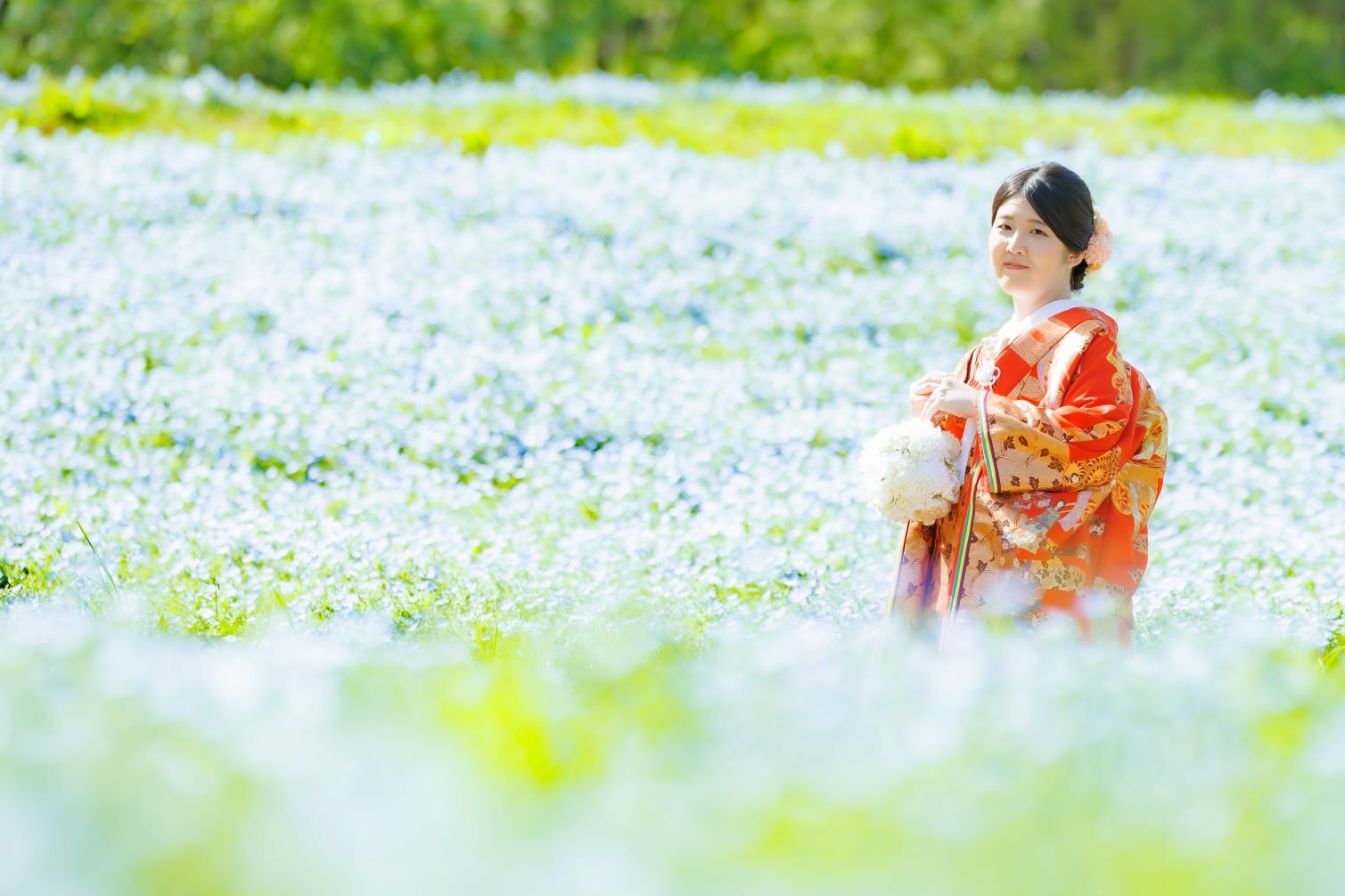 和装前撮りは開放感あふれるロケーション撮影が大人気(2022年3月は10日が満開✿)