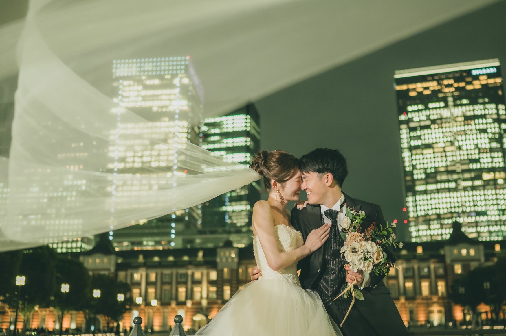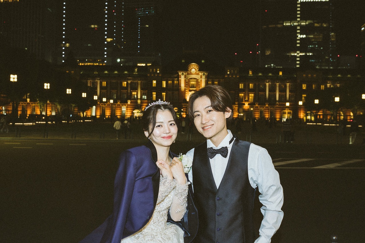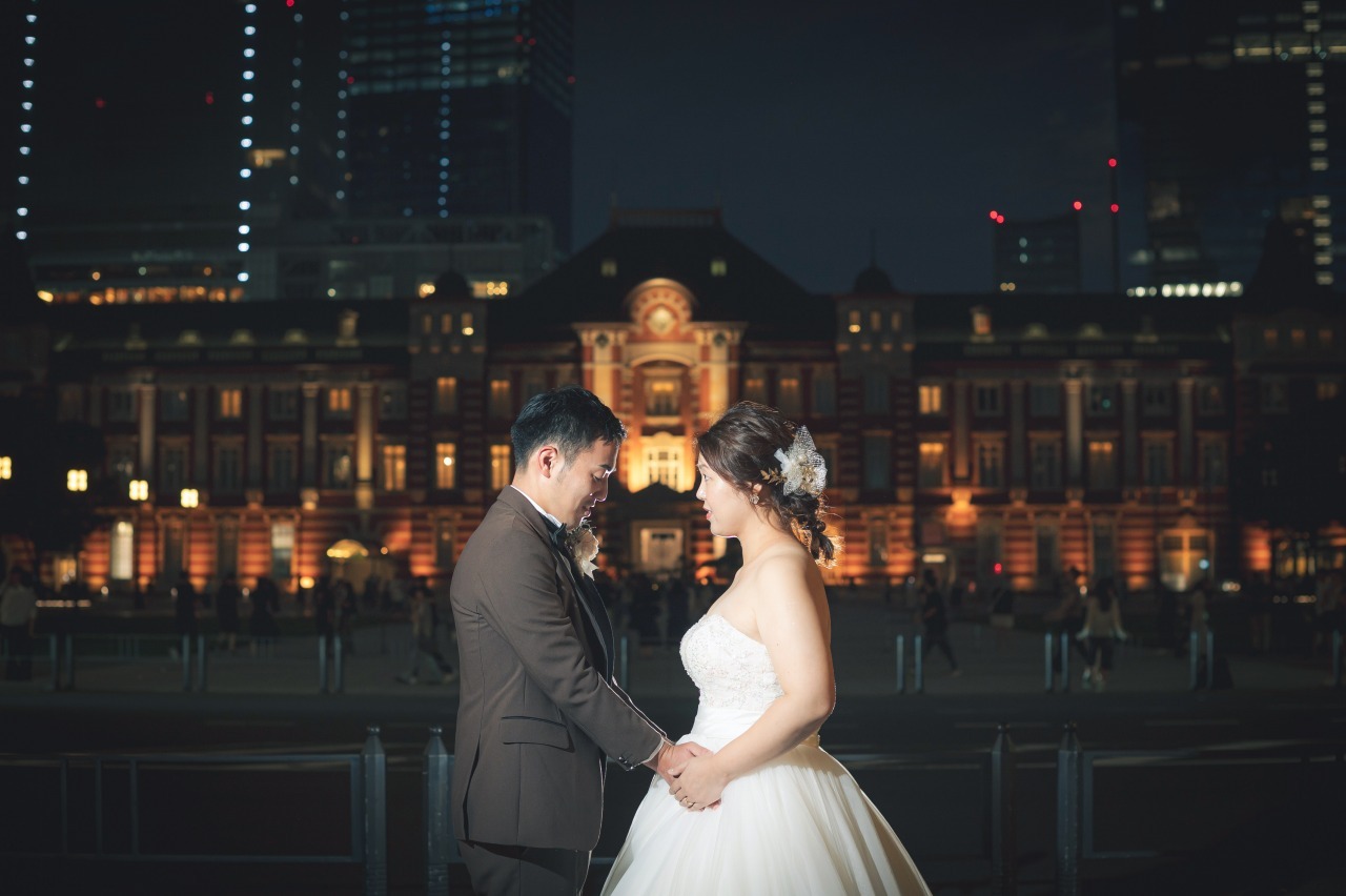 浅草橋本店・阿佐ヶ谷店でウェディングドレスで夜の東京駅の撮影