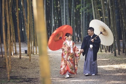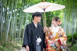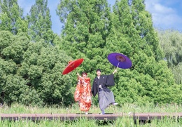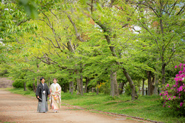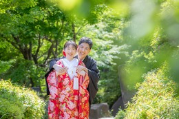 国の重要文化財にもなっている『日光田母沢御用邸記念公園』や映画『るろうに剣心』のロケ場所にもなった若竹の杜など和装が映えるロケーション場所が多い宇都宮店、新緑の季節は美しい緑の中で撮影出来ます