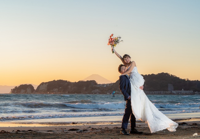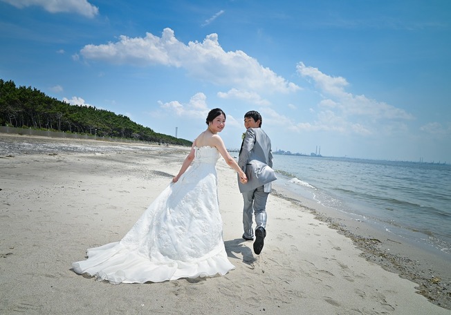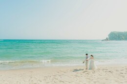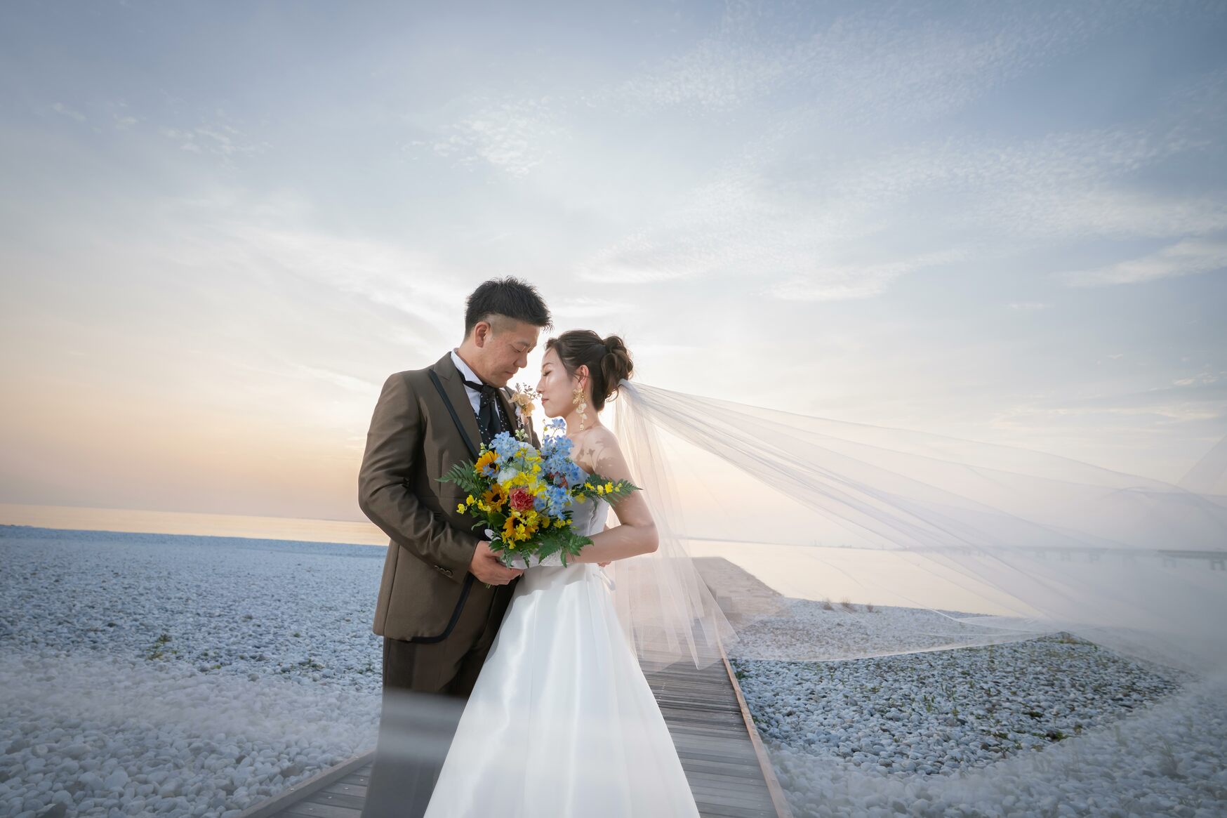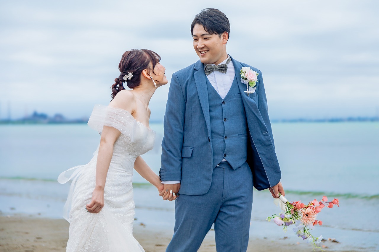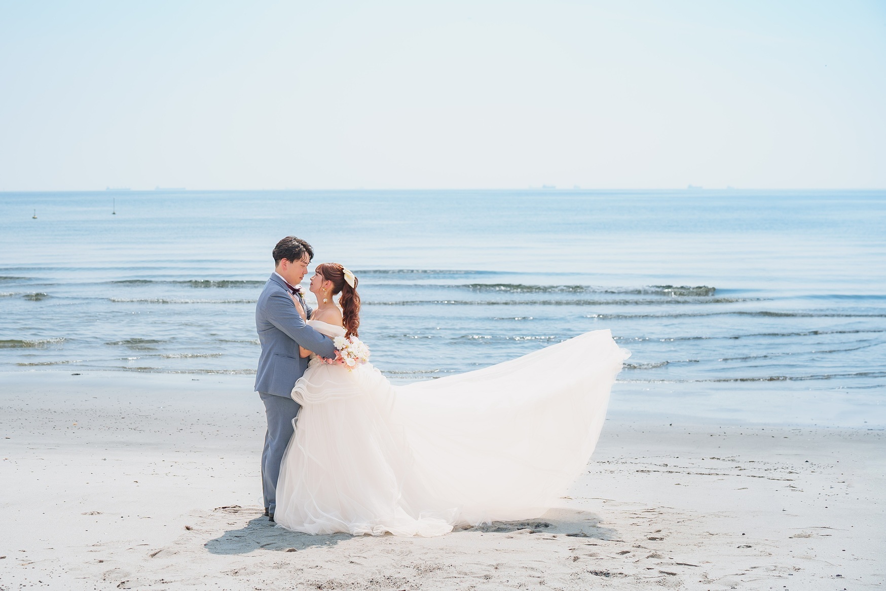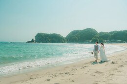 駐車場から海までの距離が近い為ペット撮影もご安心ください。※夏季は海水浴場が開設されるため、通常時と景観が異なります。混雑状況などにより撮影場所を変更させて頂く可能性がございます。