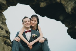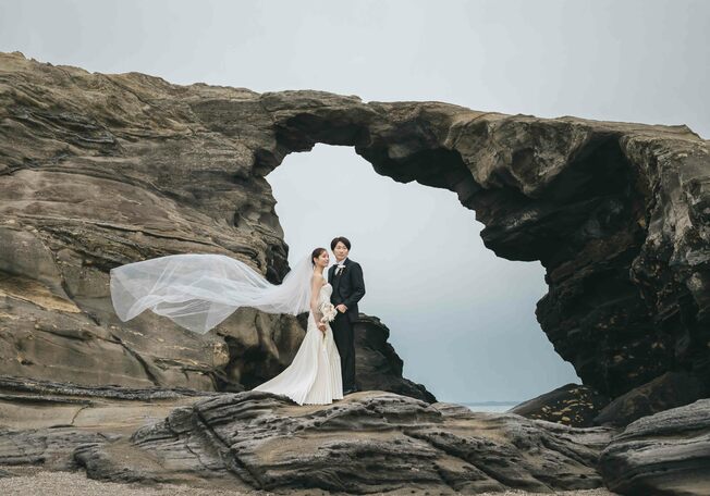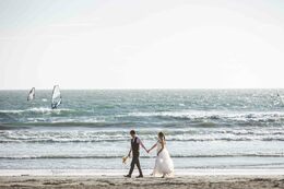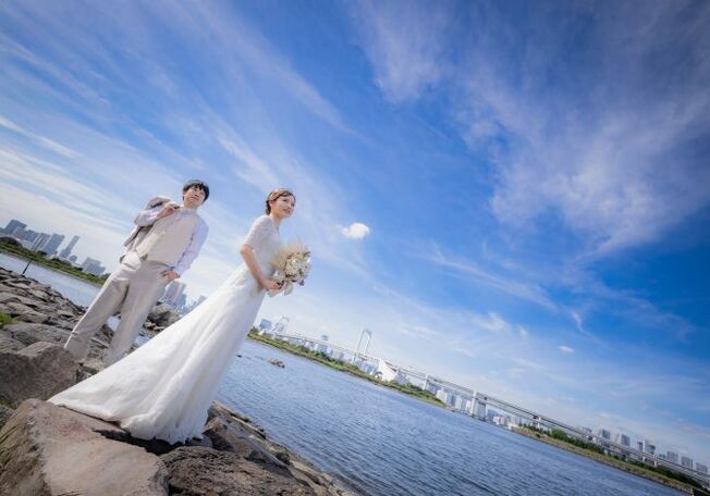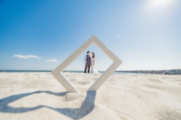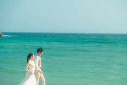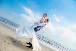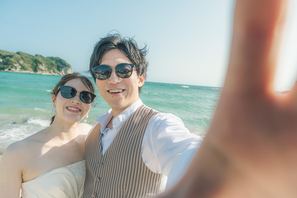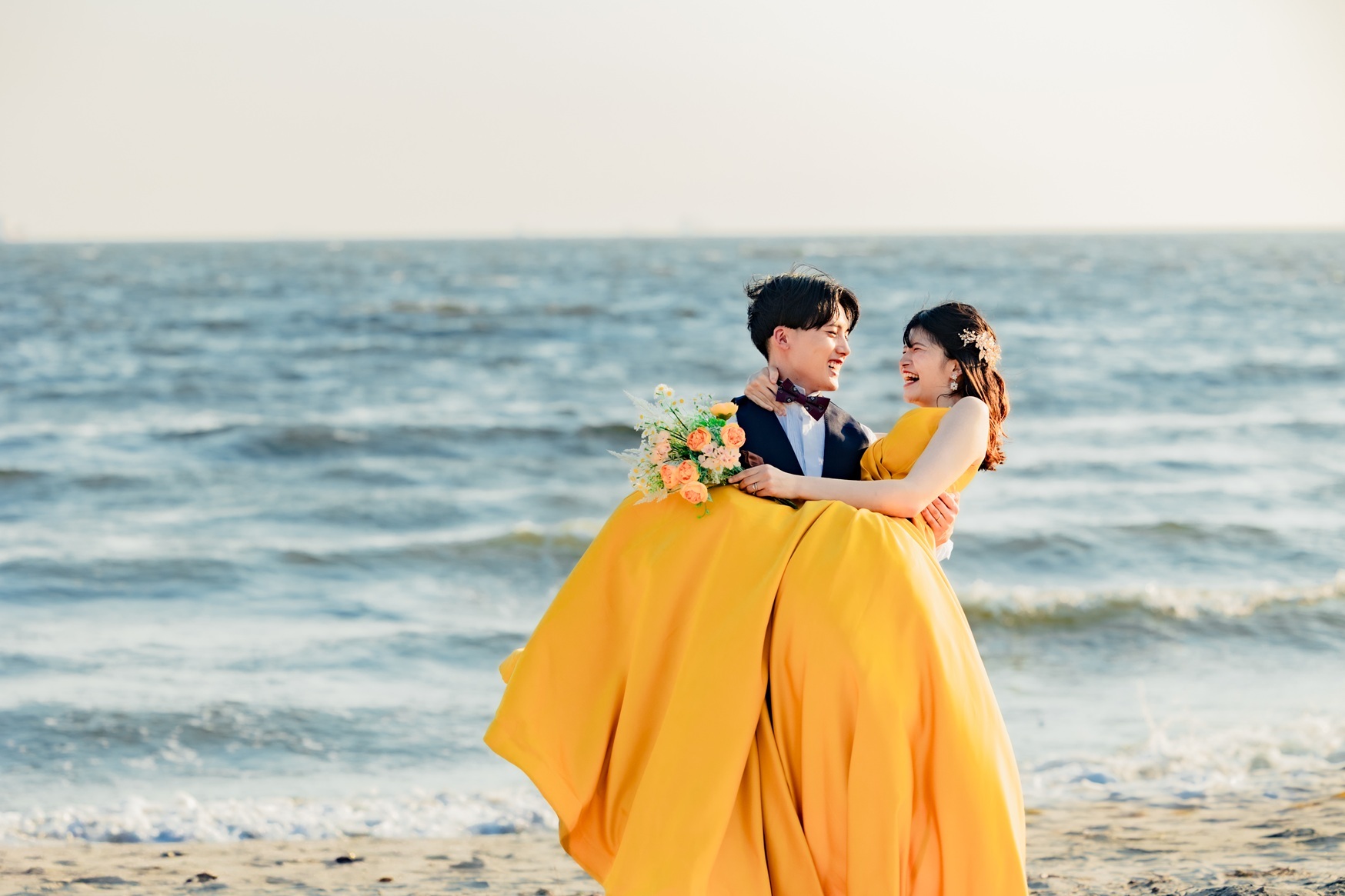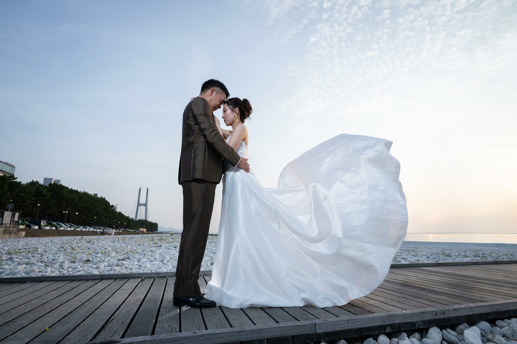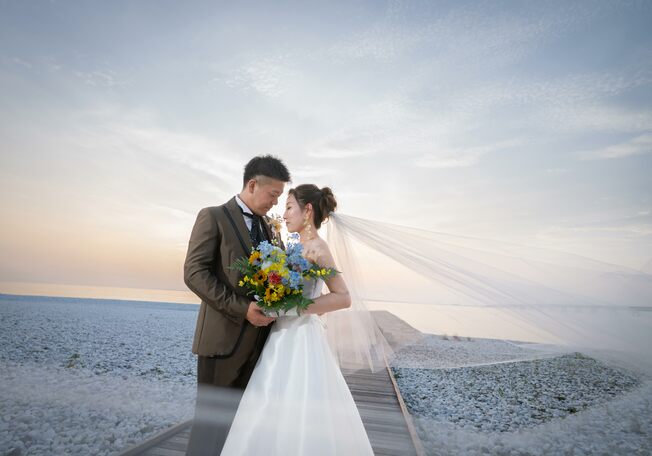 駐車場から海までの距離が近い為ペット撮影もご安心ください。※夏季は海水浴場が開設されるため、通常時と景観が異なります。混雑状況などにより撮影場所を変更させて頂く可能性がございます。