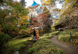 ロケーションフォトの最大の魅力は、自然や建築美を背景にできることです。和装の優雅なただずまい、日本女性の美しさを引き立ててくれる、とっておきのロケーションにお連れいたします。
