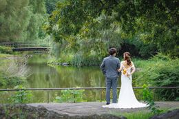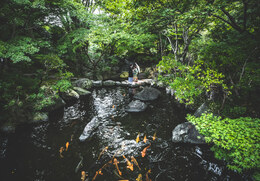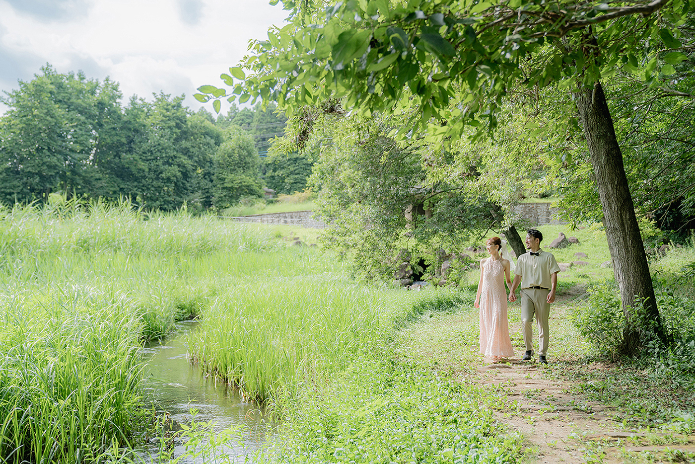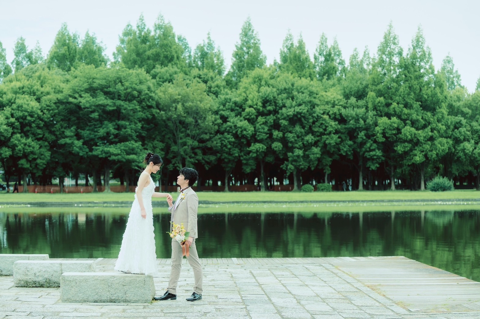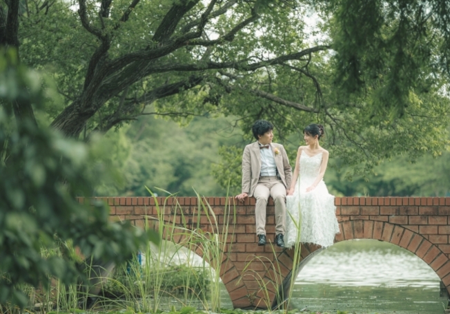 水と緑の自然に囲まれた園内は開放感あふれる撮影が可能。