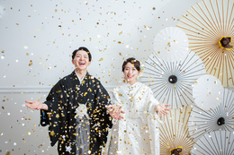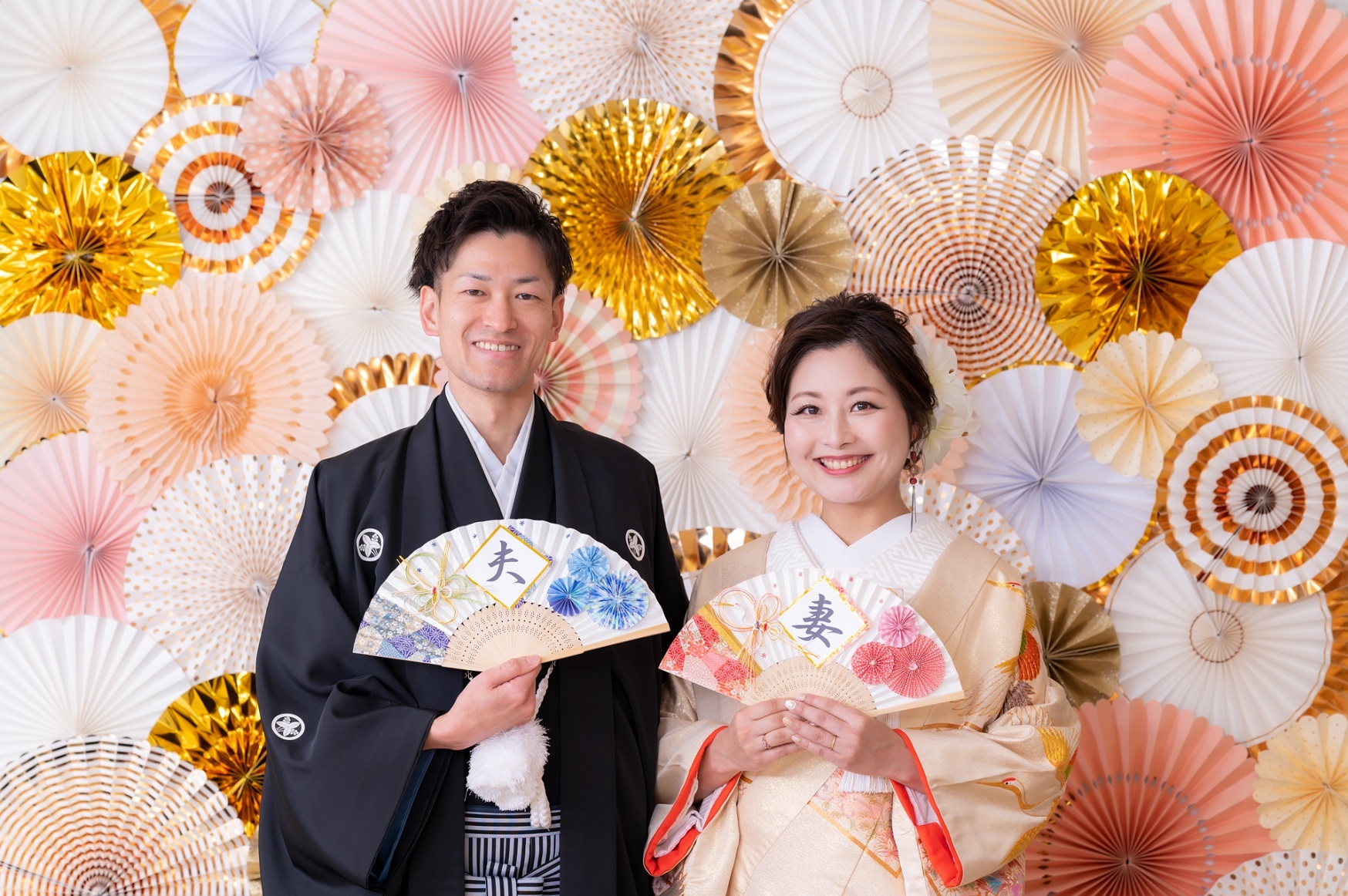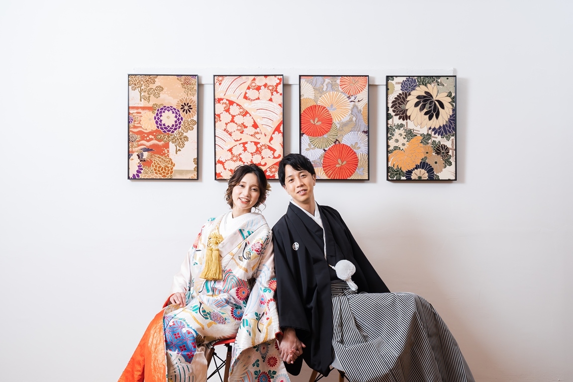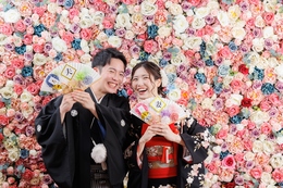 金屏風はもちろん、和室風の背景からシンプルな背景。各店で人気の背景も採用。