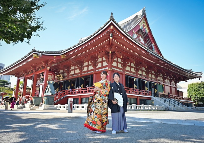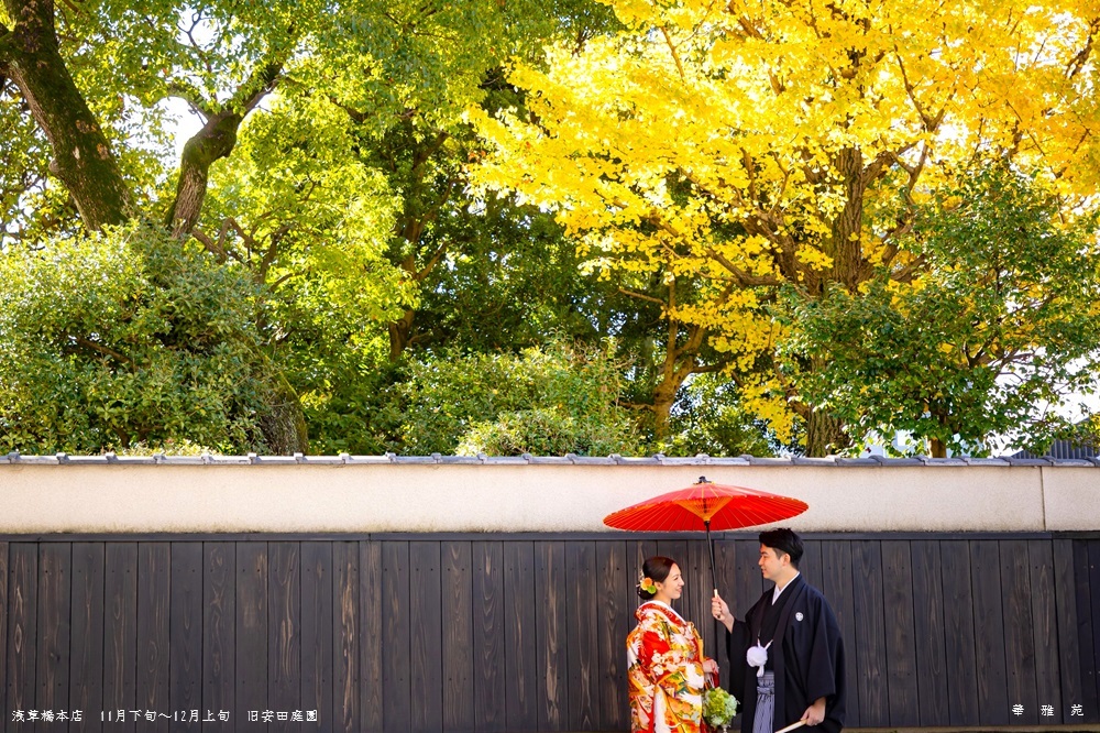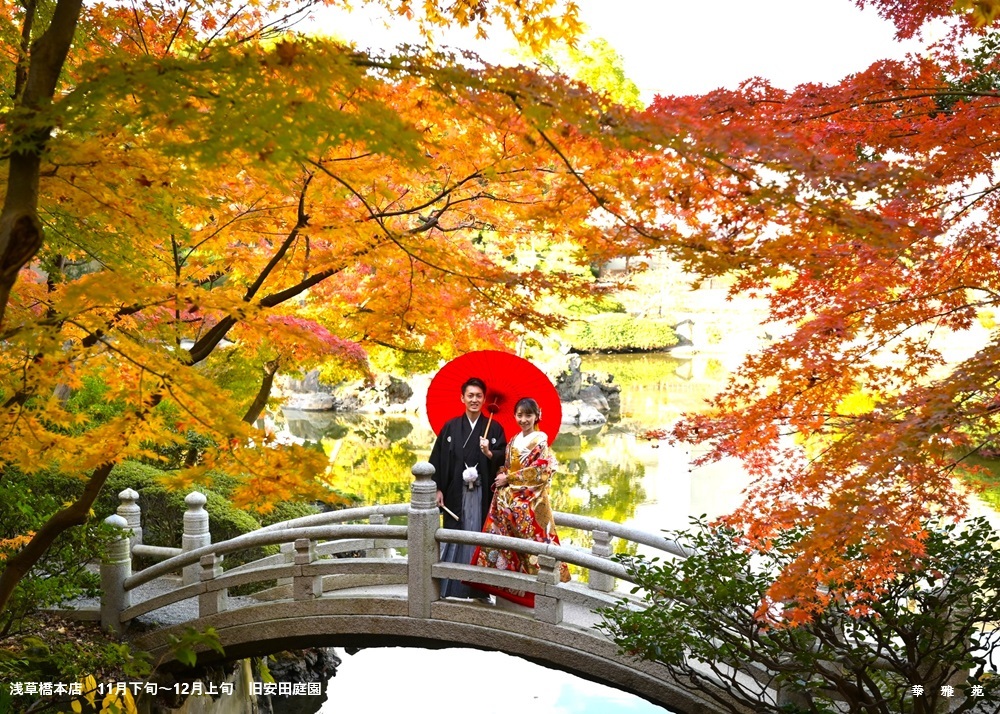 浅草の撮影は弐点プランの場合《浅草街並み》+《旧安田庭園》または 《浅草街並み》+《スタジオ》どちらの組み合わせもOK