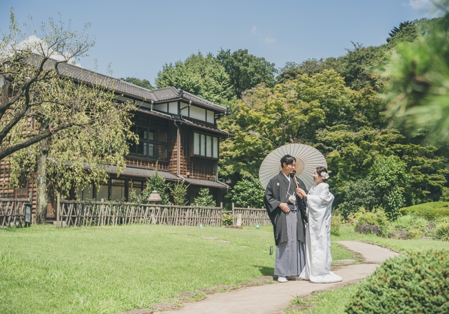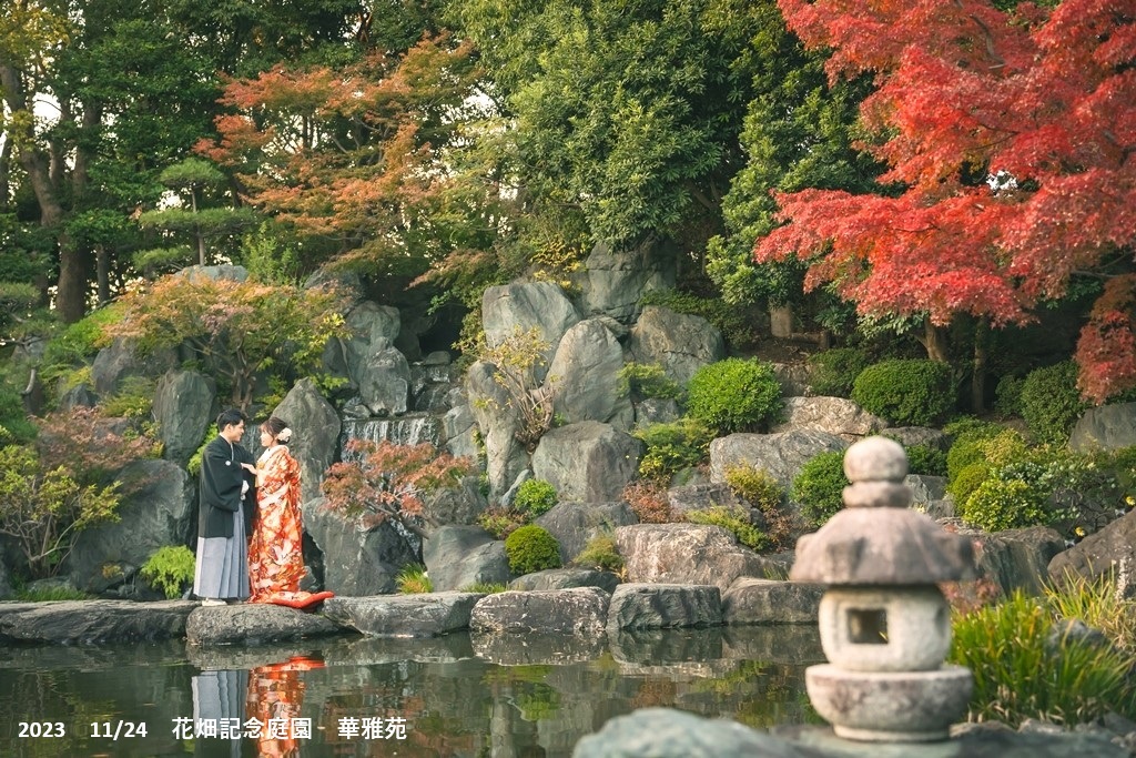 花畑記念庭園は毎週月曜日は休園日・旧安田庭園は平日のみでの撮影になります