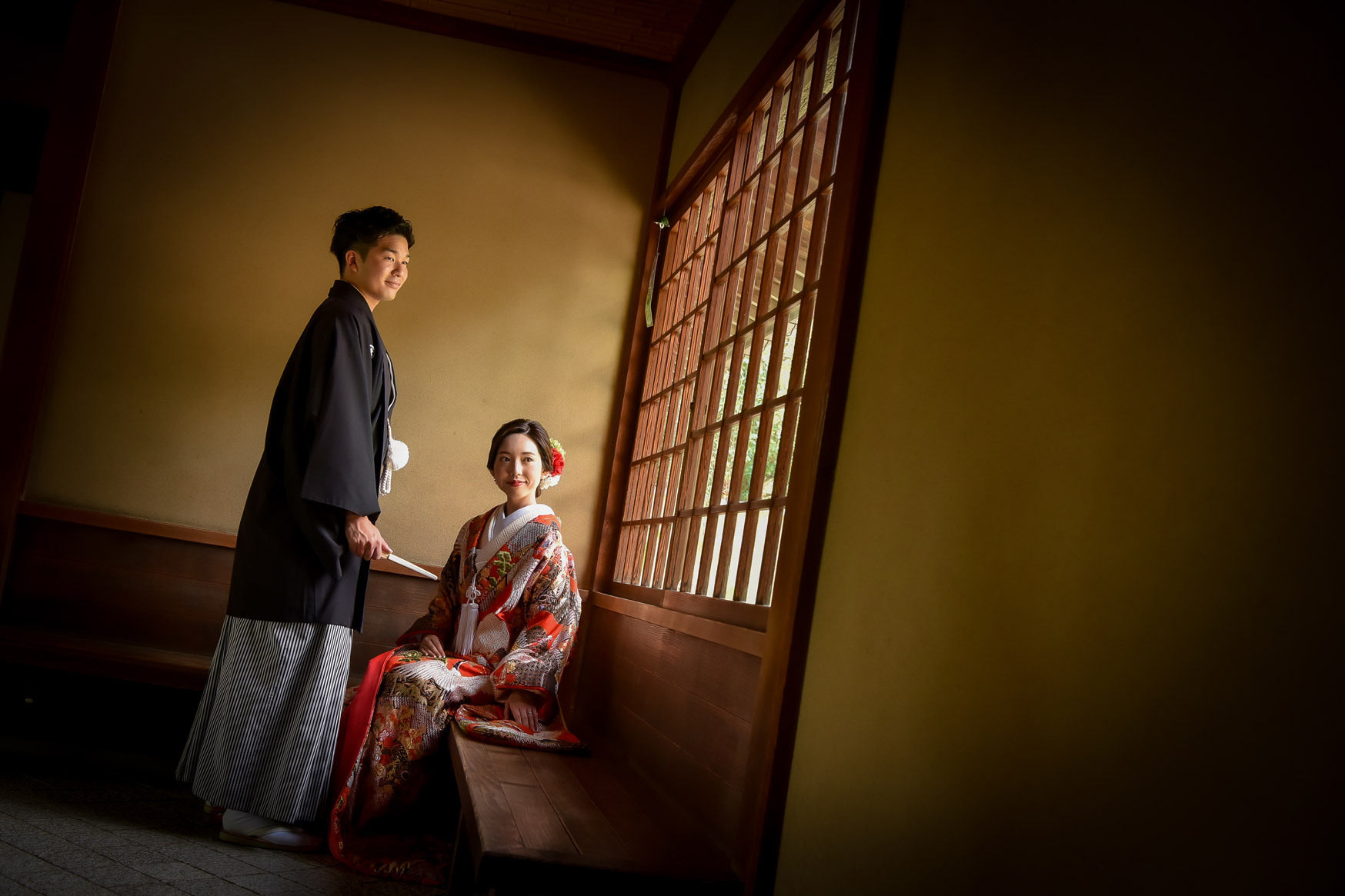和装にぴったりのロケーションです。縁側や襖を使って雰囲気のある写真に仕上がります。