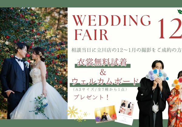 立川店 (スタジオリニューアル!)【立川店】1回の来店で完結!12月ご来店相談フェア開催♡衣裳無料試着&ウェルカムボード