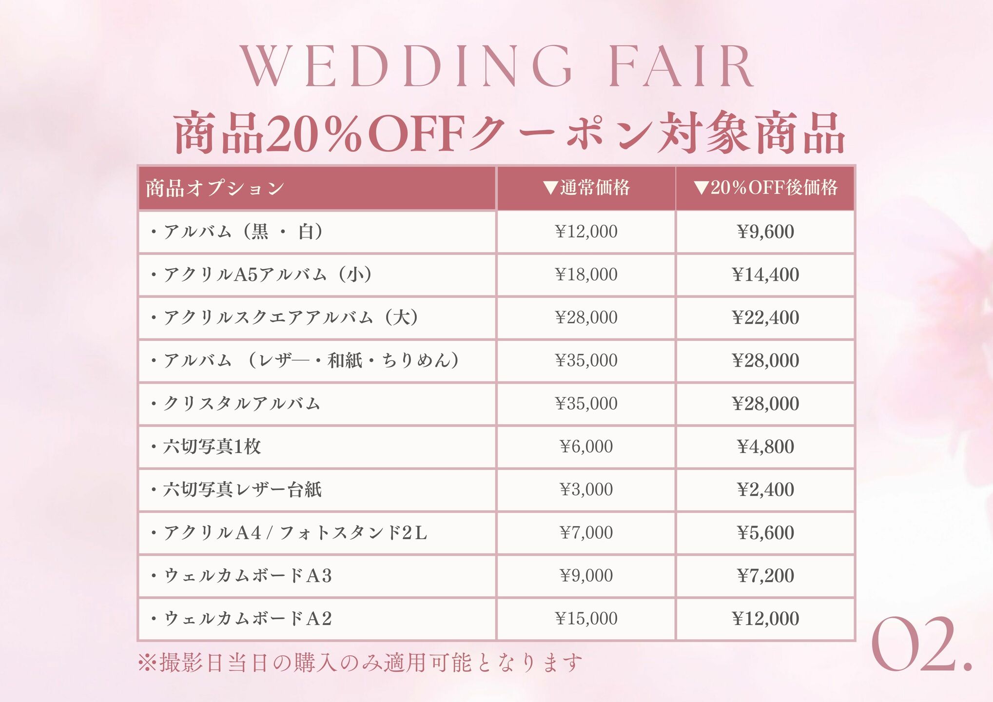ご来店時に浅草橋店で対象月の撮影を予約いただくと成約特典として