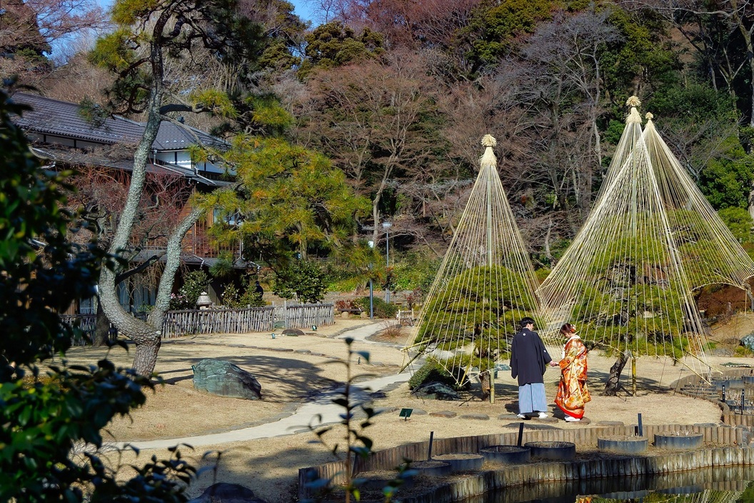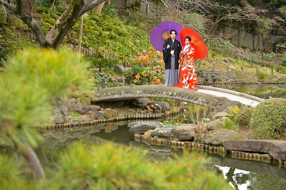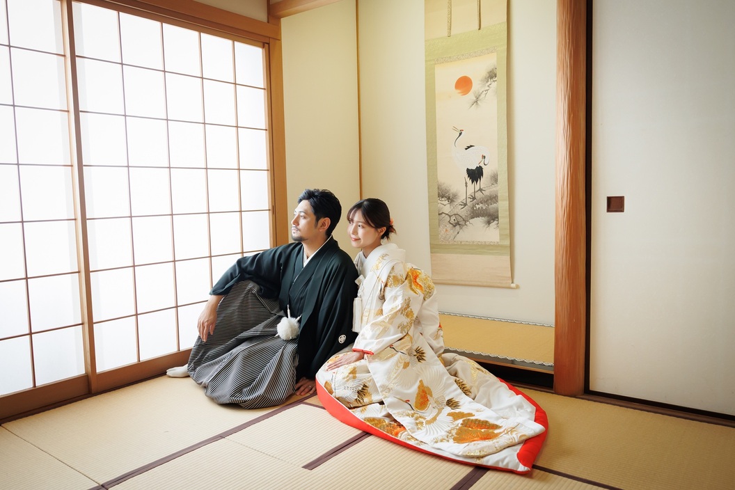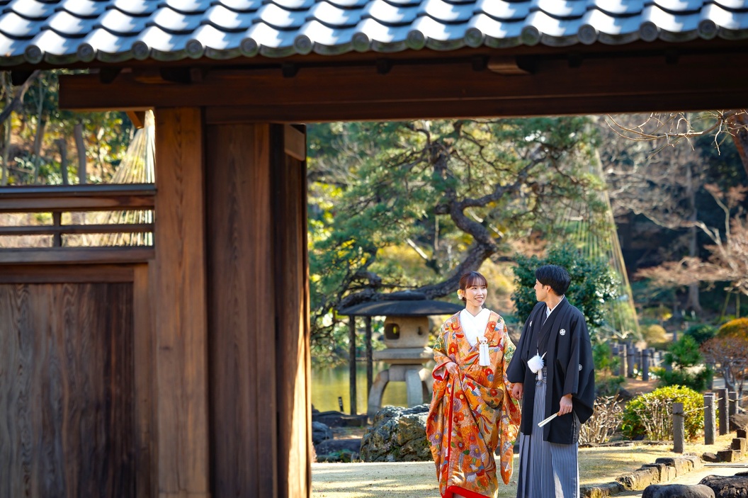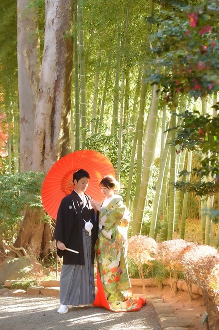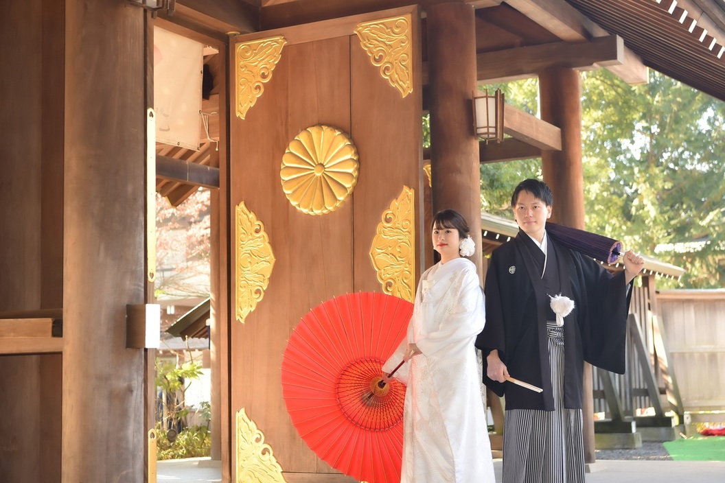 和装(神社or庭園)+洋装(スタジオ)の組合せ